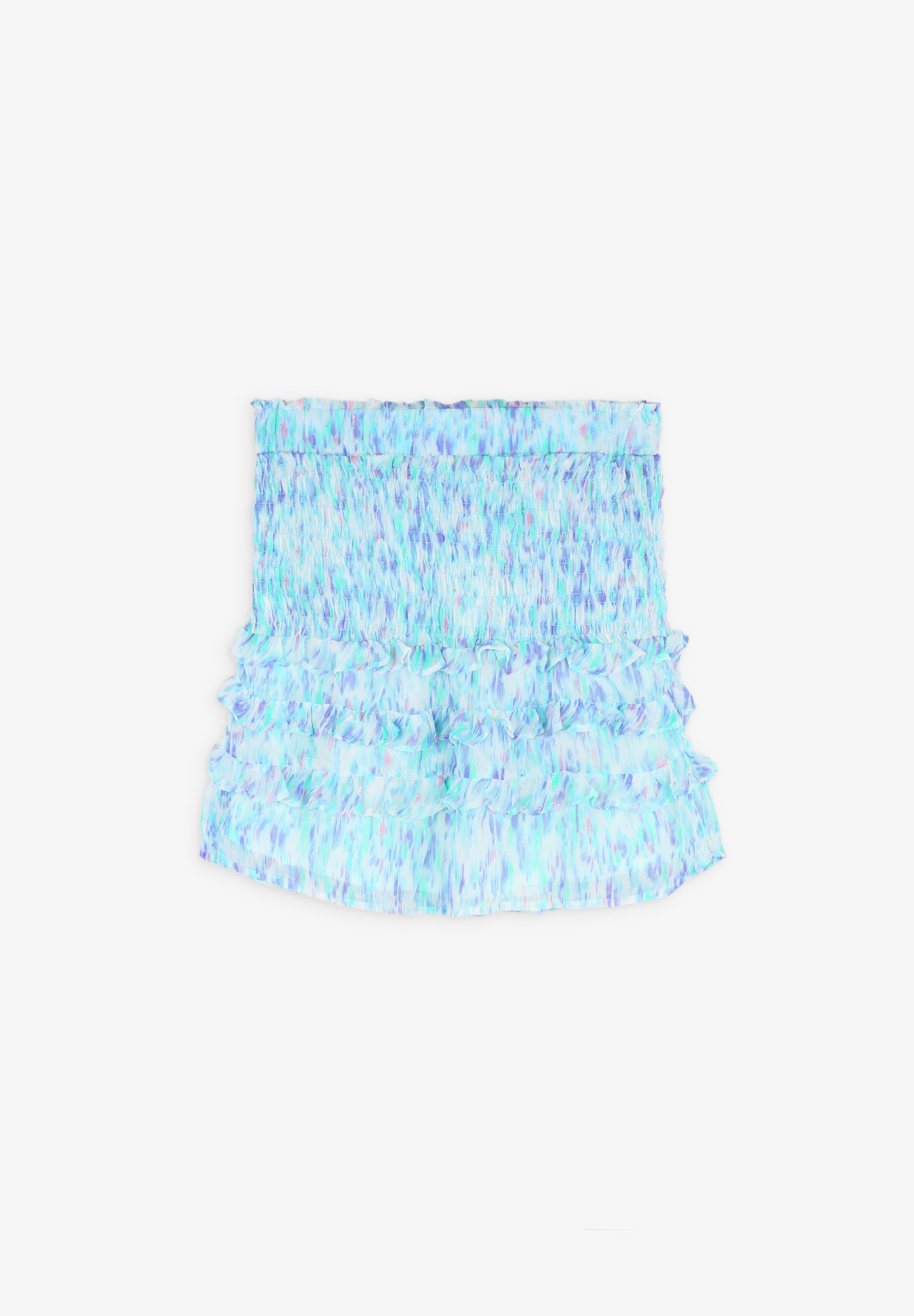FALDA MIDI PRINT FRUNCES DETALLE FRUNCES