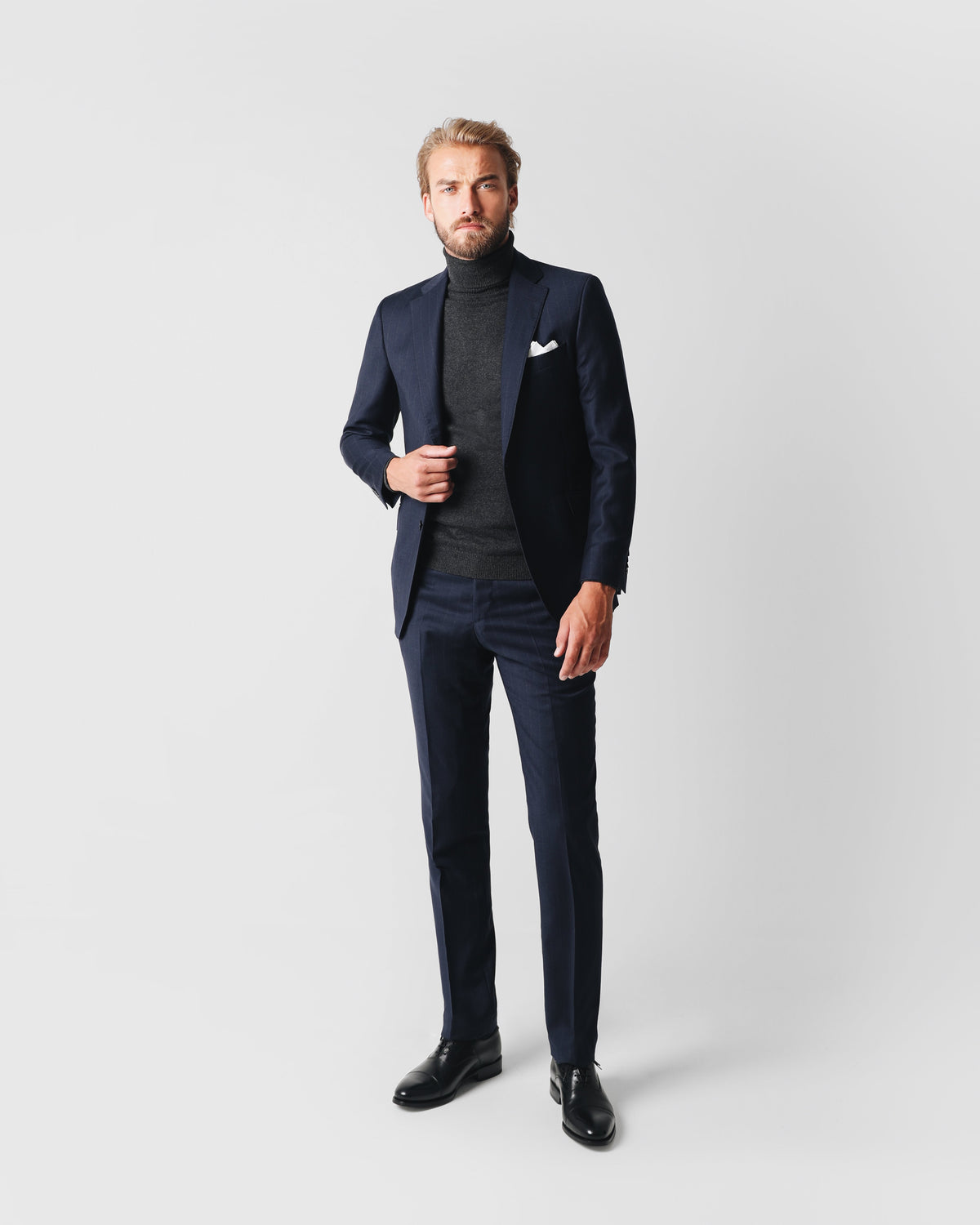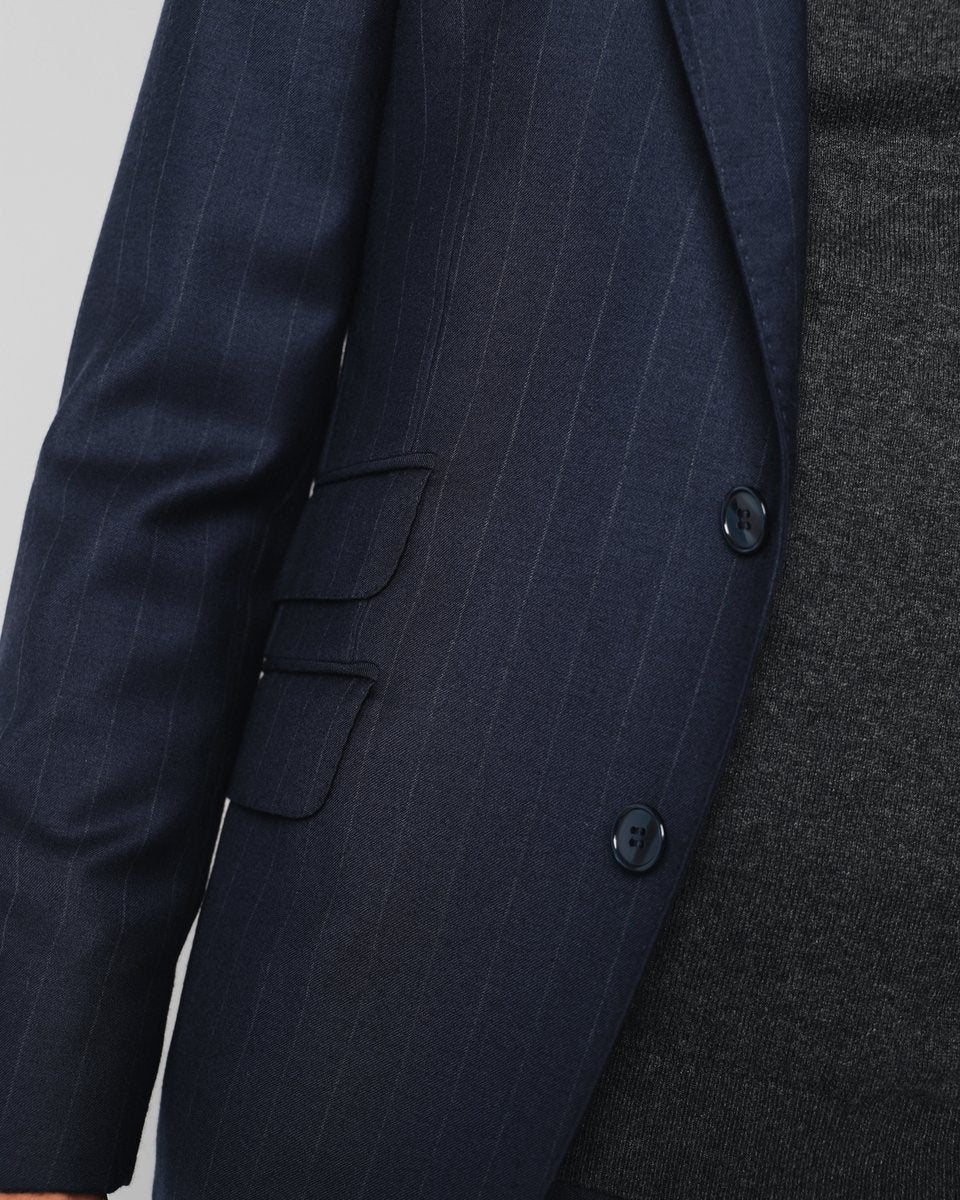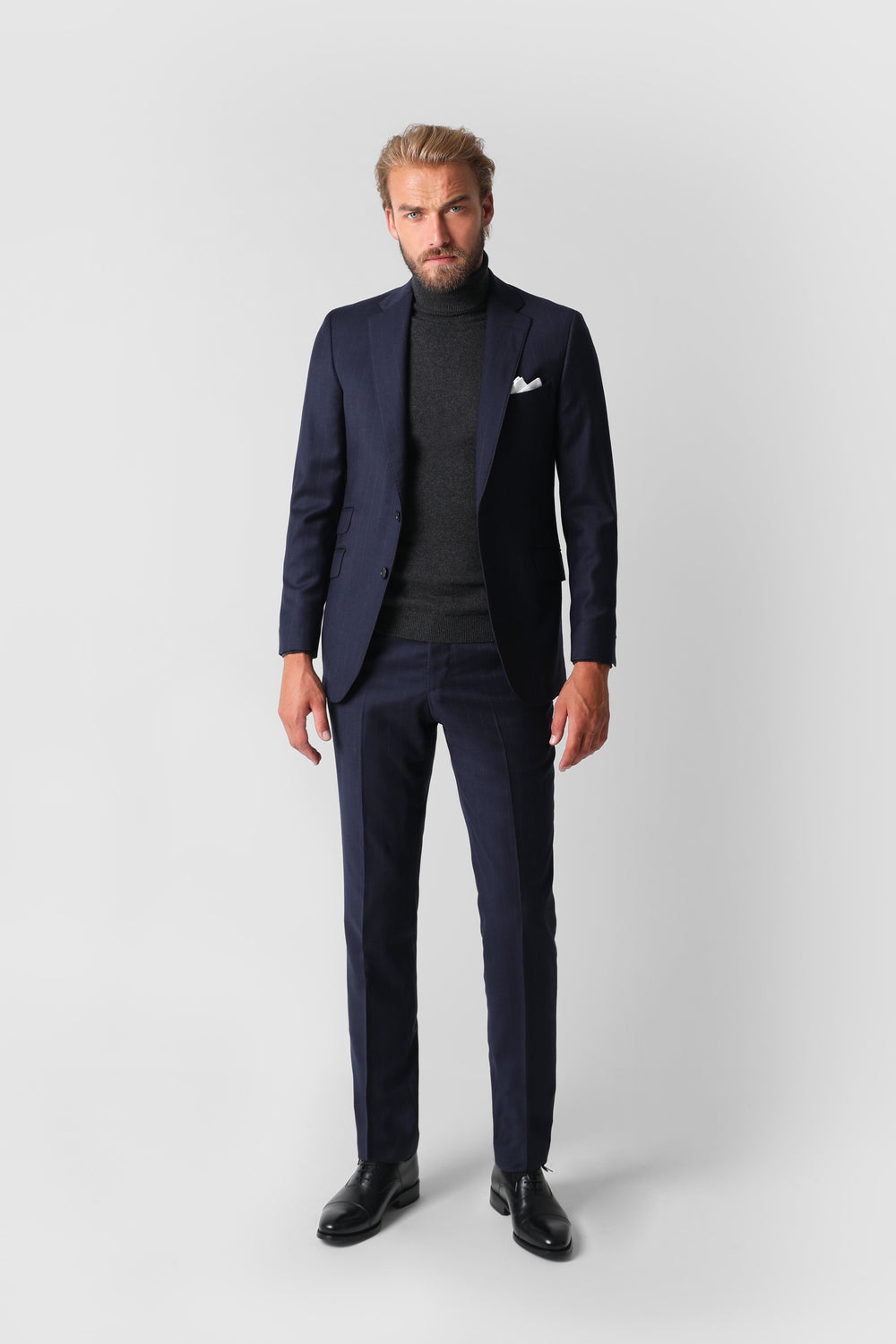 Traje Slim Fit con blazer con cierre con botones y solapas de muesca y pantalón con cierre de botón y cremallera y bolsillos.