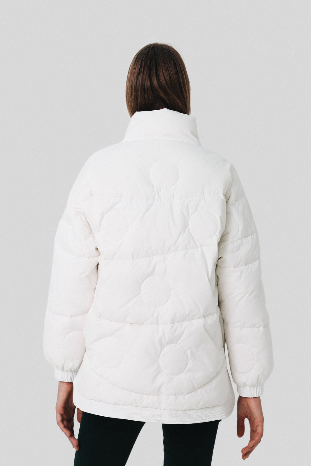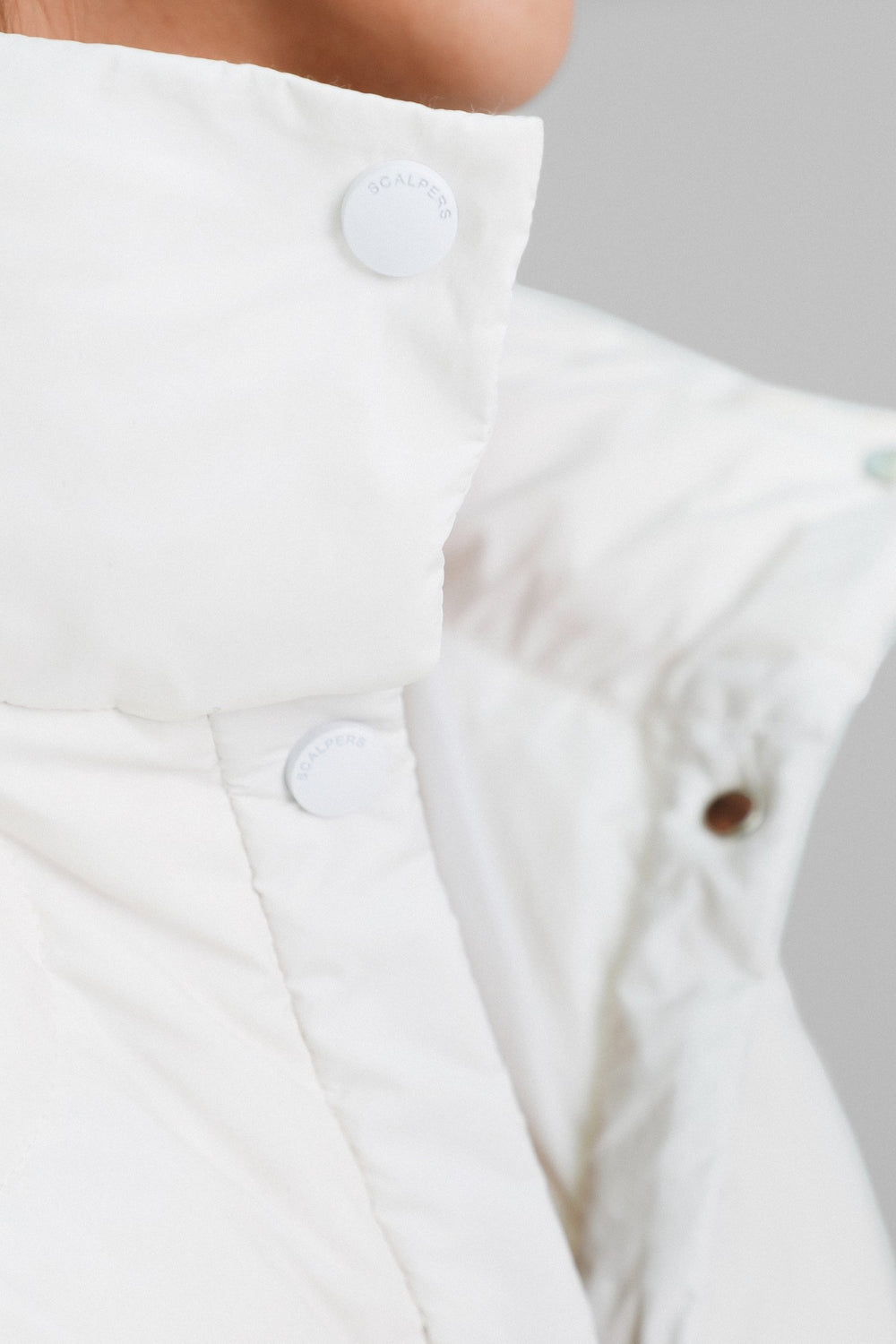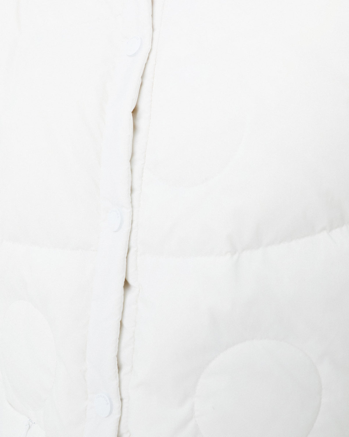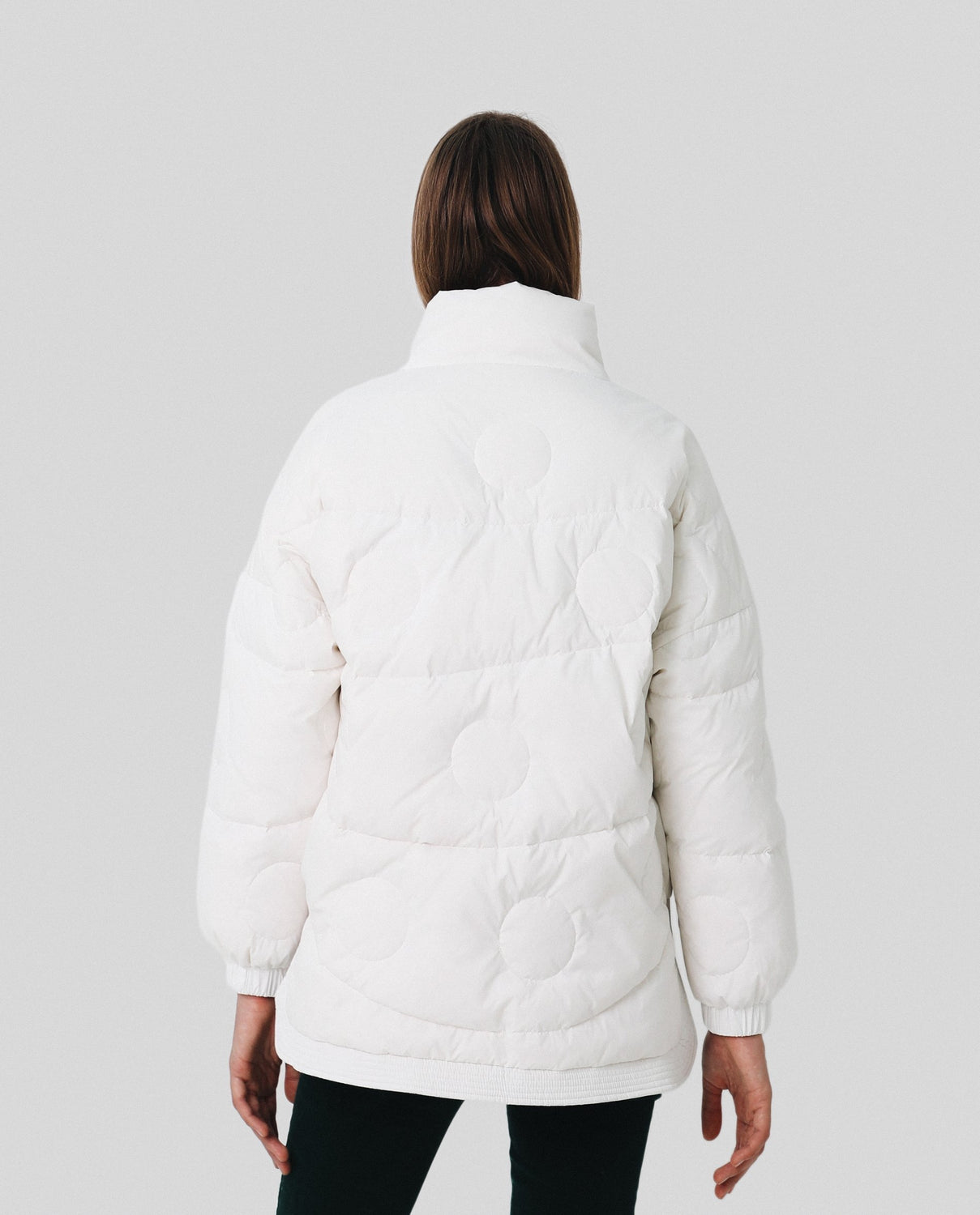 Abrigo acolchado confeccionado en tejido de nailon. Corte Regular Fit asimétrico, cuello alto y cierre con cremallera oculta por tapeta. Manga larga terminada en elástico. Bolsillos invisibles en el delantero.