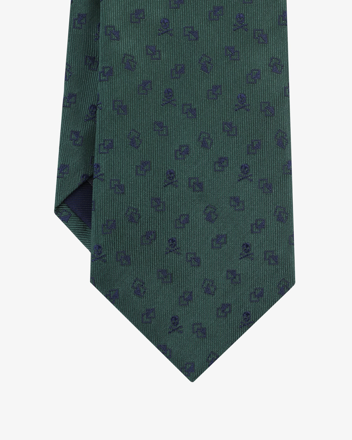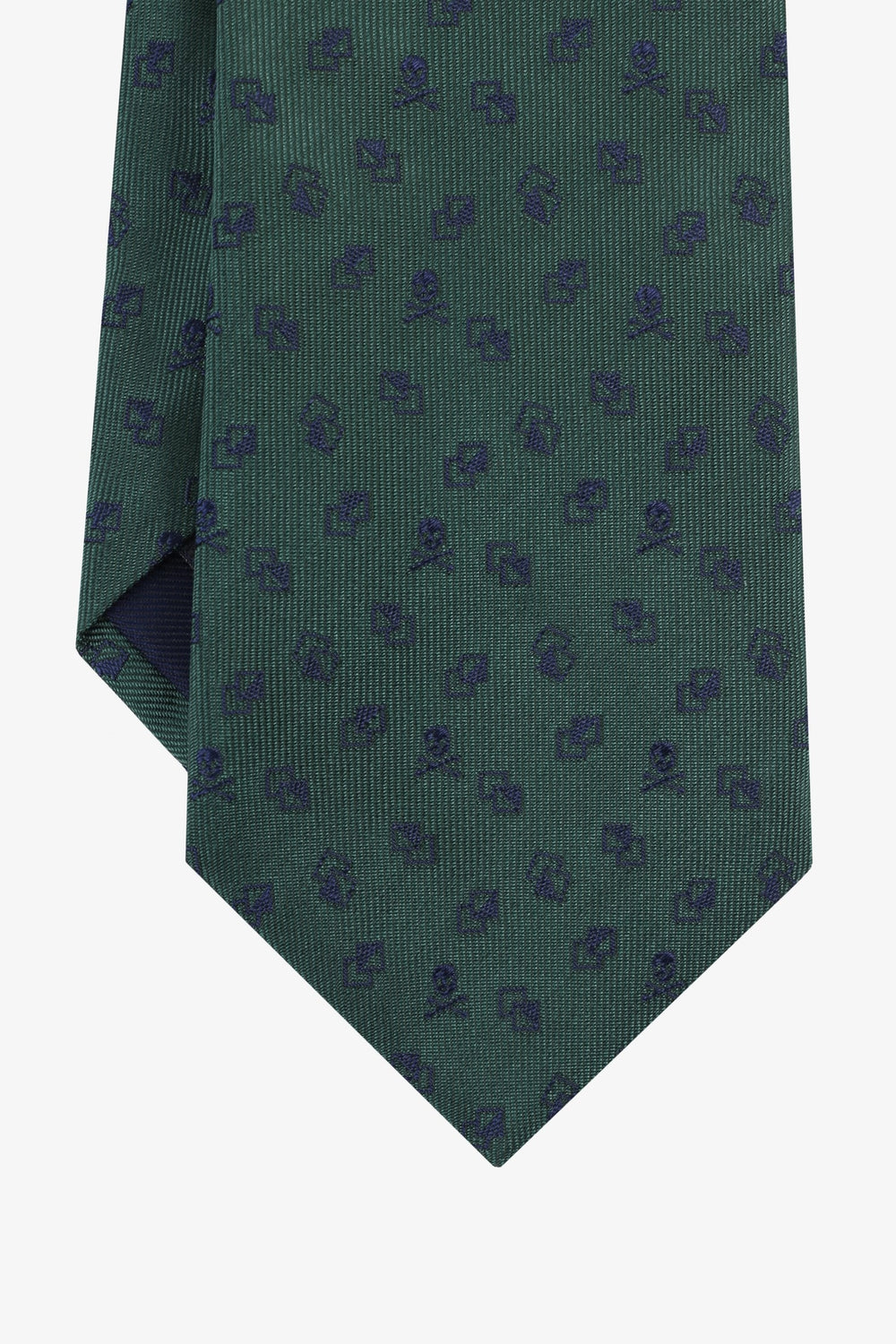 Corbata con motivo geométrico y de calaveras confeccionada en tejido 100% seda.