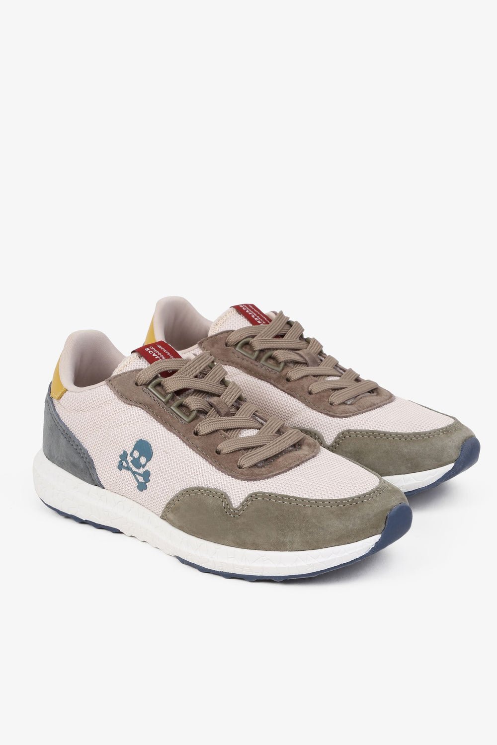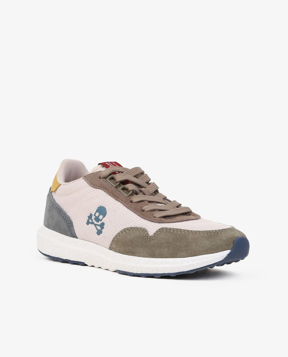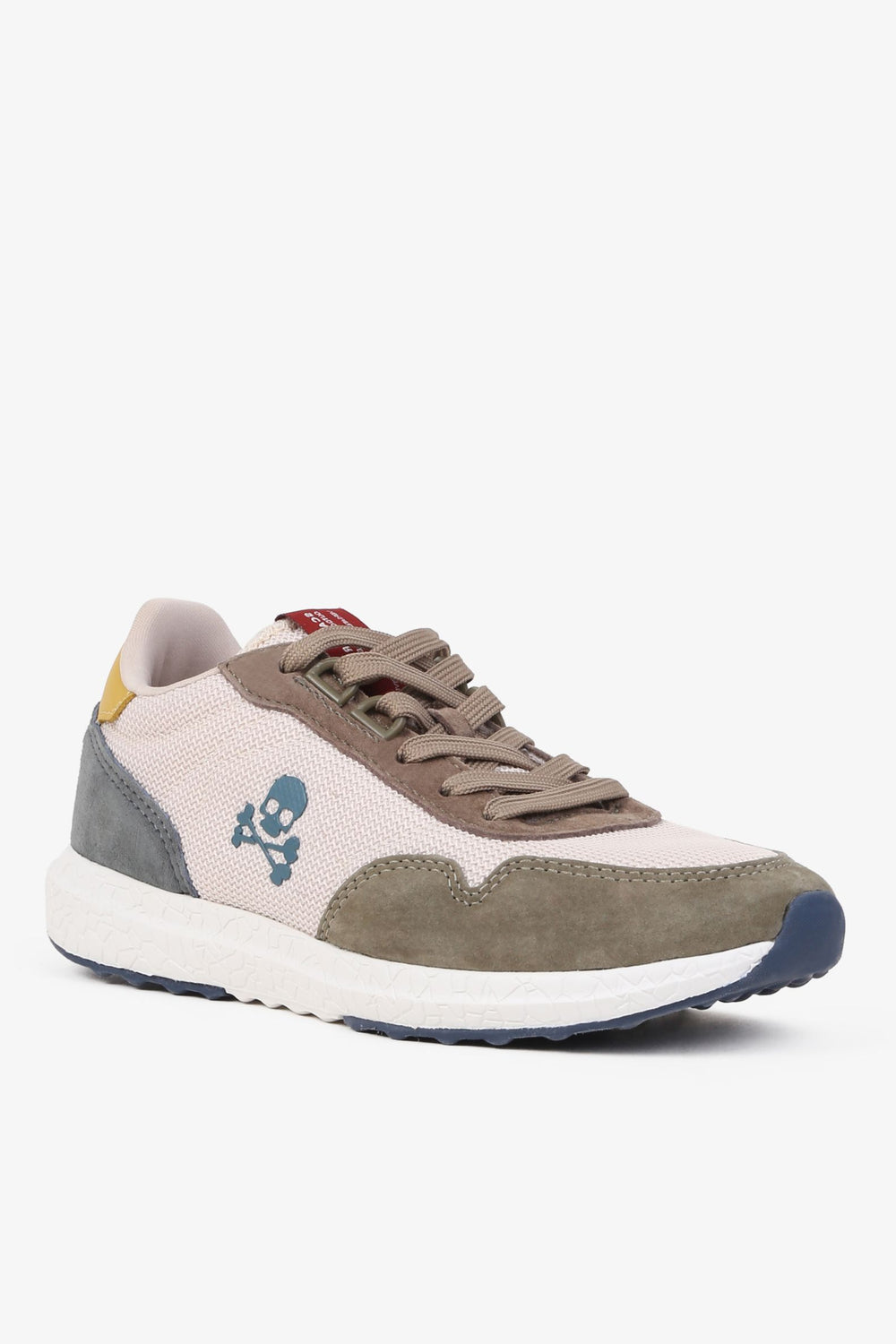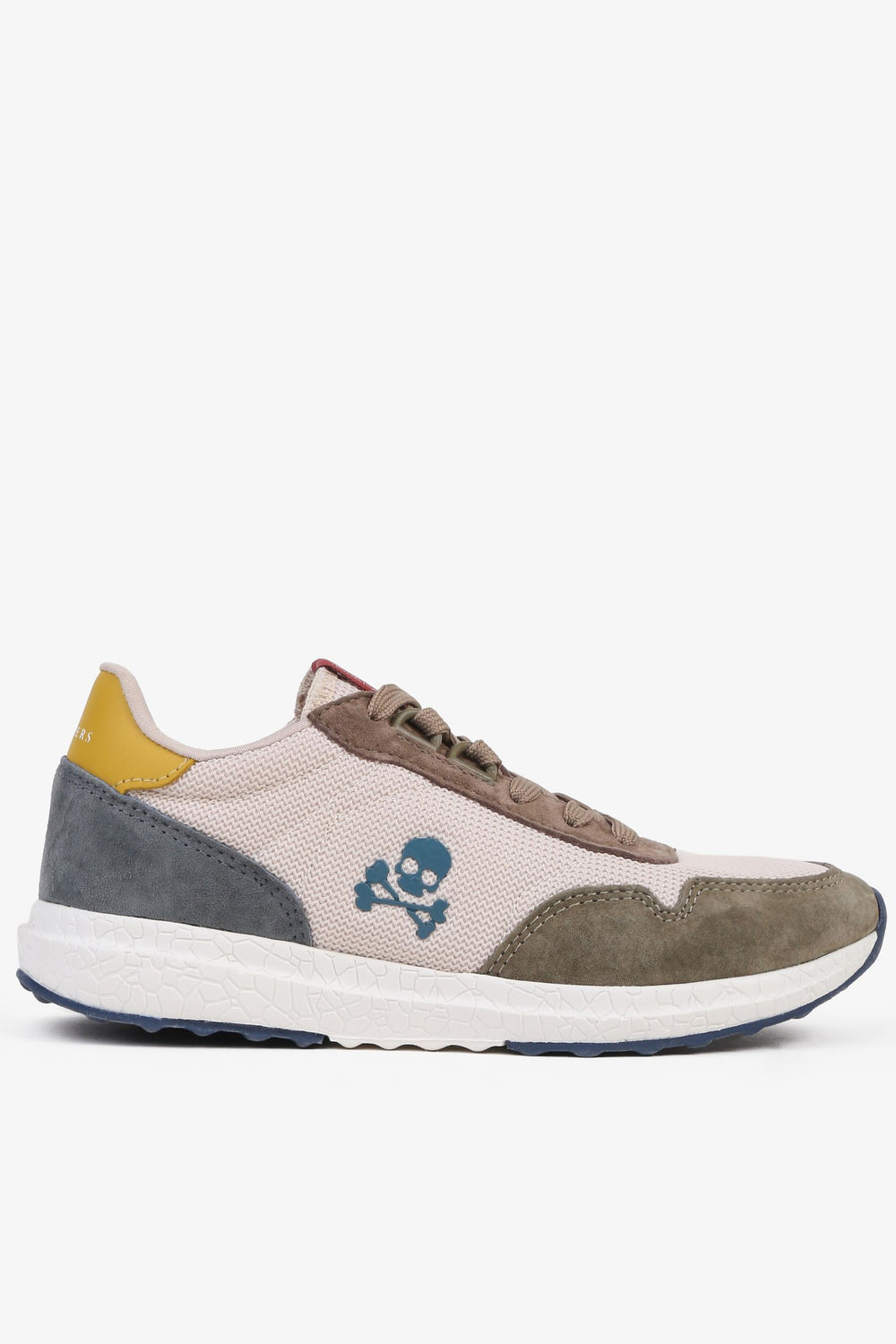 Sneakers confeccionada en piel de cerdo. Cierre con cordones a tono y malla delantera. Detalle de suela de goma ancha y calavera lateral.
