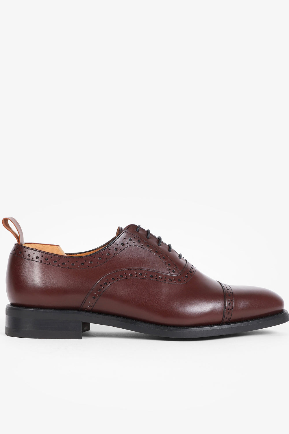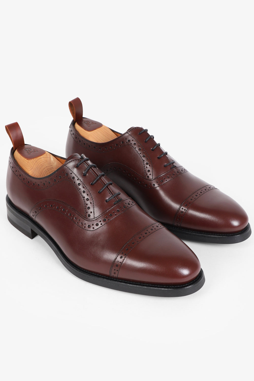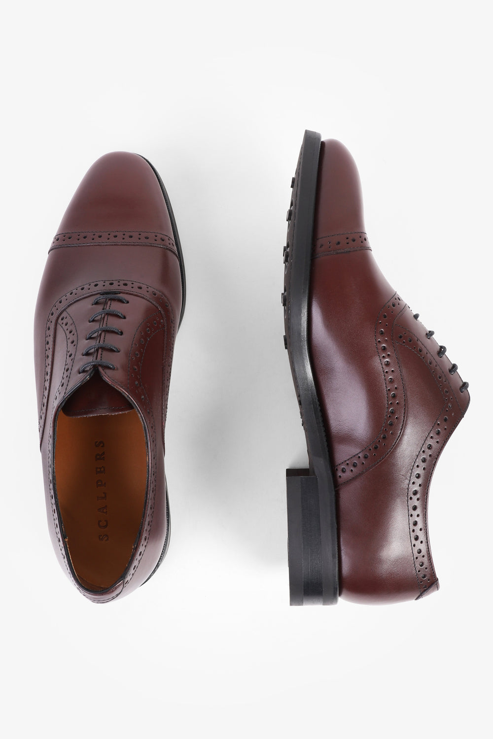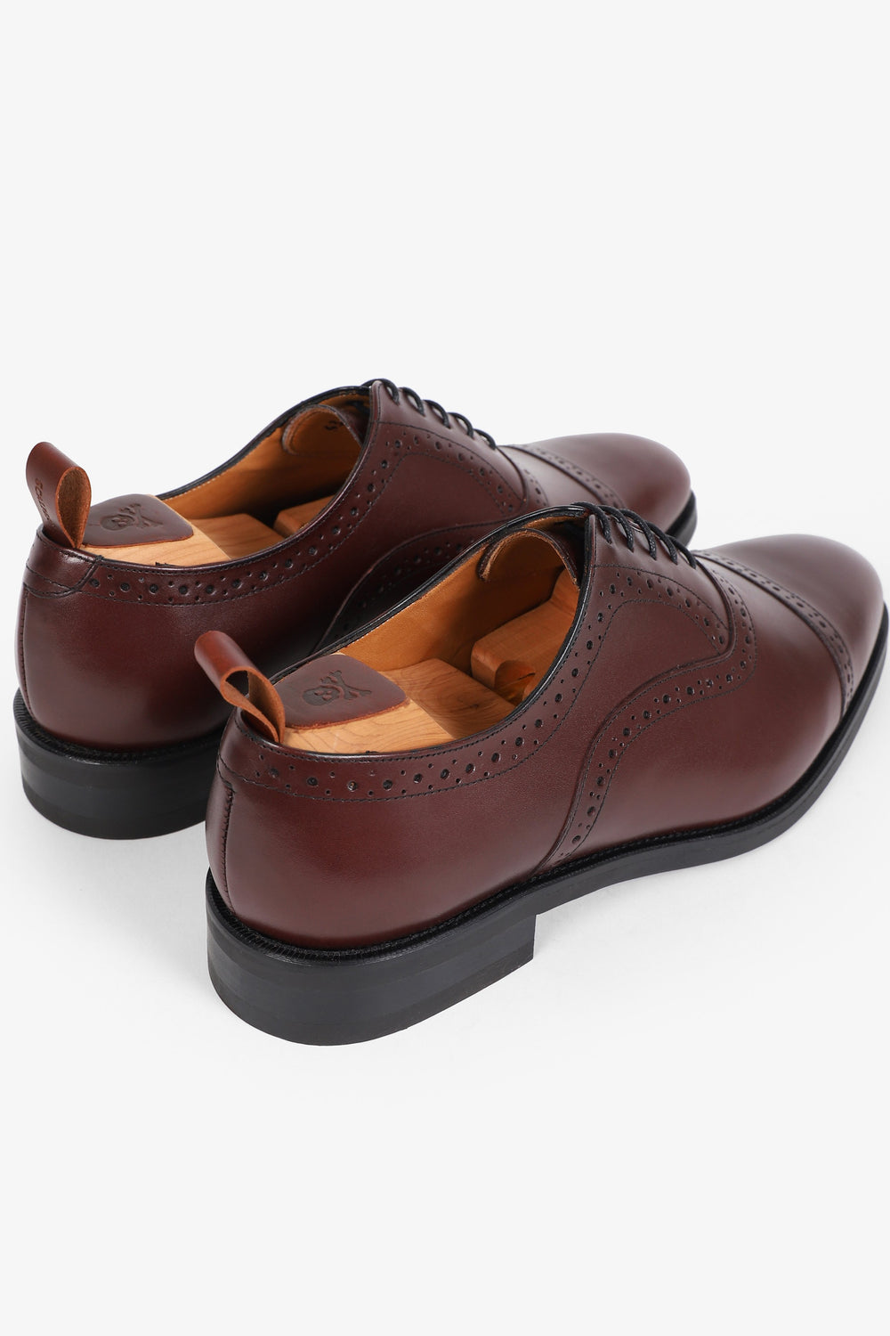 Zapatos de vestir oxford confeccionados en 100% piel Cierra con cordones al tono, suela de goma y puntera partida y picado. Fabricados en España.