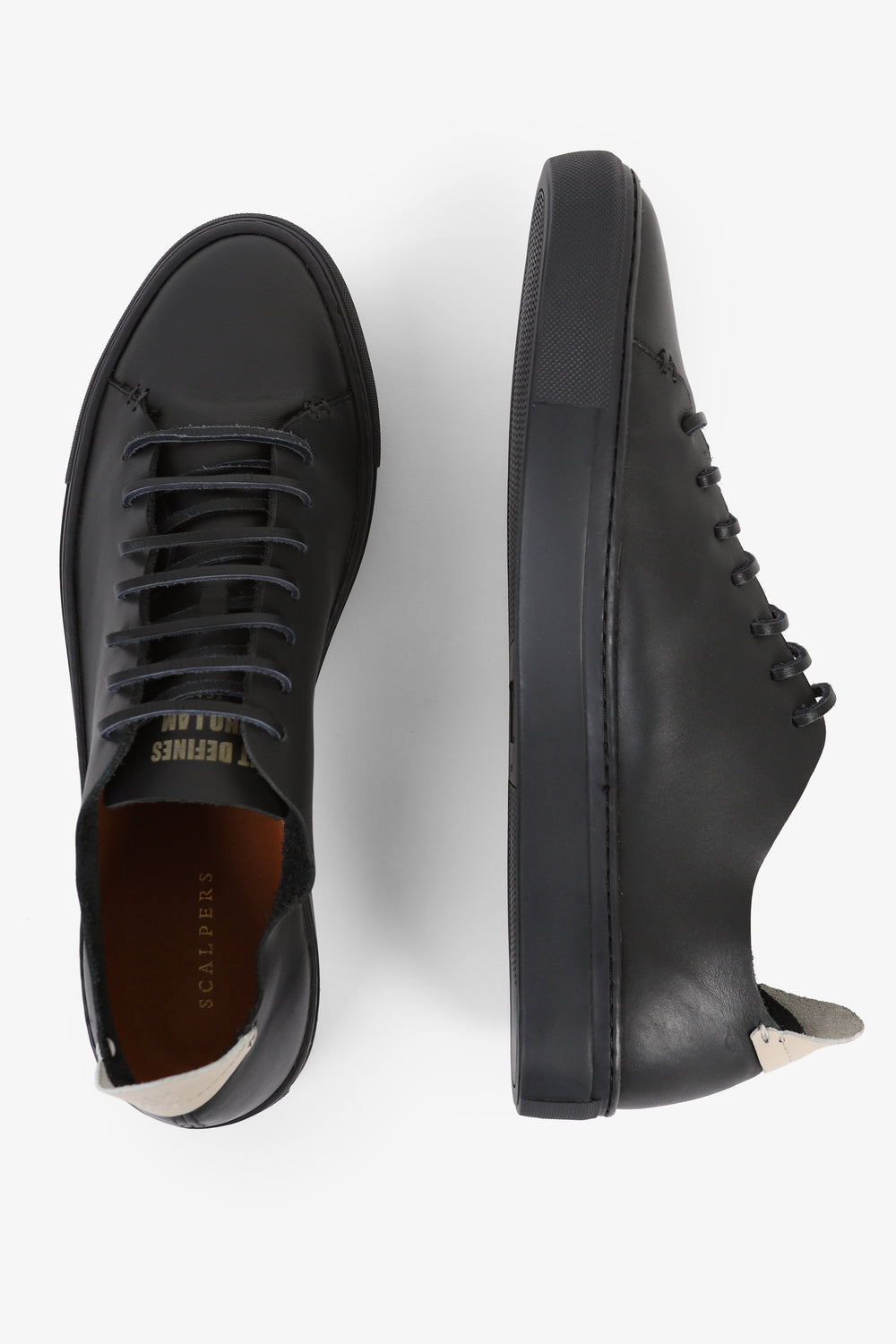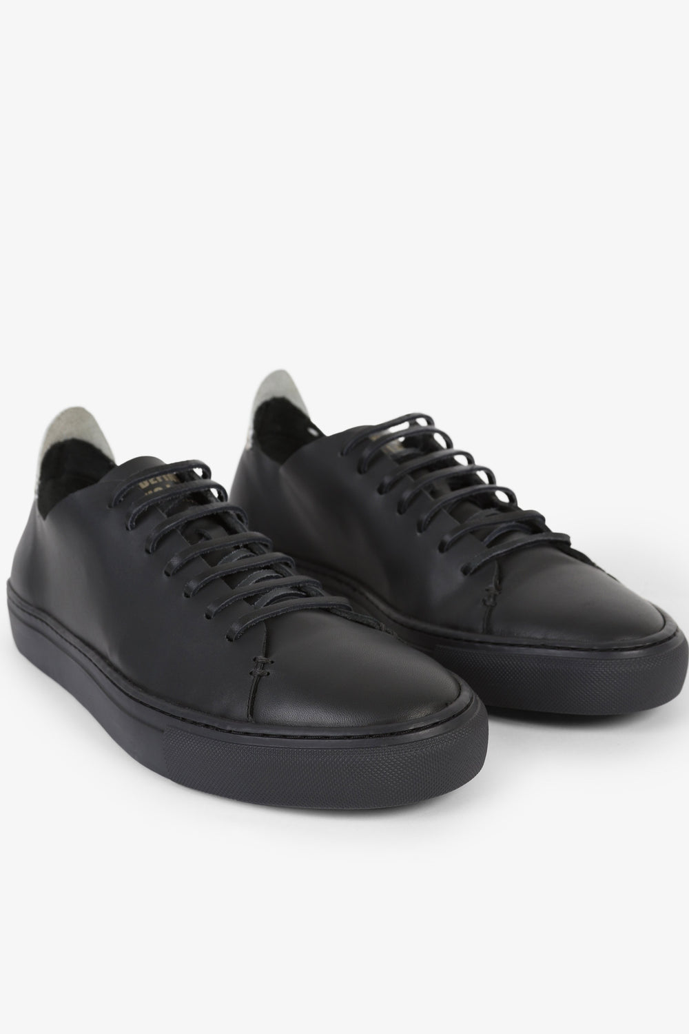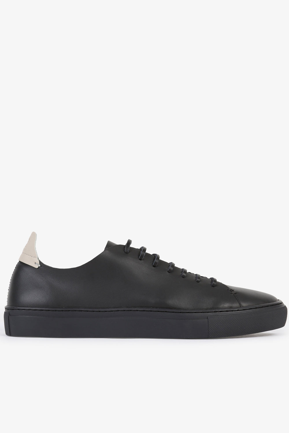 Sneakers confeccionadas en 100% piel. Cierre con cordones a tono y suela de goma. Detalle de talón a contraste.