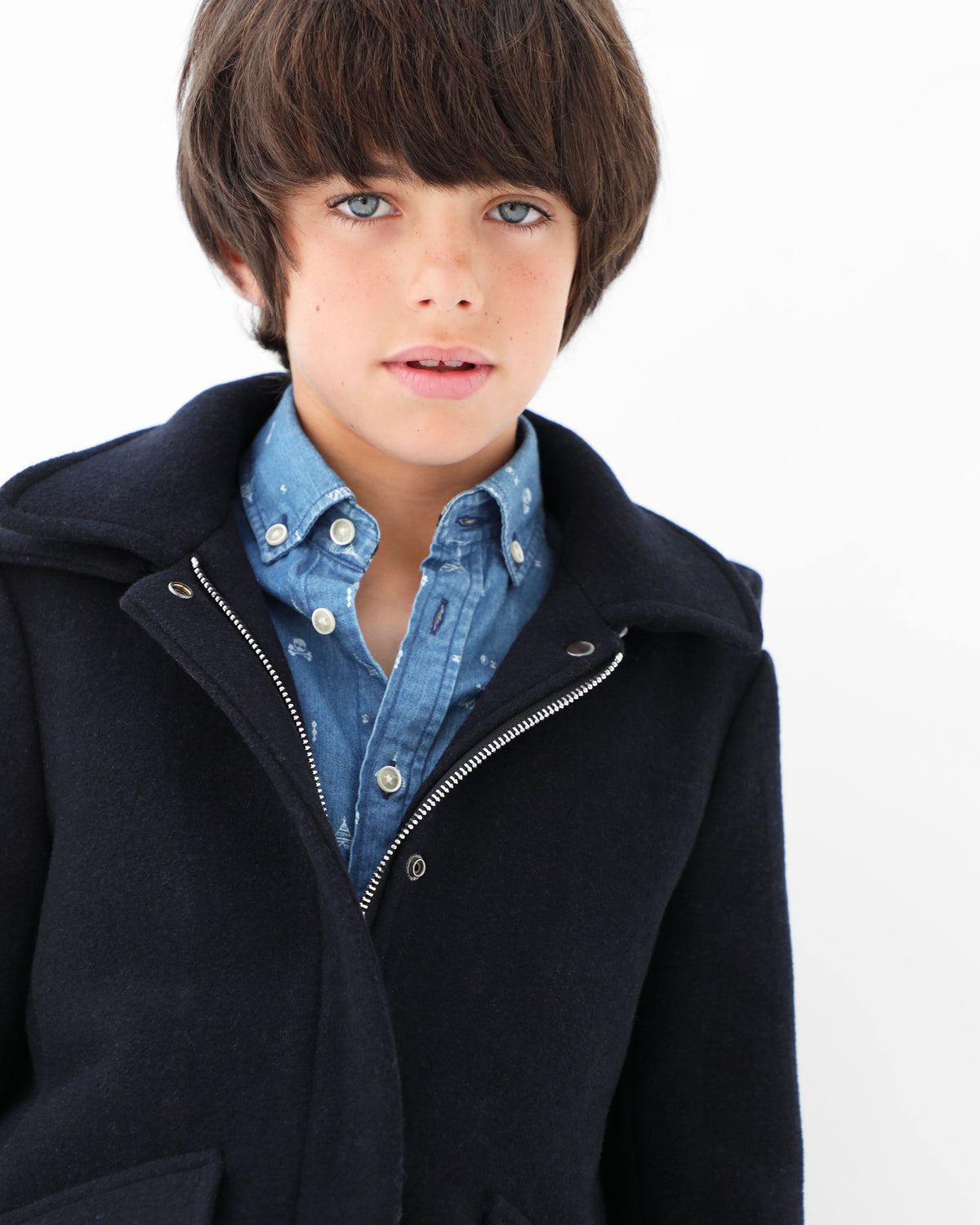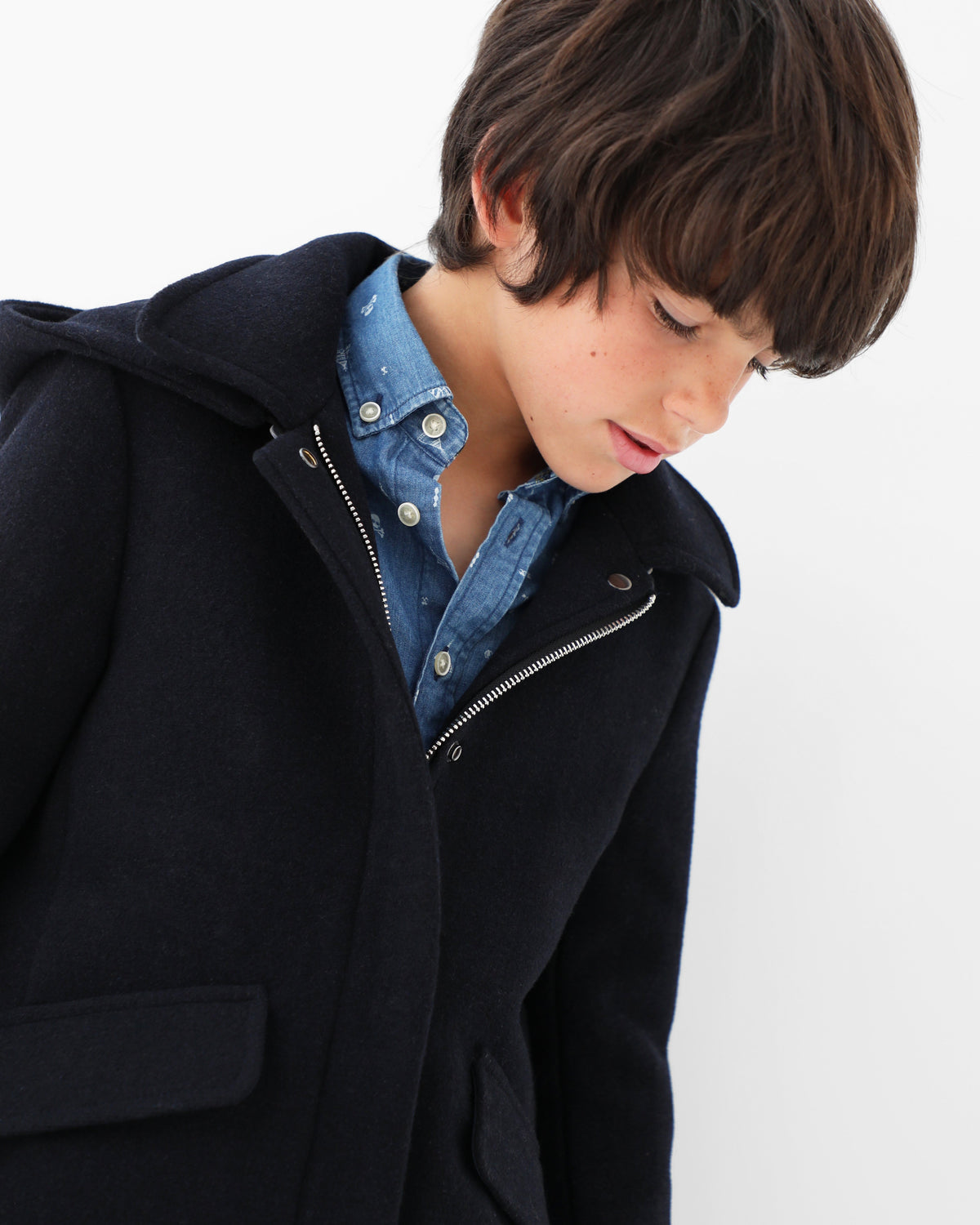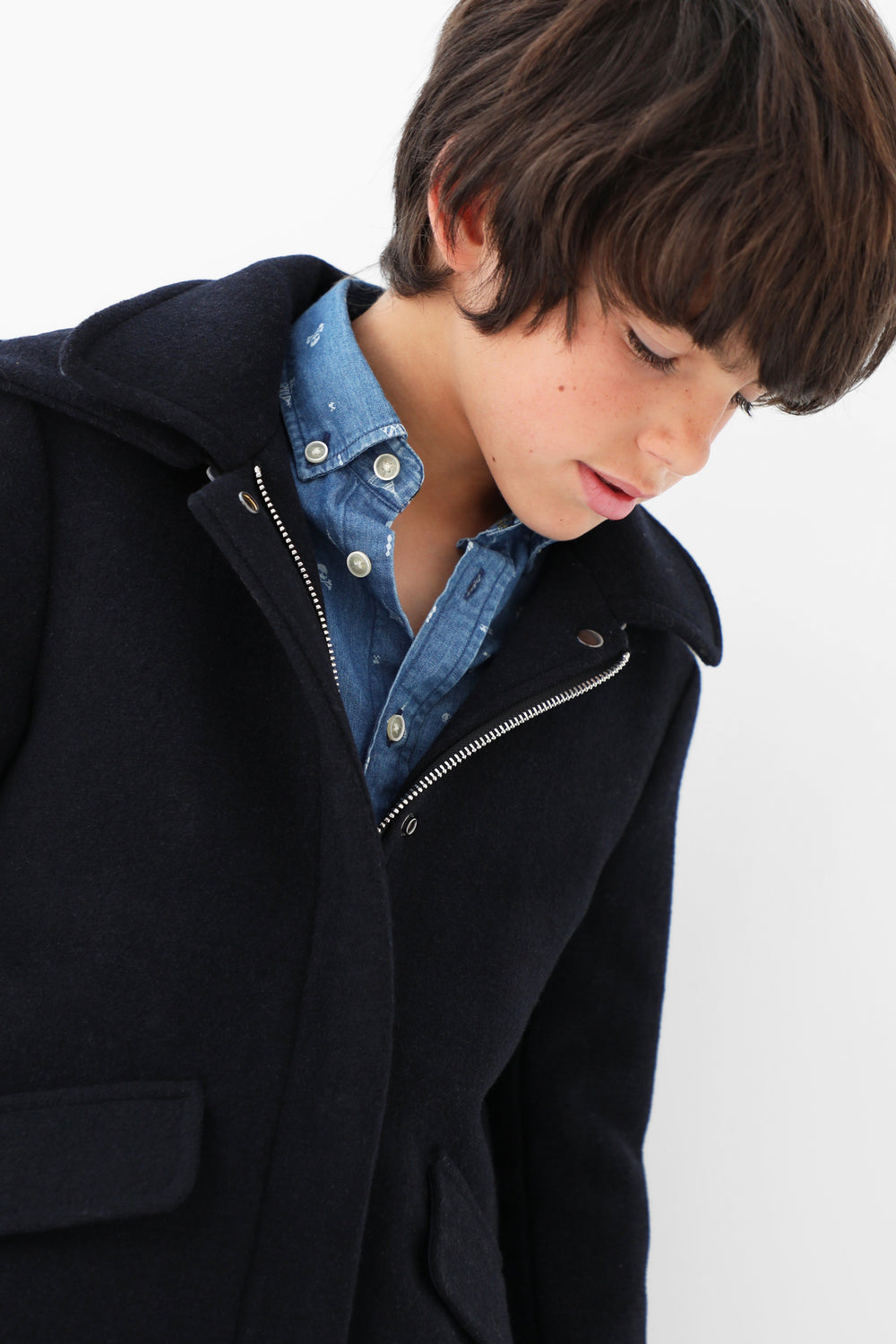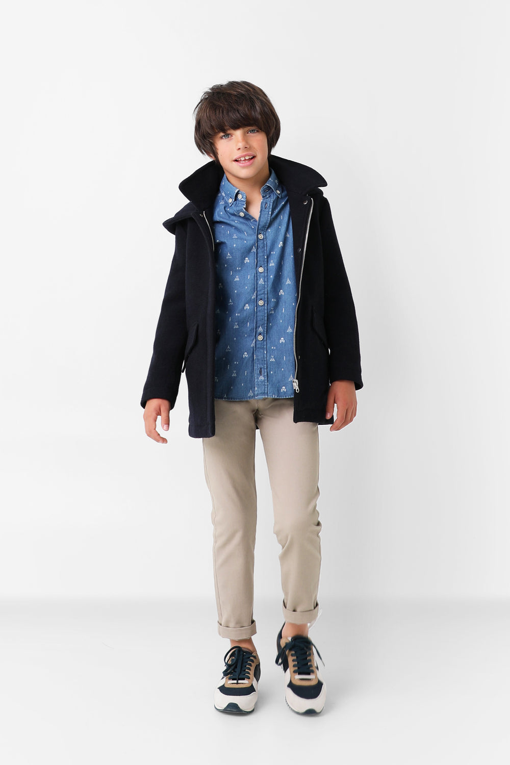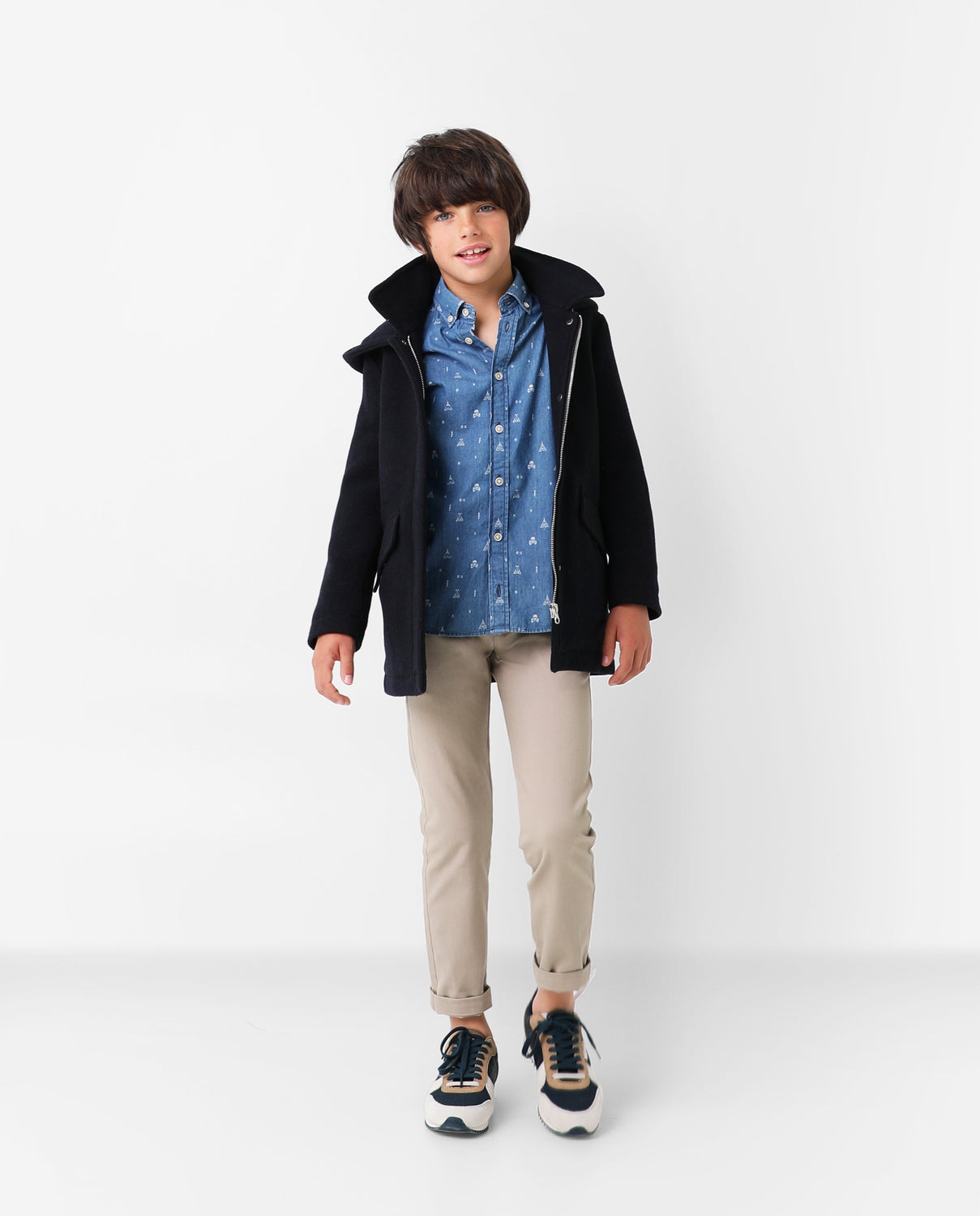 Abrigo de paño confeccionado en algodón. Corte Regular Fit, cuello con capucha y cierre con cremallera. Bolsillos frontales y manga larga.