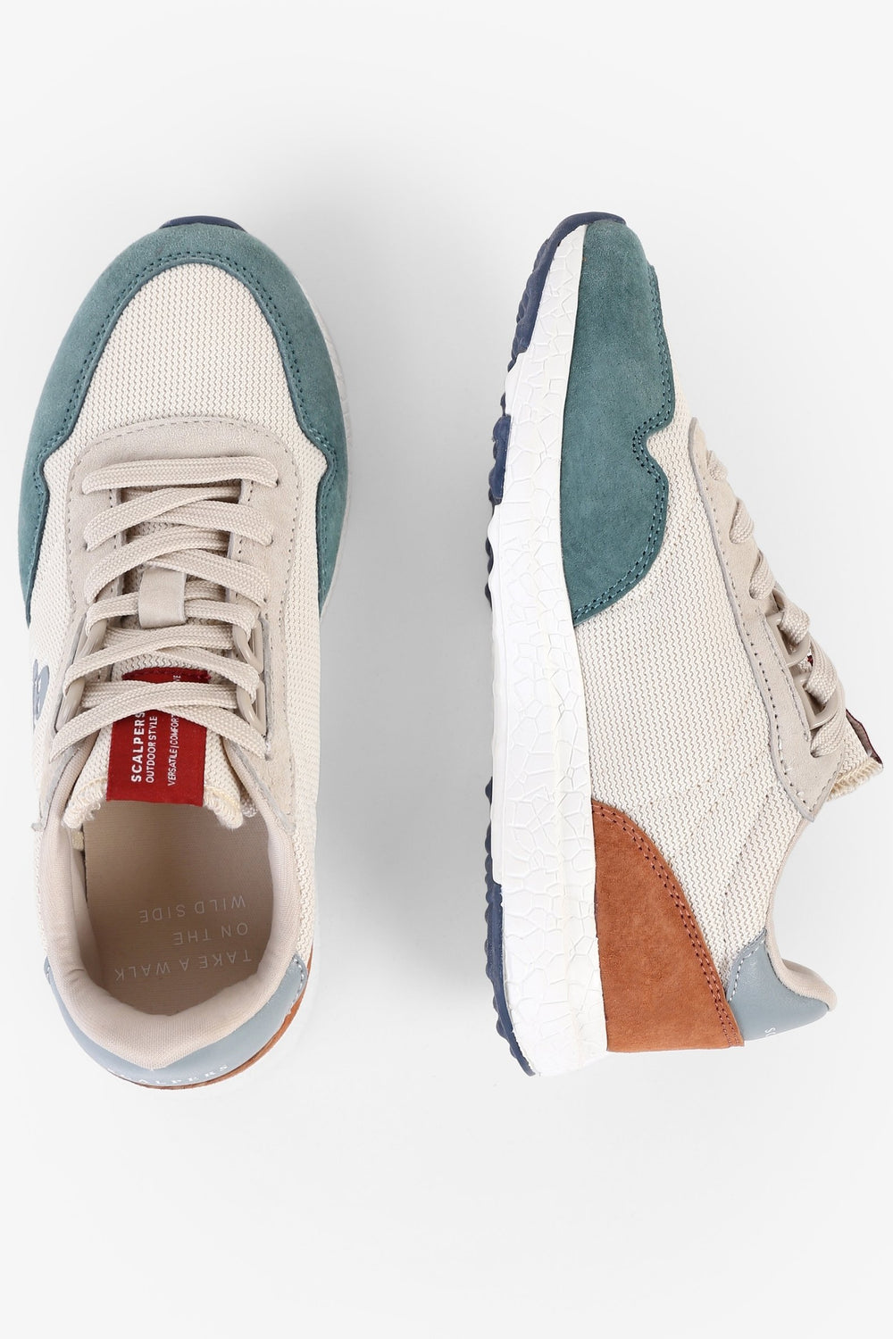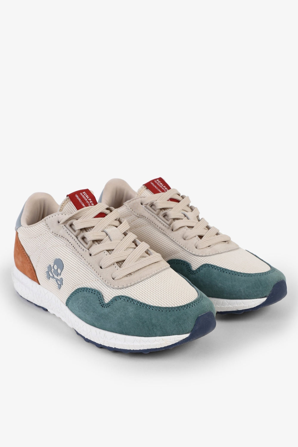 Zapatillas tipo runner confeccionada en piel y tejidos combinados. Cierre con cordones y puntera redonda.