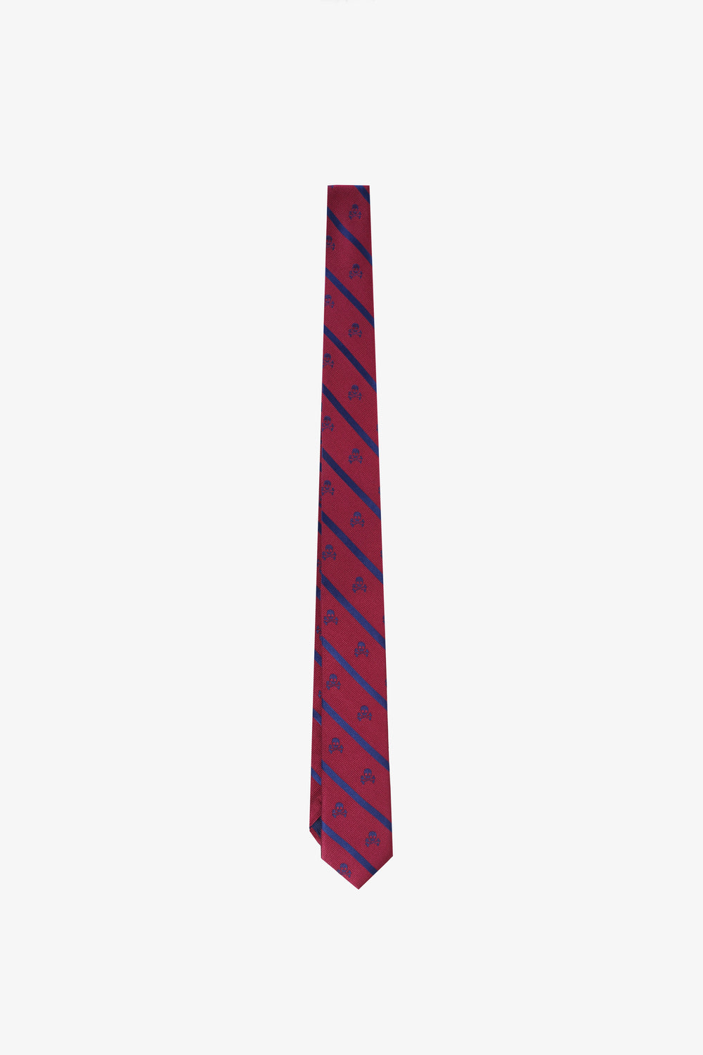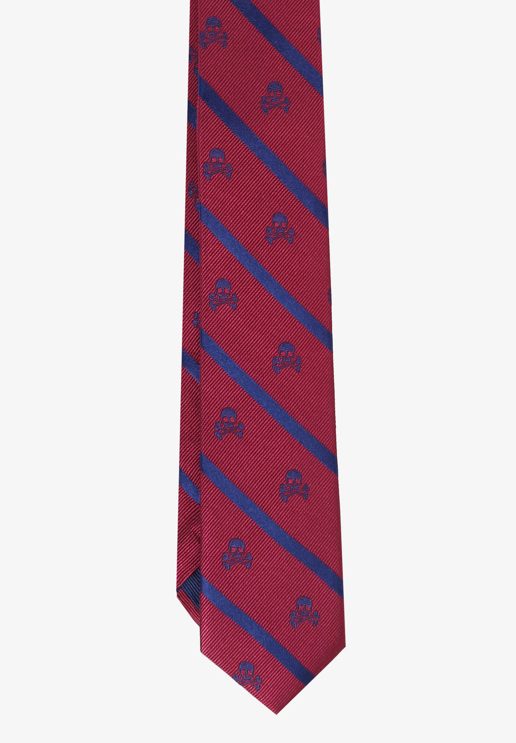 Corbata con motivo de rayas y calaveras confeccionada en tejido 100% seda.