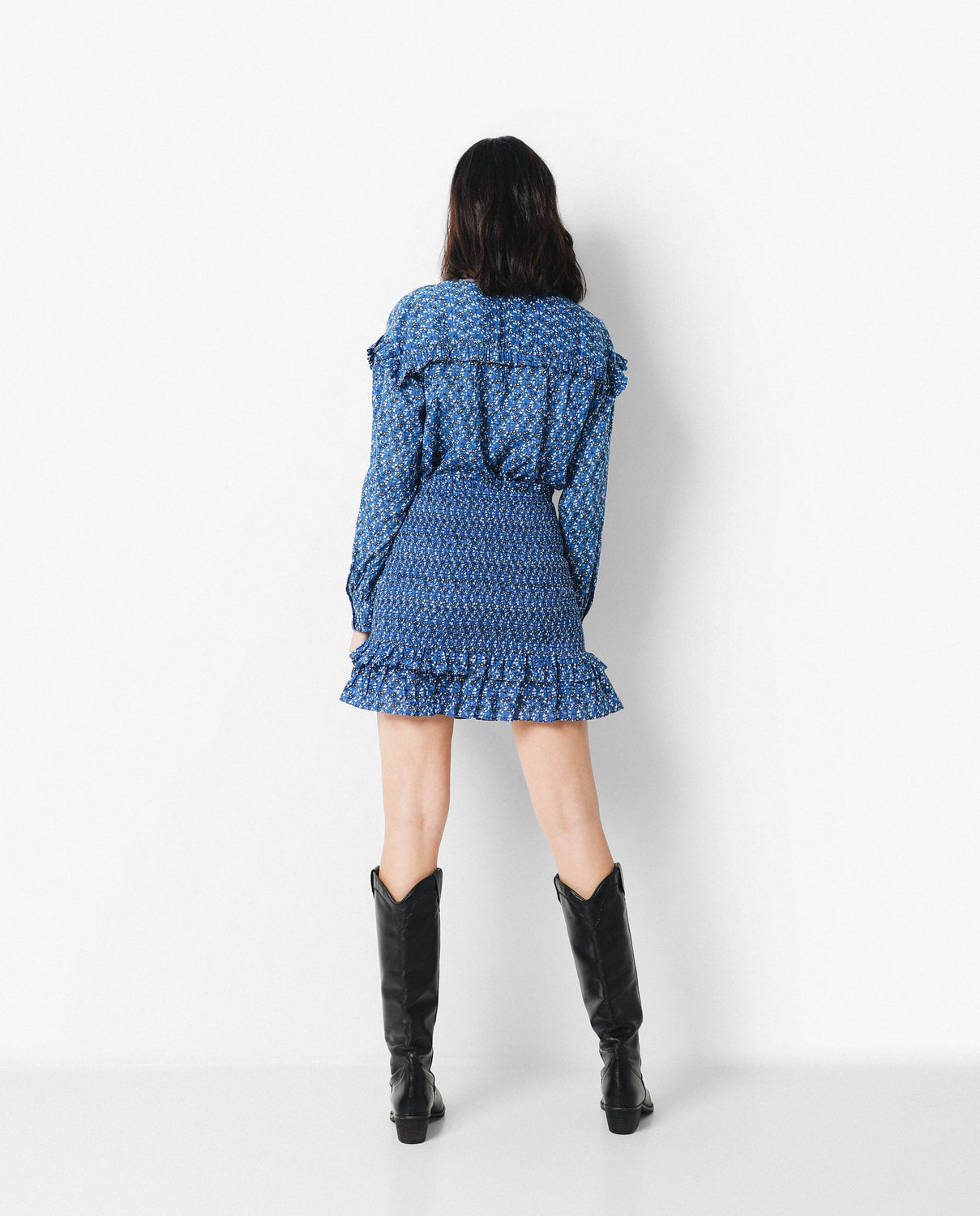 FALDA MINI FRUNCES FLORES