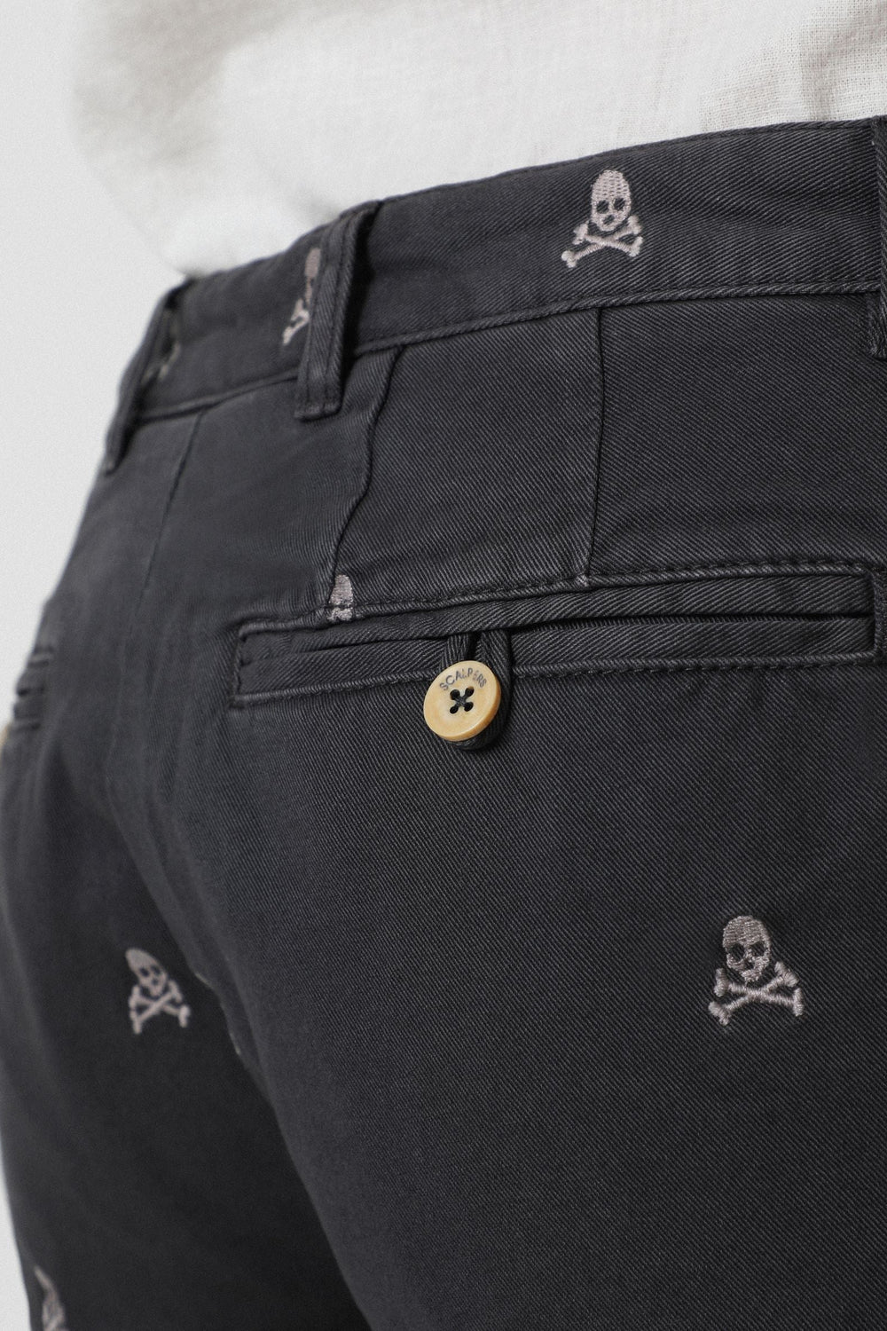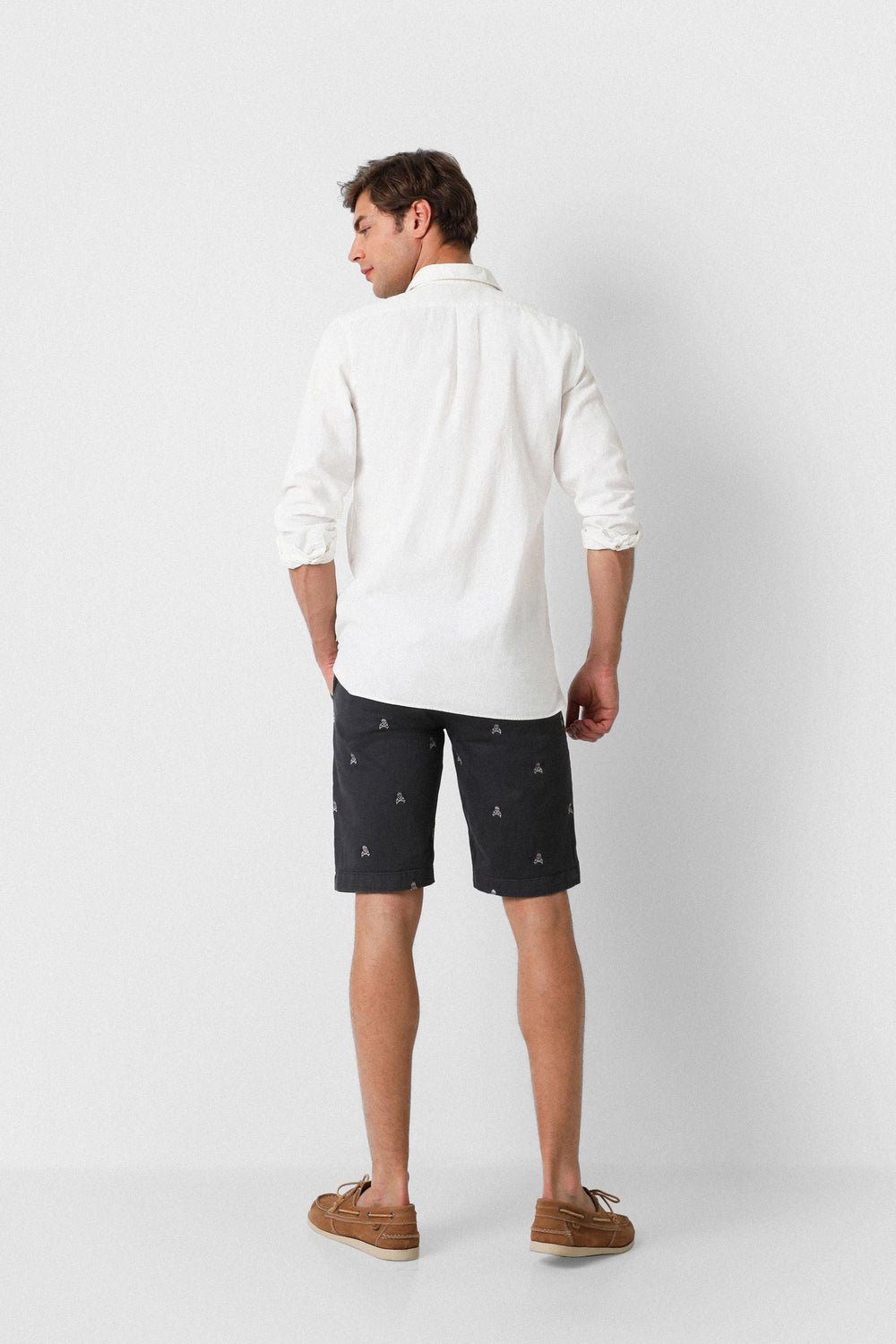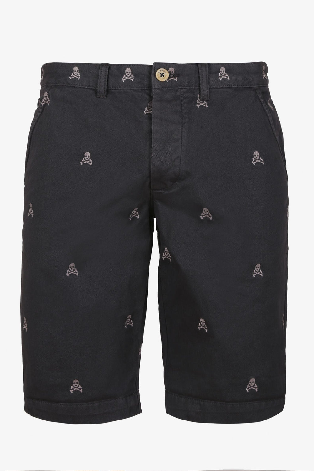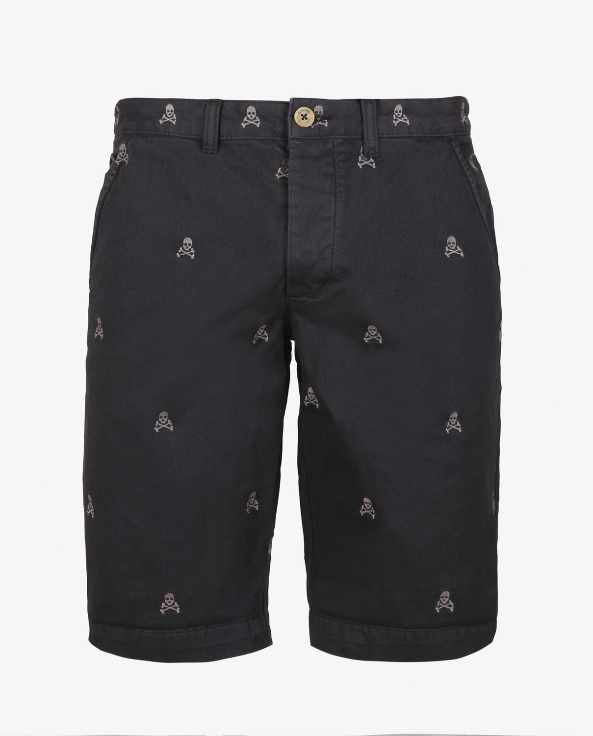 Bermudas con estampado calaveras all over confeccionadas en tejido 100% algodón. Corte Regular Fit, cierre con botones ocultos por tapeta. Bolsillos frontales y traseros y forro de espiga.