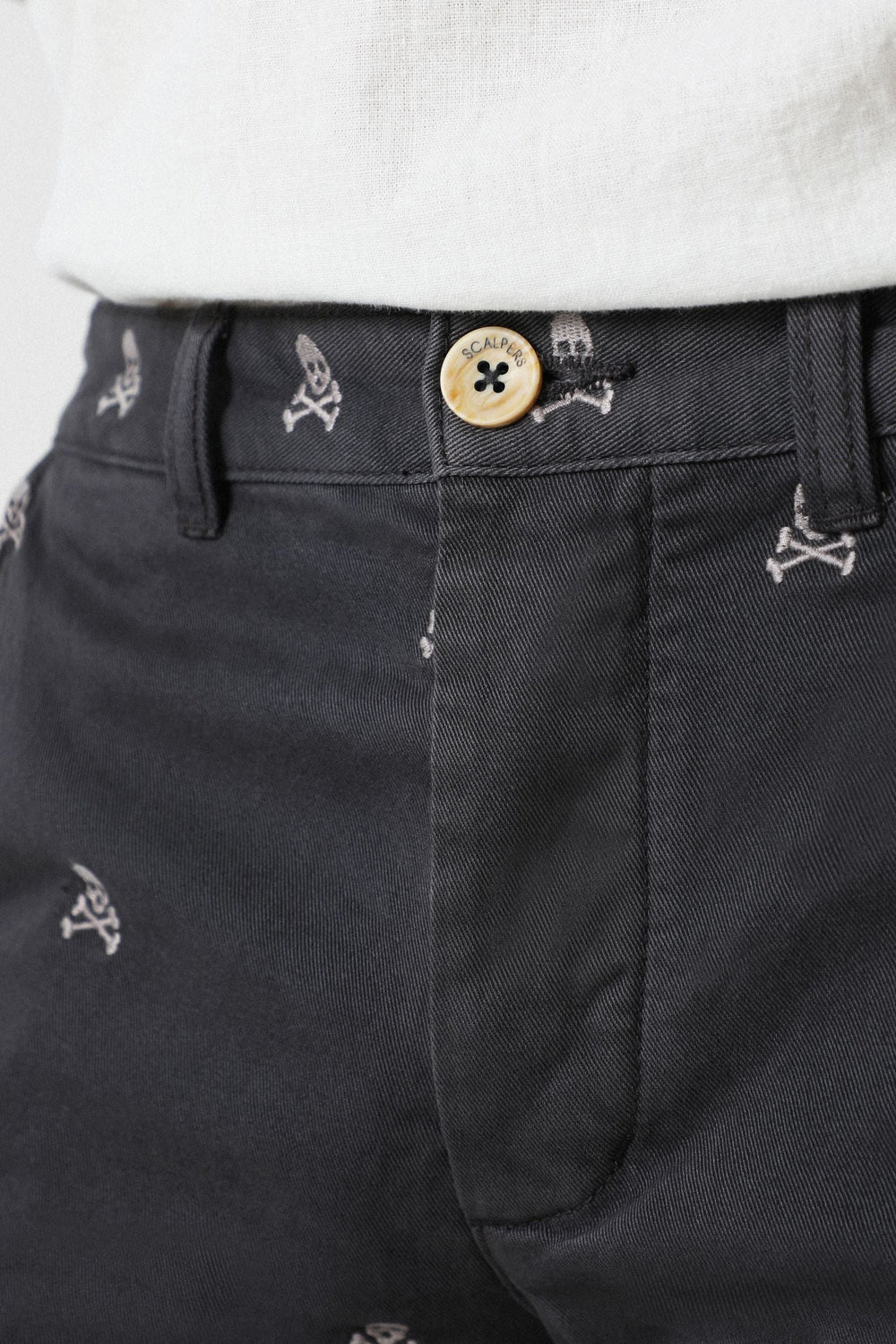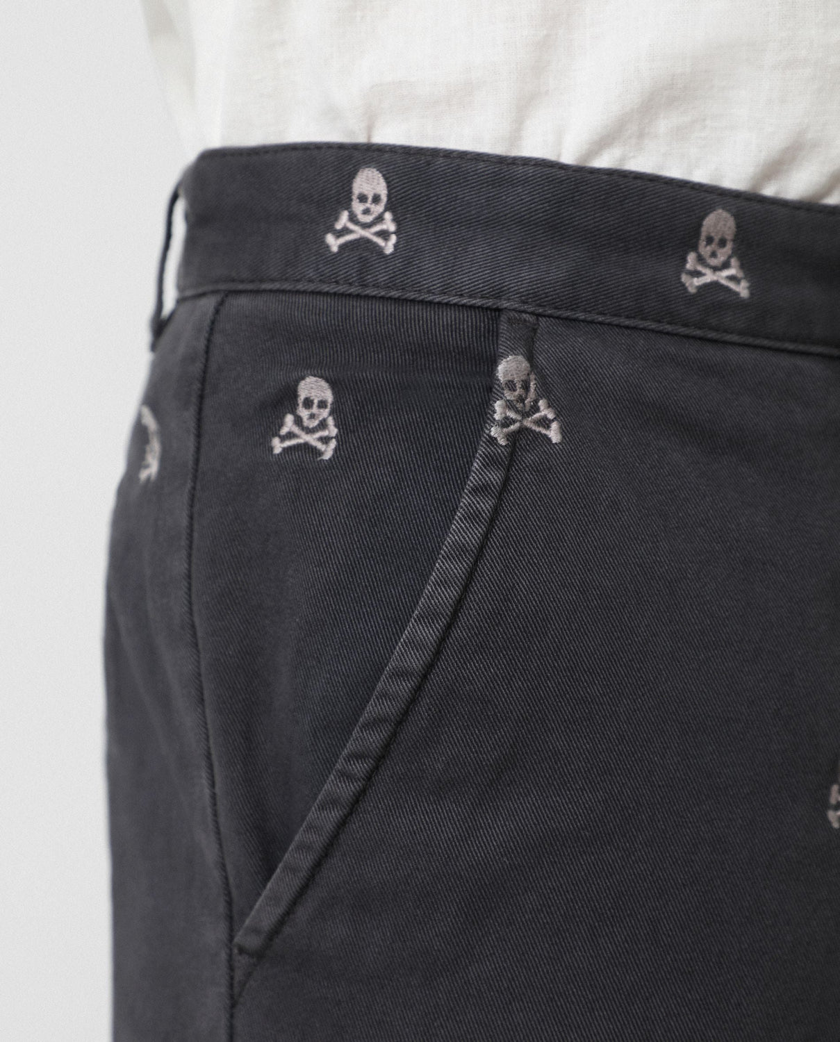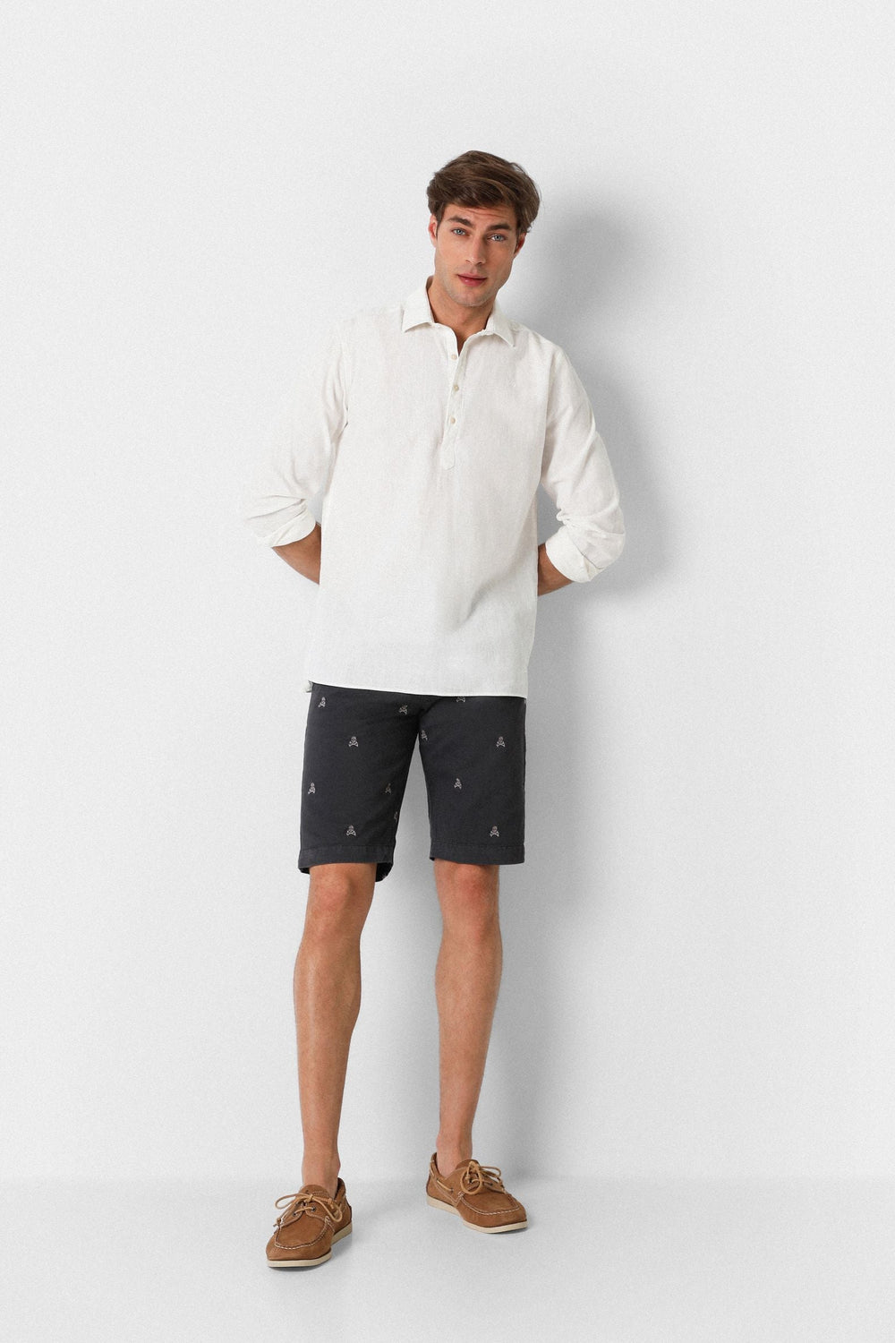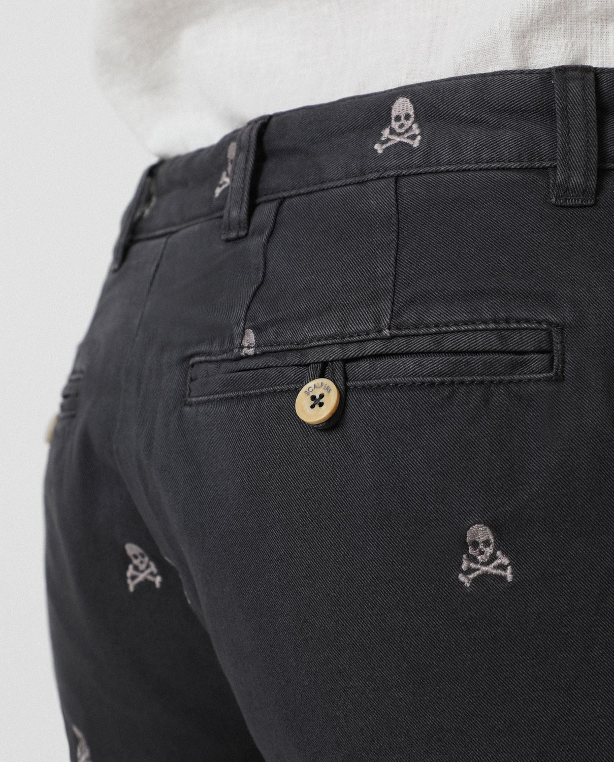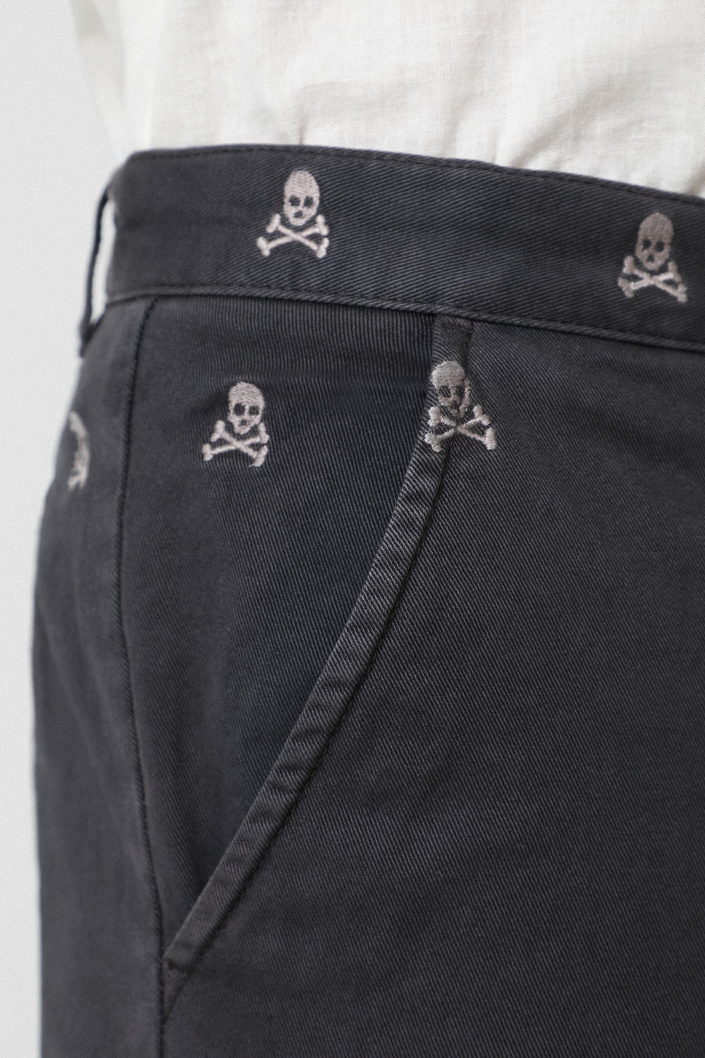 Bermudas con estampado calaveras all over confeccionadas en tejido 100% algodón. Corte Regular Fit, cierre con botones ocultos por tapeta. Bolsillos frontales y traseros y forro de espiga.