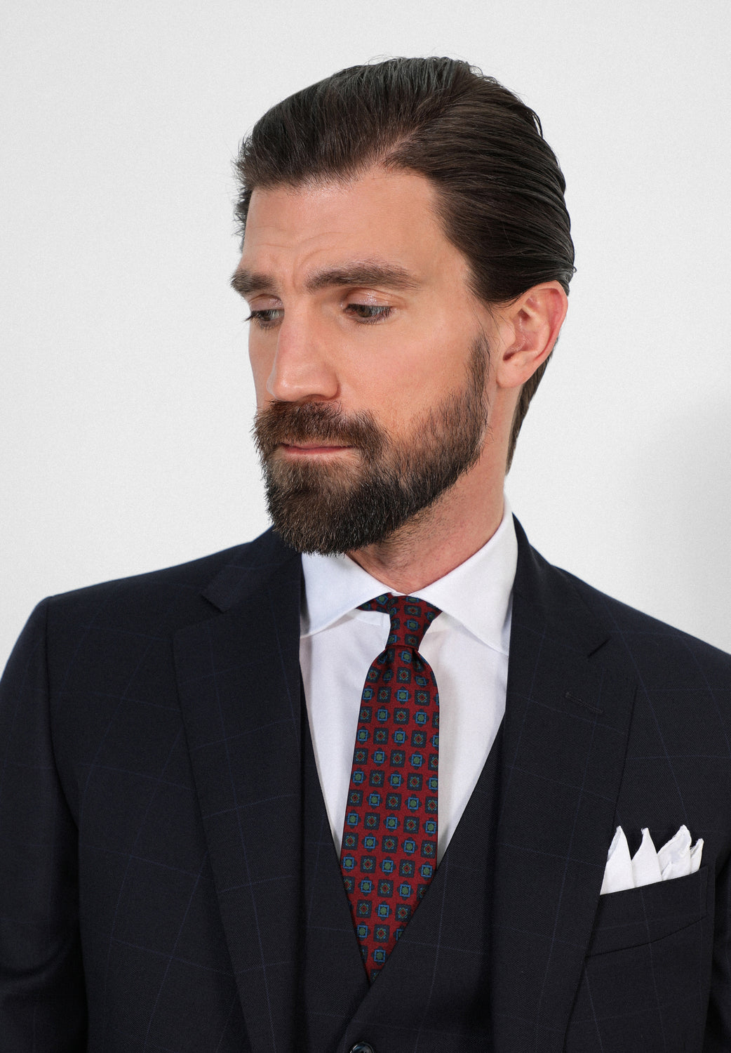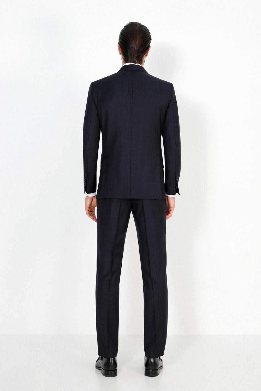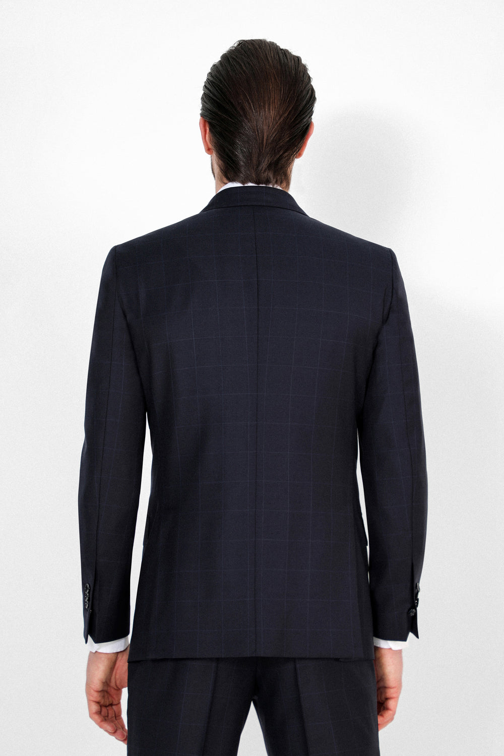 Traje de tres piezas de cuadros confeccionada en tejido 100% lana. Americana de corte Regular Fit, cuello con solapas de muesca y cierre con botones. Manga larga terminada en puño con botones y bolsillo insertado. Bolsillo insertado en el pecho. Chaleco clásico con botones. Pantalón de corte Regular Fit, cierre con botón y cremallera y bolsillos laterales.