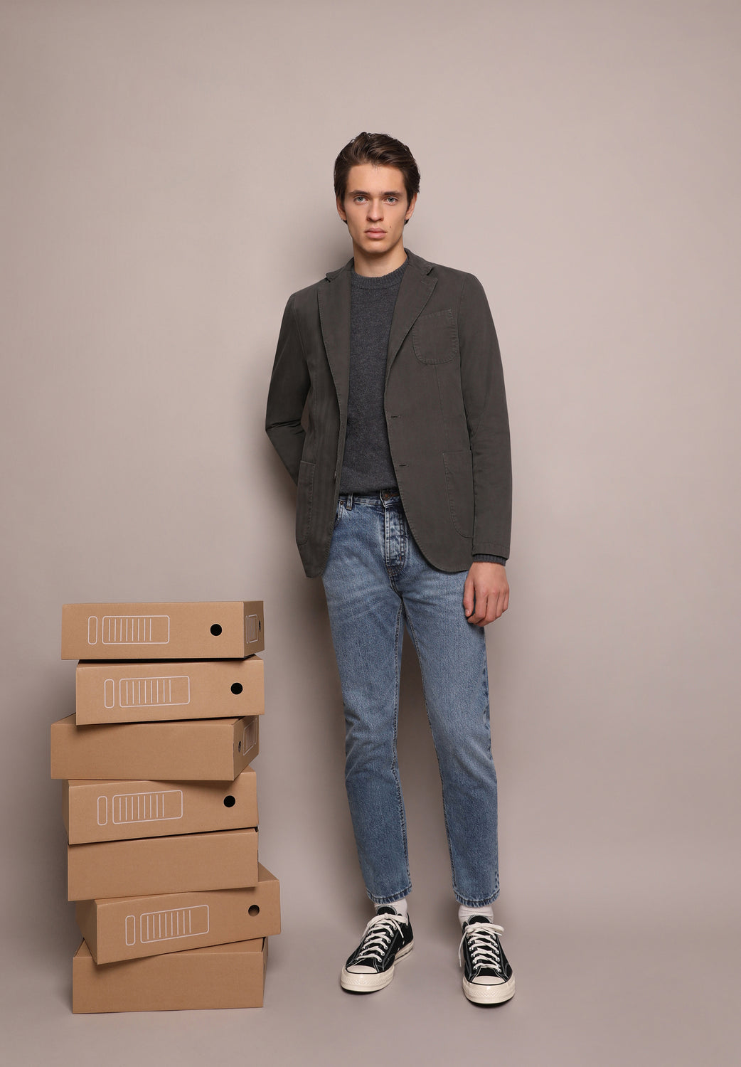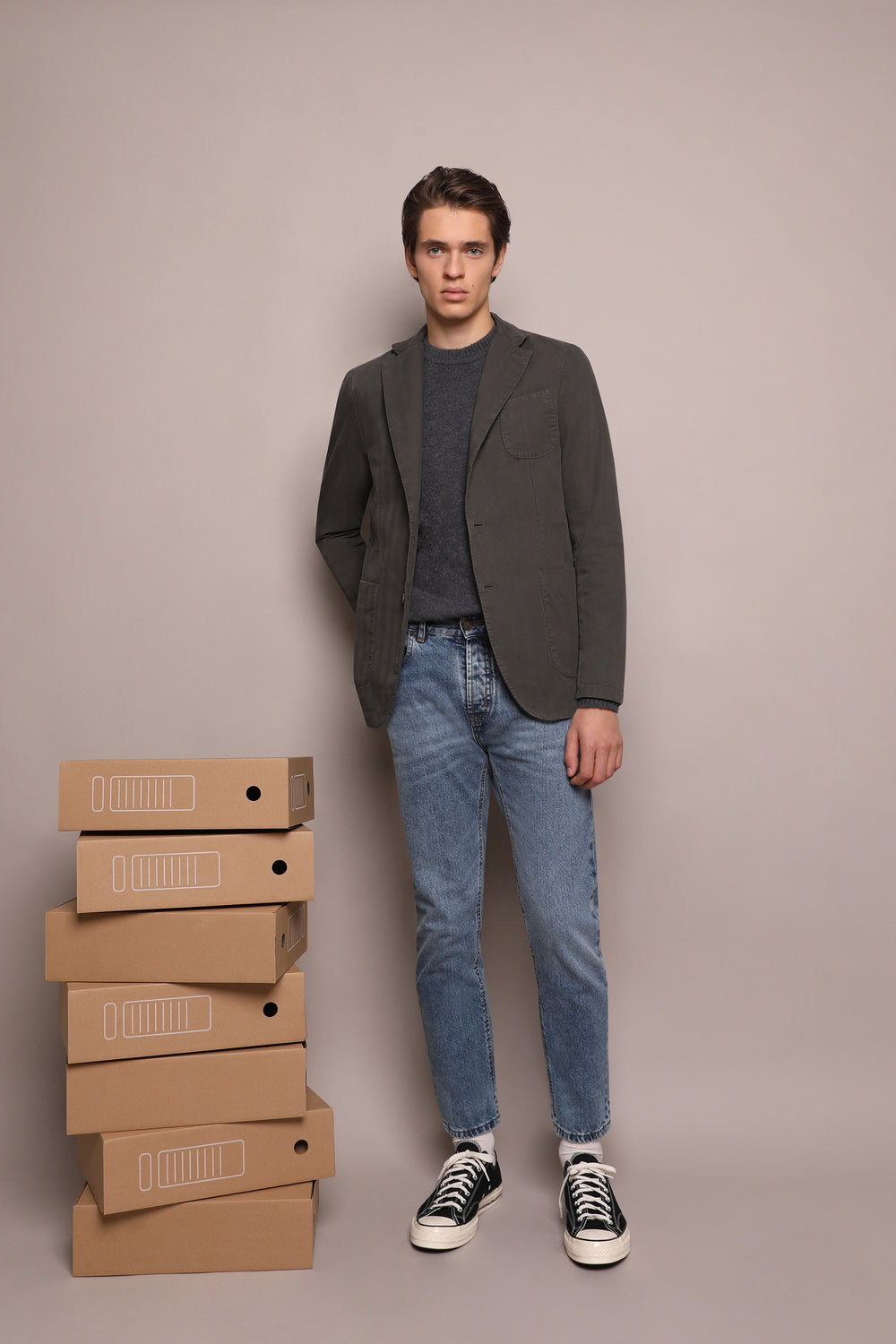 Blazer con detalle de espiguilla confeccionada en tejido 100% algodón. Corte Regular Fit, cuello con solapa y cierre con dos botones. Manga larga terminada en puño con botones y bolsillos.