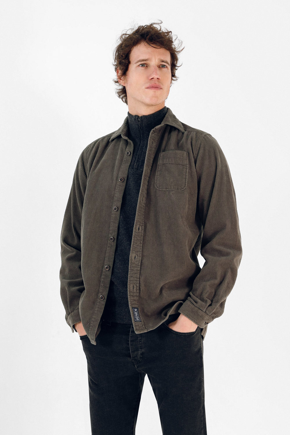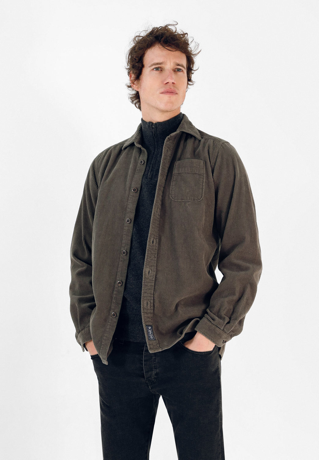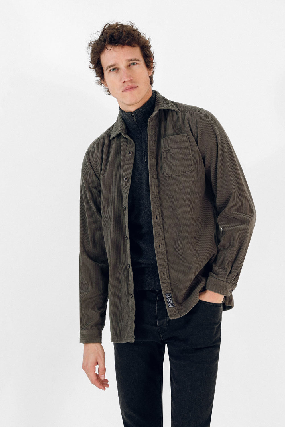 Sobrecamisa confeccionada en tejido de franela. Corte Regular Fit, cuello clásico y cierre con botones. Manga larga y detalle de etiqueta.