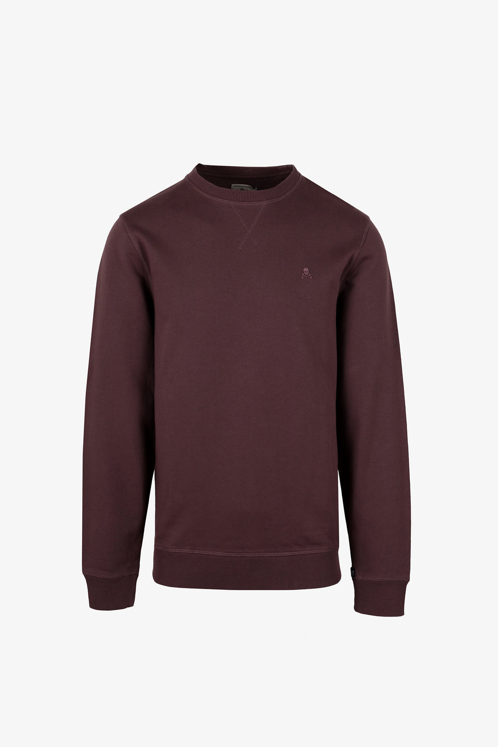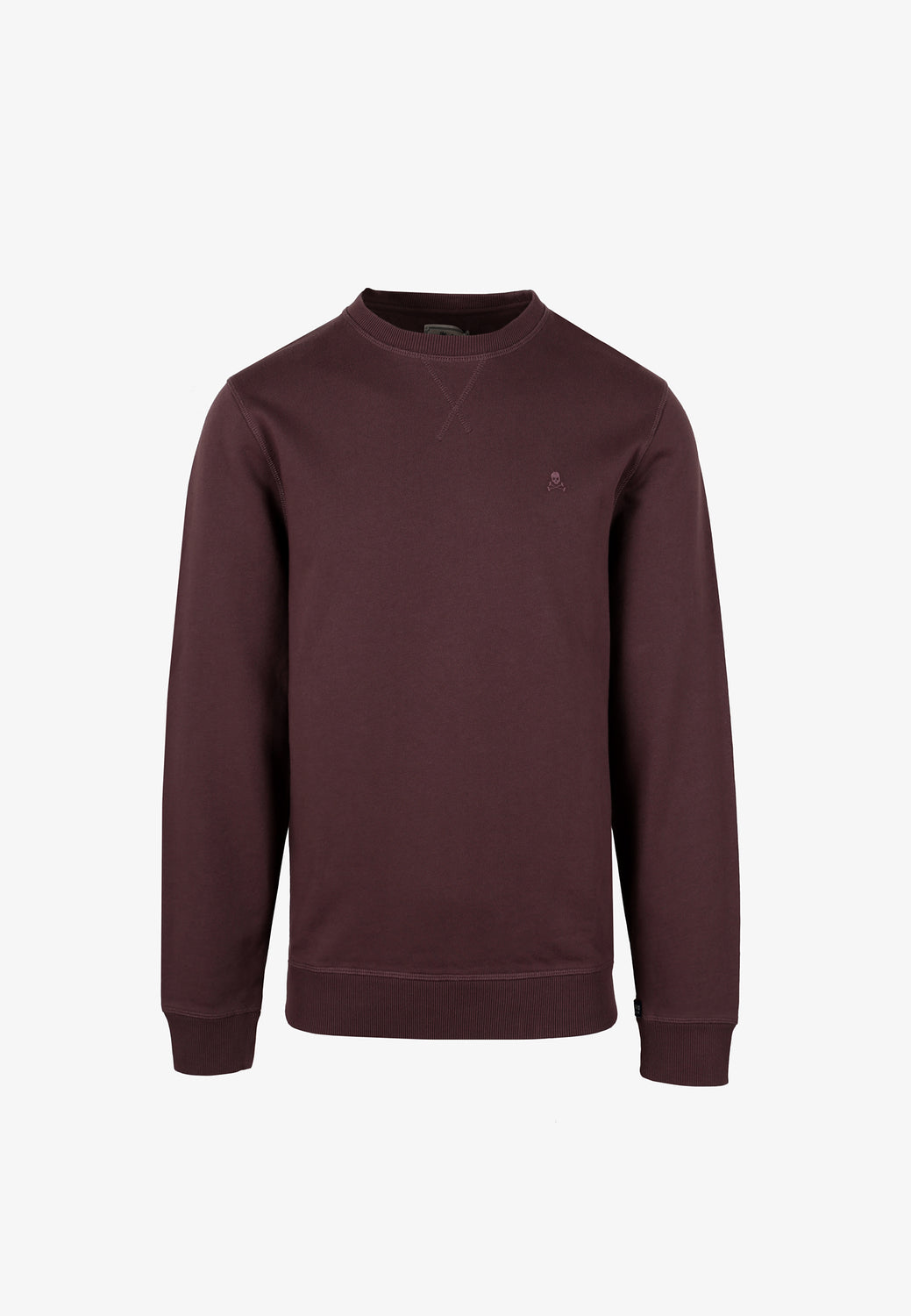 Sudadera confeccionada en tejido 100% algodón orgánico con lavado stone wash. Corte Regular Fit, cuello redondo y manga larga terminada en rib. Detalle de cosido en cruz en el cuello, etiqueta decorativa en puño y calavera bordada a tono en el pecho.