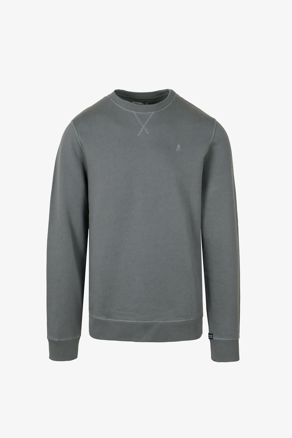 Sudadera confeccionada en tejido 100% algodón orgánico con lavado stone wash. Corte Regular Fit, cuello redondo y manga larga terminada en rib. Detalle de cosido en cruz en el cuello, etiqueta decorativa en puño y calavera bordada a tono en el pecho.