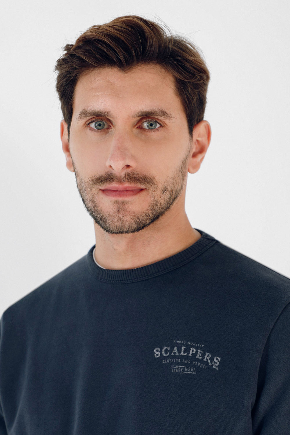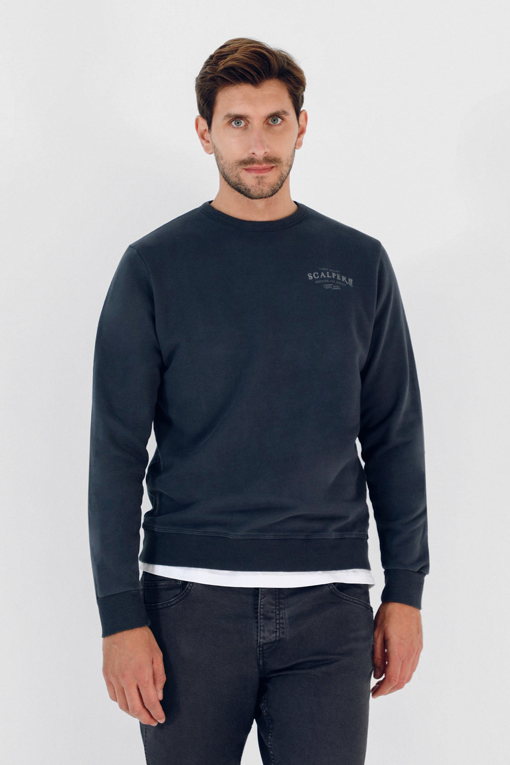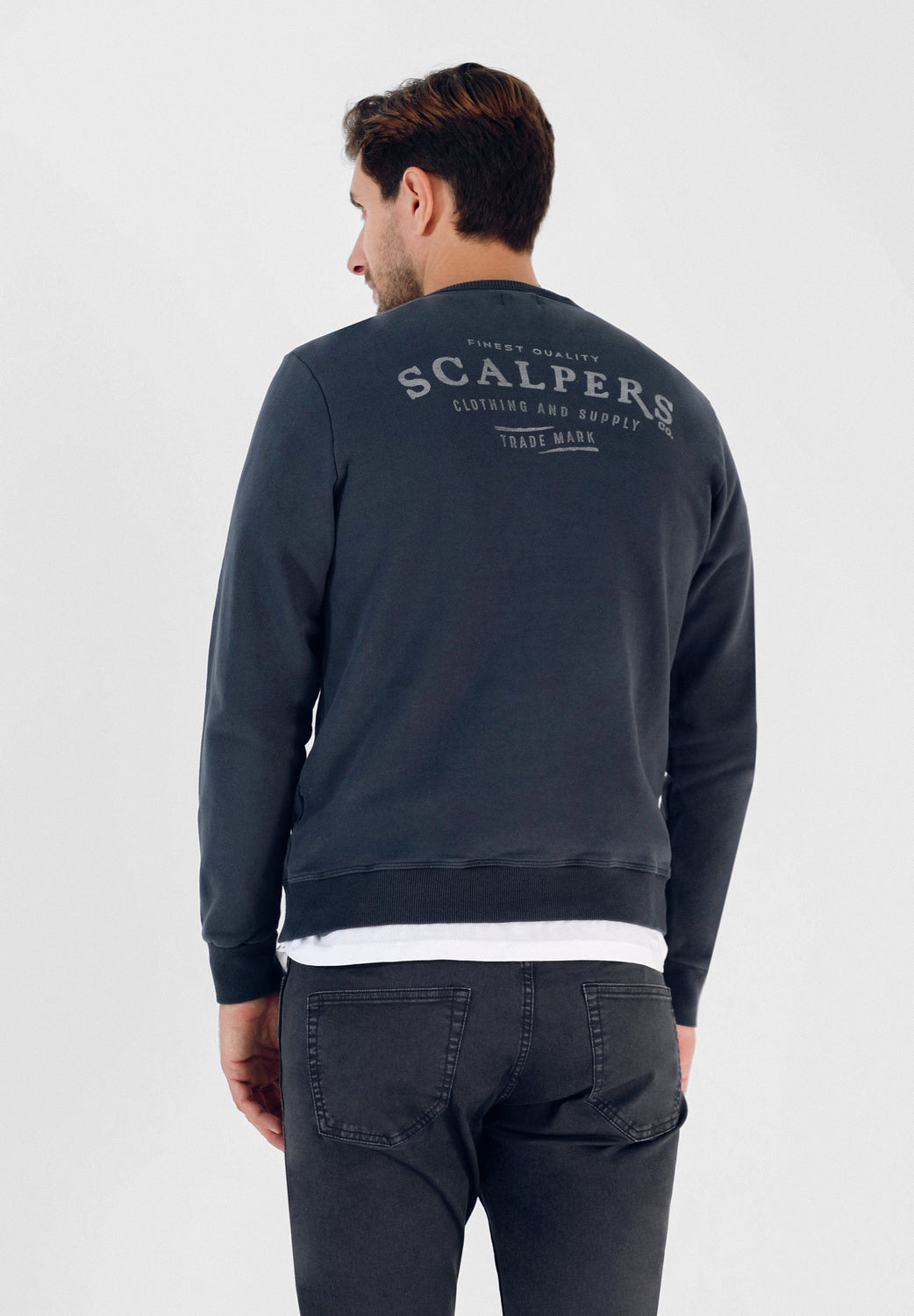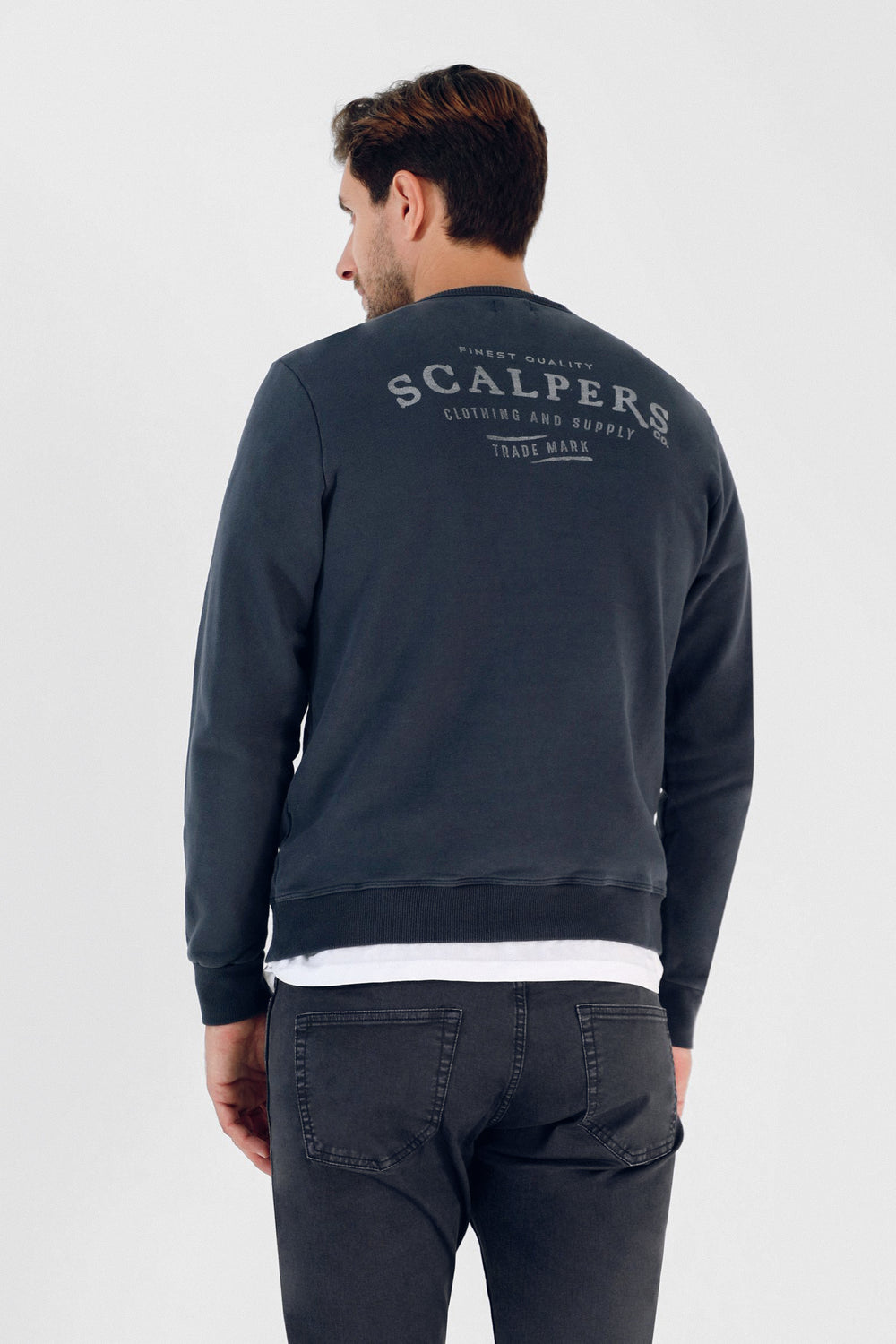 Sudadera con print desgastado trasero y frontal confeccionado en 100% algodón orgánico. Corte Regular Fit, cuello redondo y manga larga.