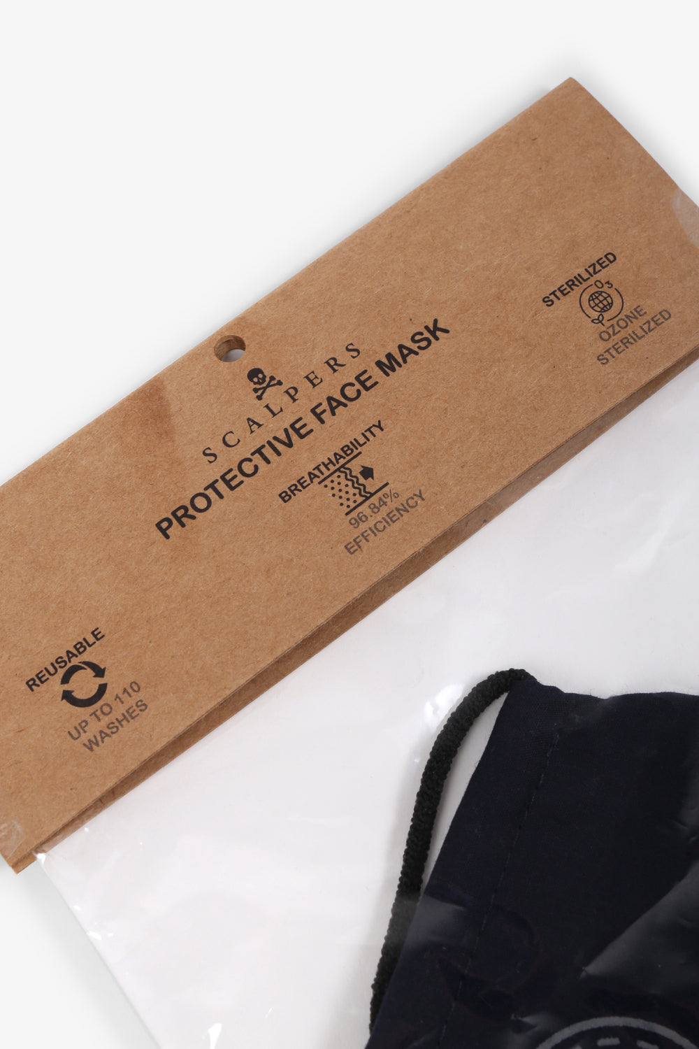 Mascarilla de Scalpers homologada confeccionada en tejido de poliéster y algodón impermeable.