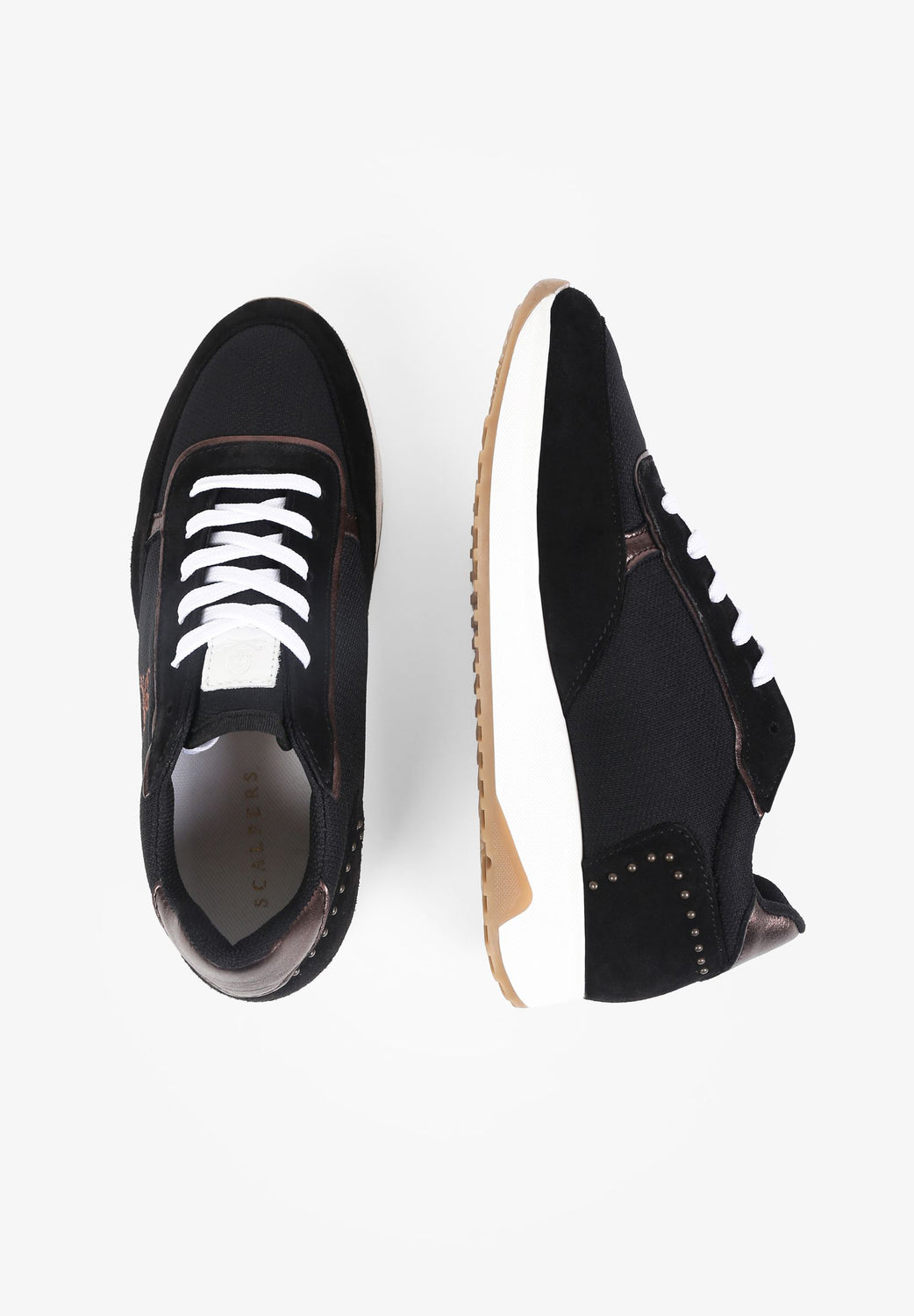 Sneakers confeccionadas en piel de vacuno. Cierre con cordones a tono, puntera en plata y detalles en serraje.