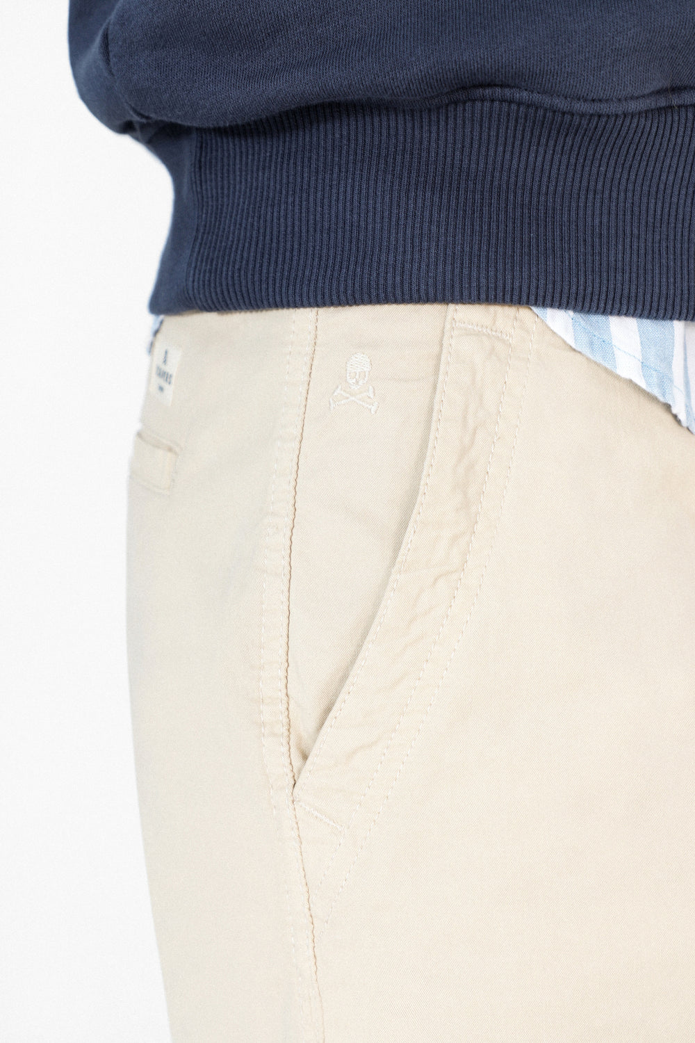 Bermudas confeccionadas en tejido 100% algodón. Corte Regular Fit y cierre con botones. Tiene bolsillos laterales y bolsillos traseros. Tiene trabillas.
