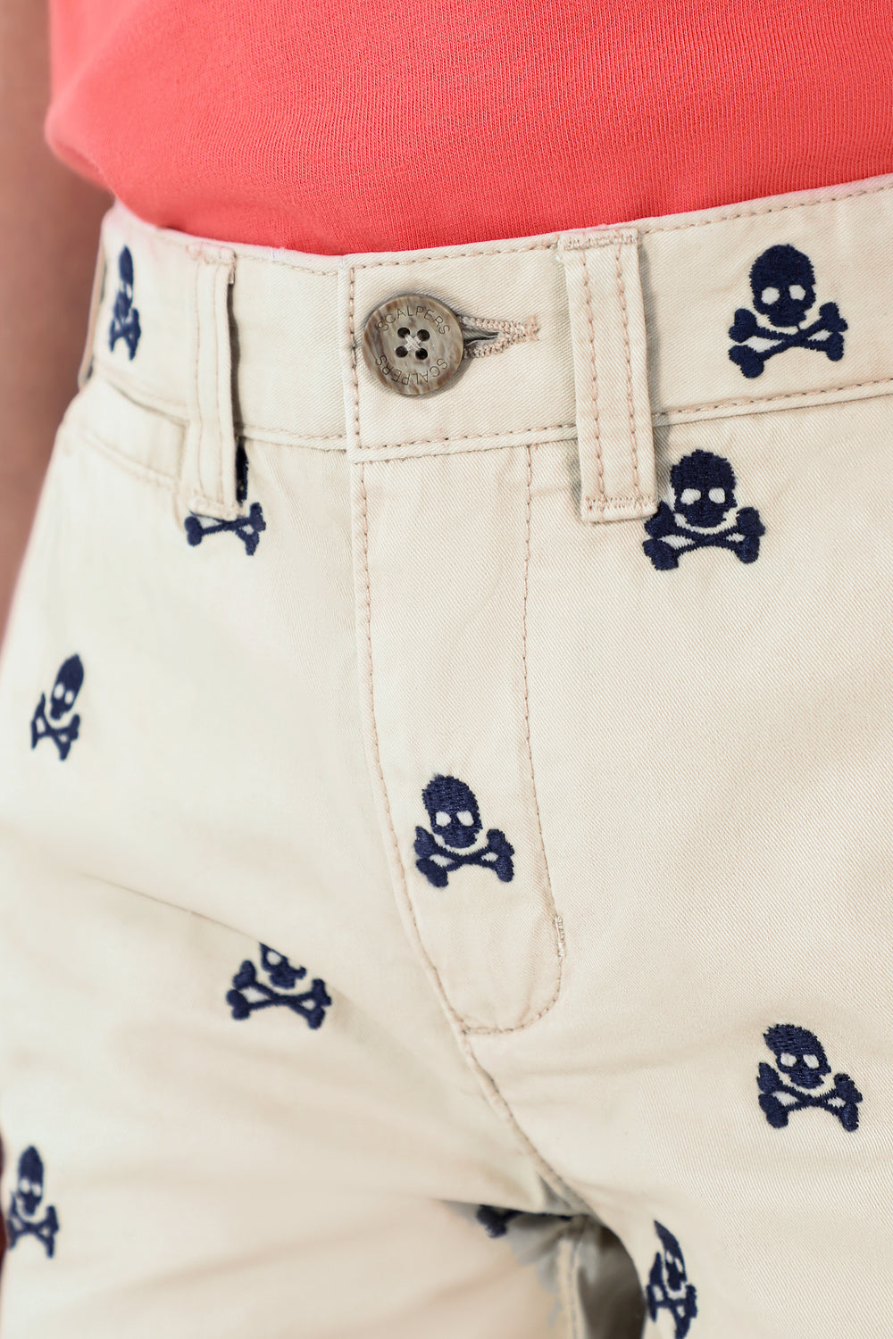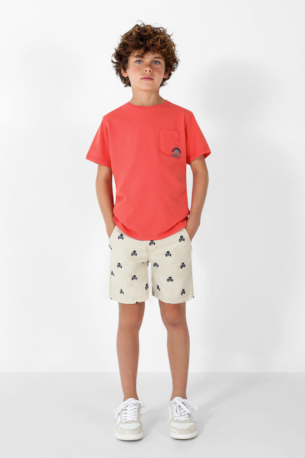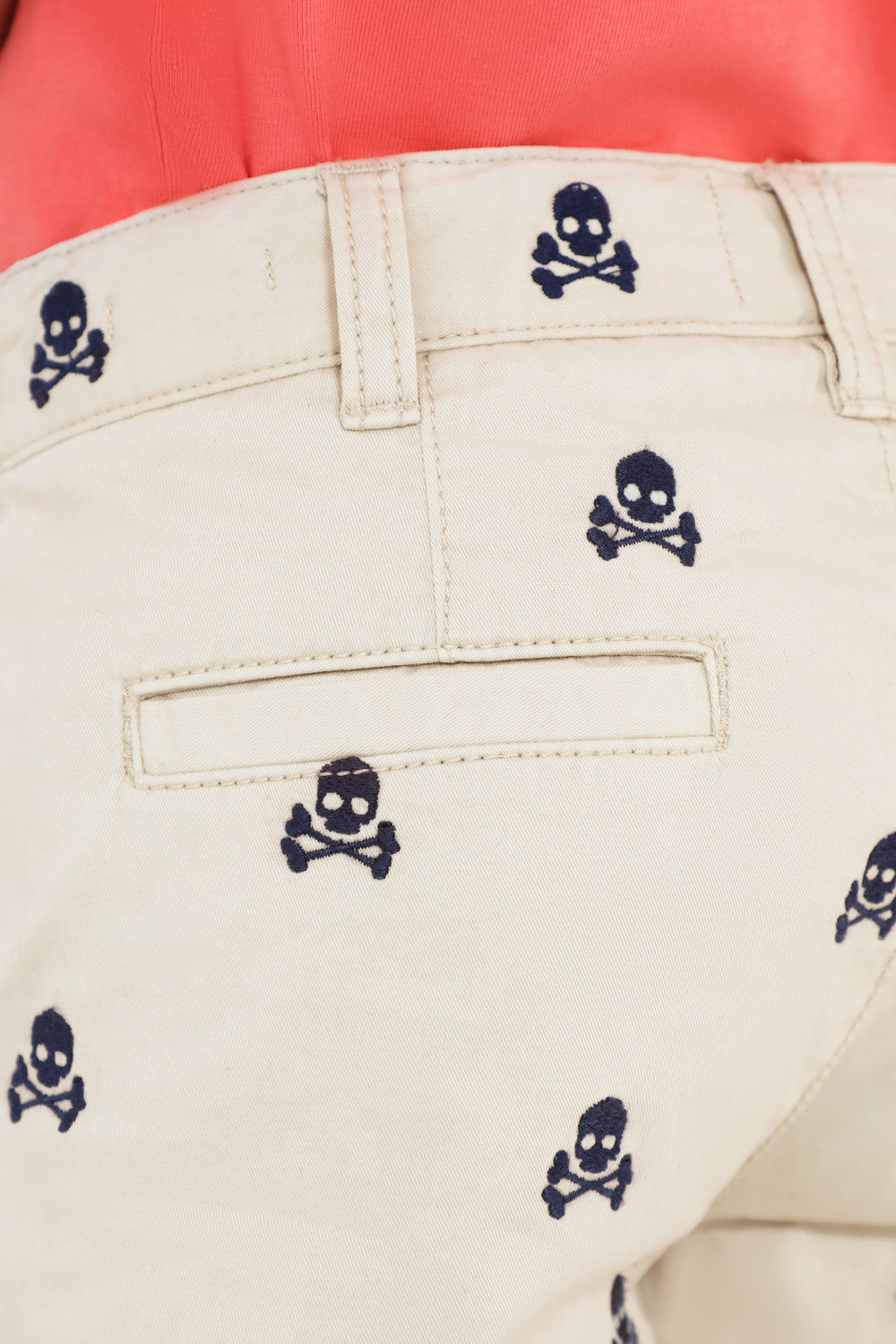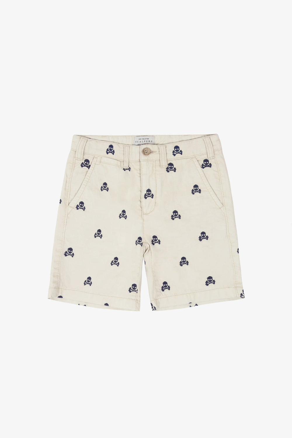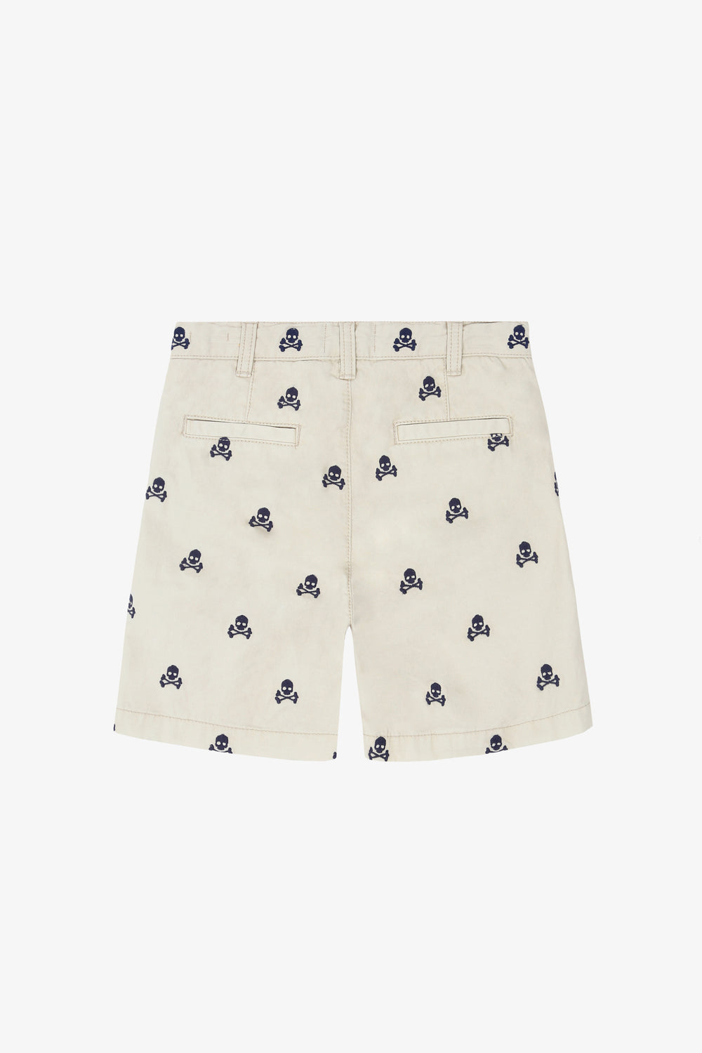 Bermudas con calaveras all over confeccionadas en tejido 100% algodón. Corte Regular Fit, cierre con botón y cremallera y bolsillos laterales. Tiene trabillas.