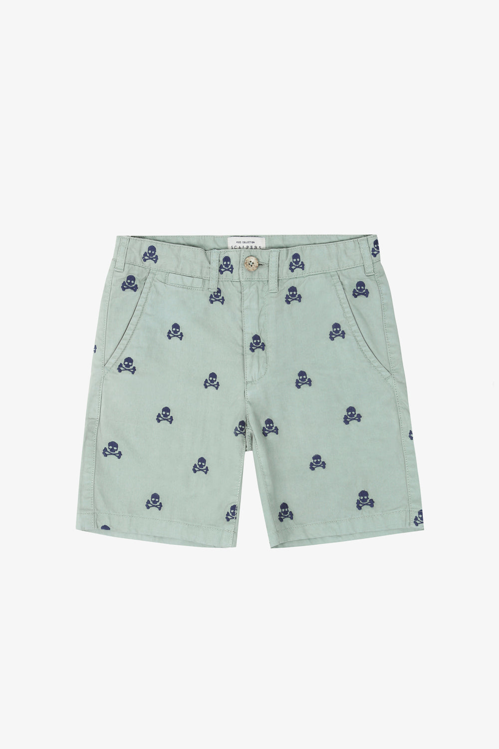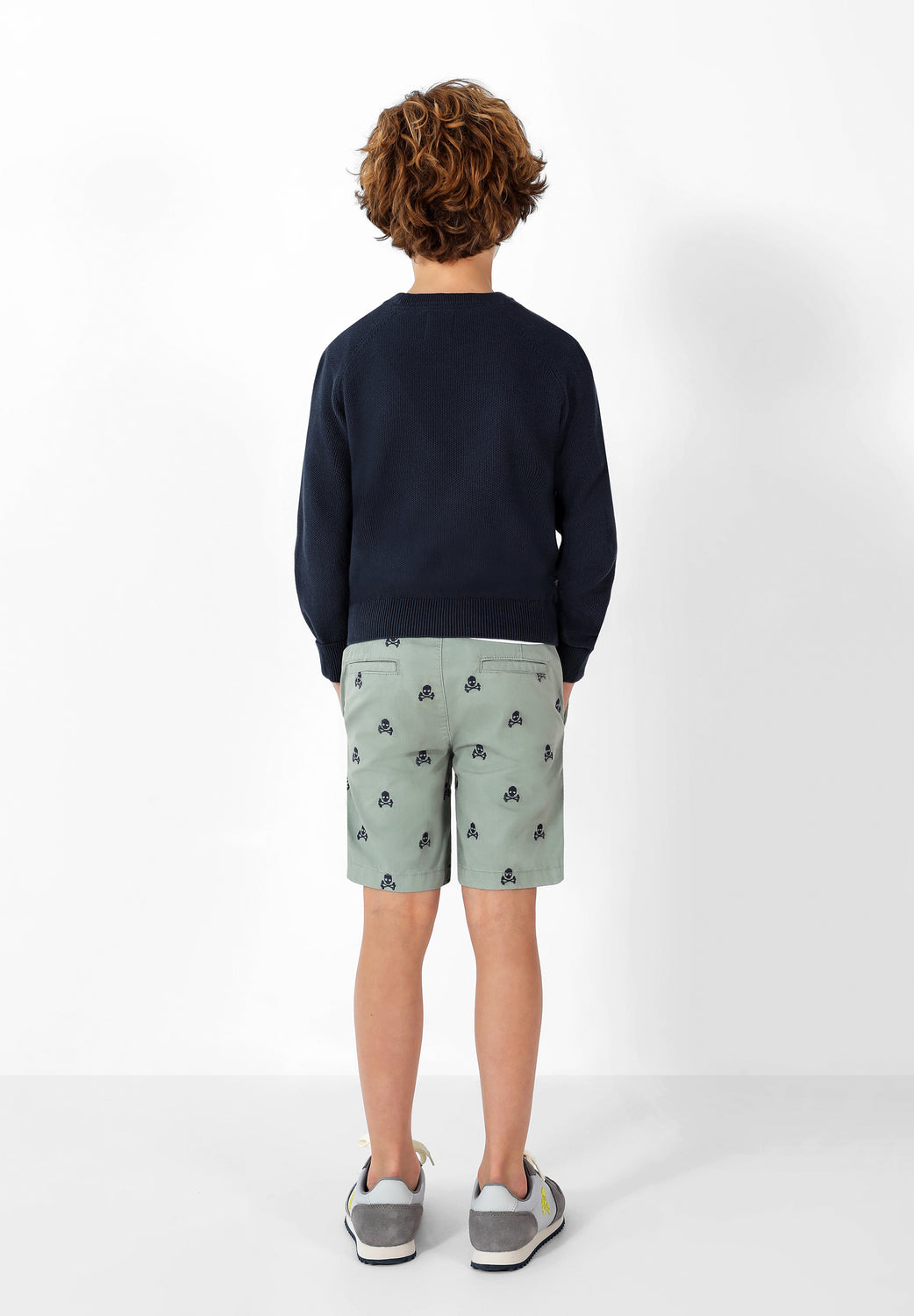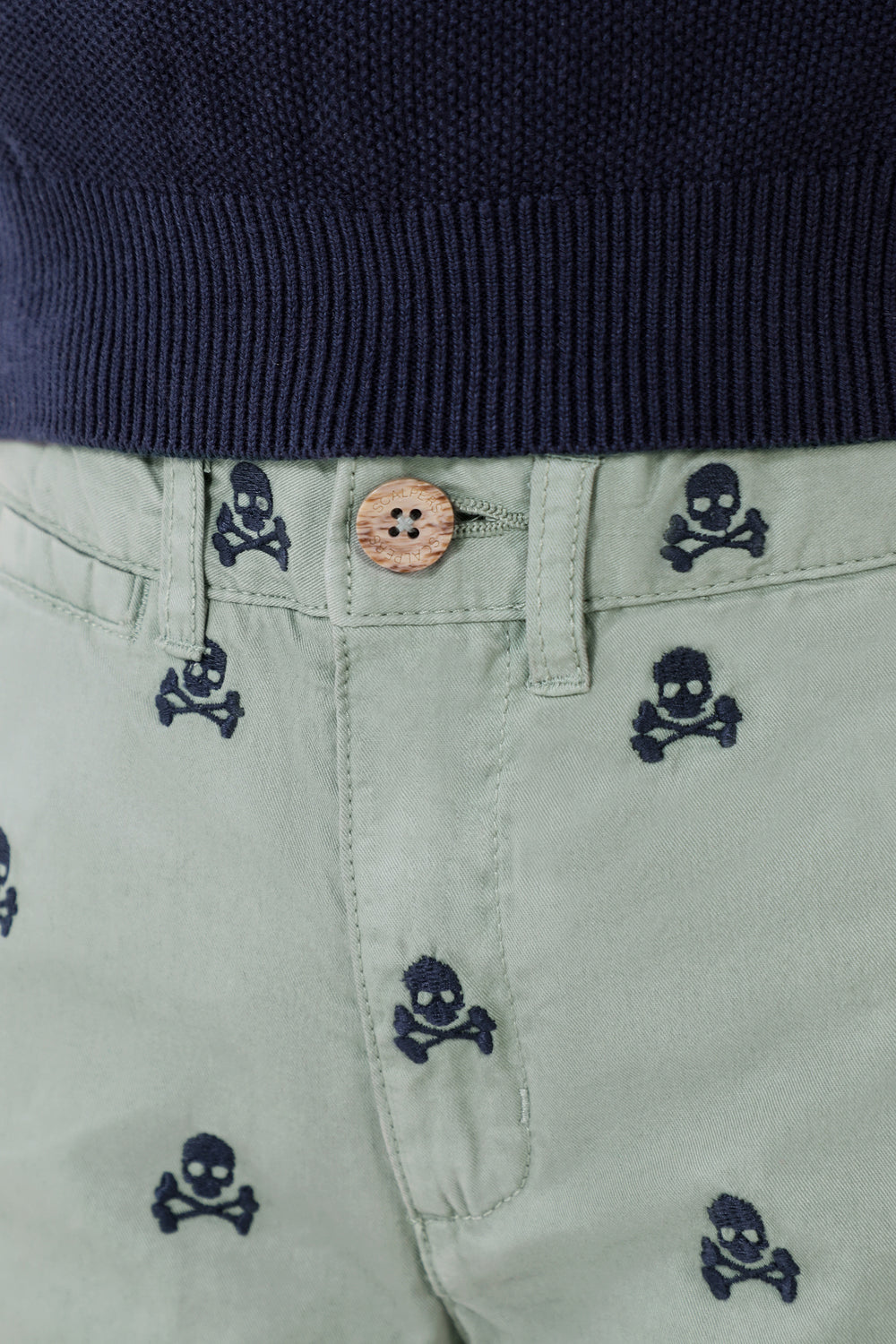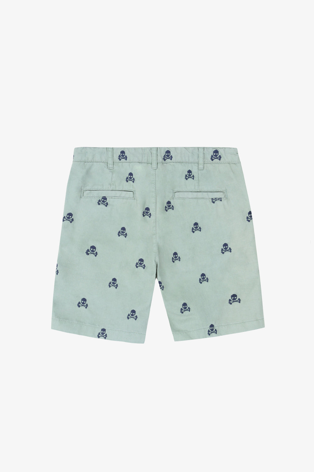 Bermudas con calaveras all over confeccionadas en tejido 100% algodón. Corte Regular Fit, cierre con botón y cremallera y bolsillos laterales. Tiene trabillas.