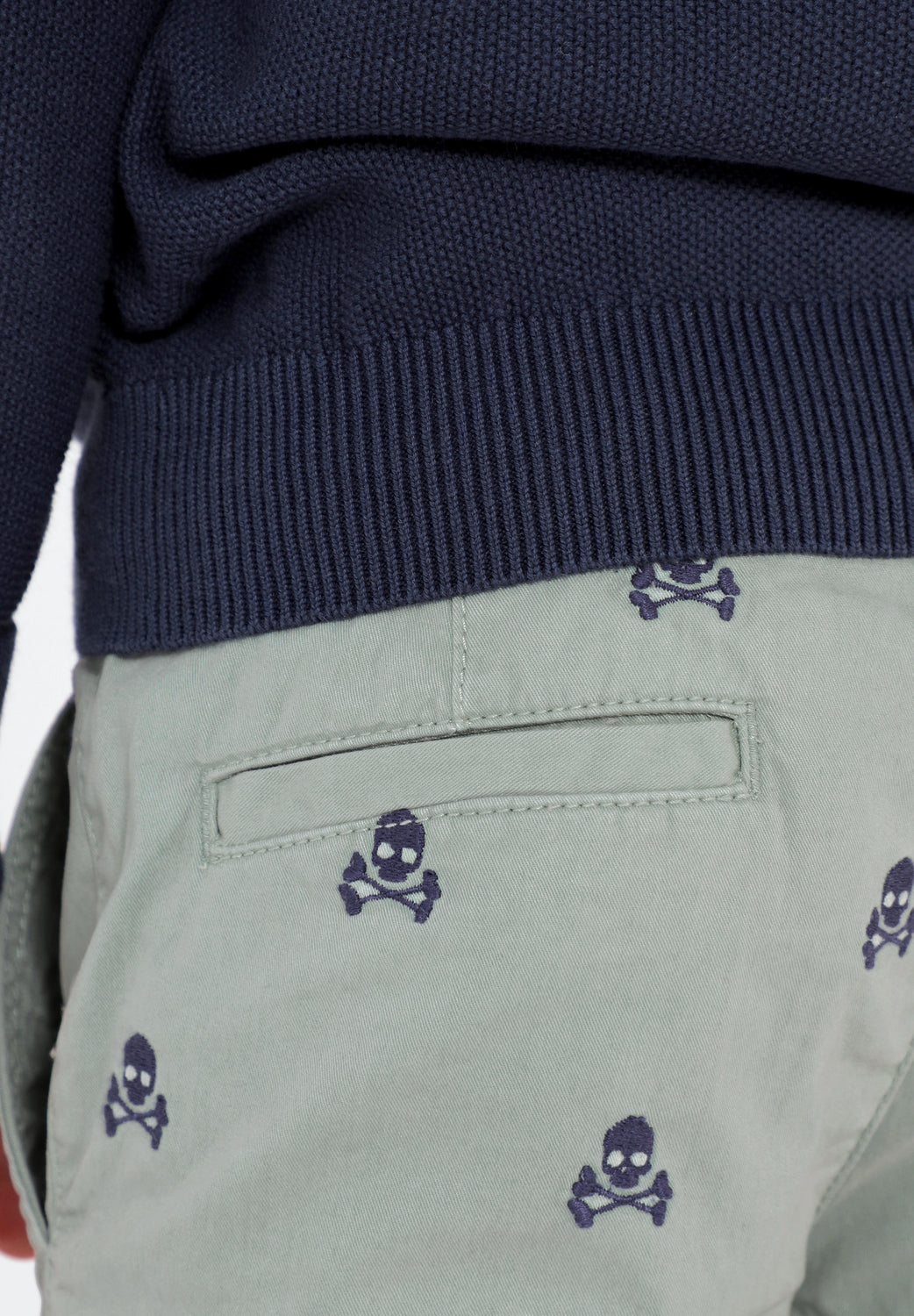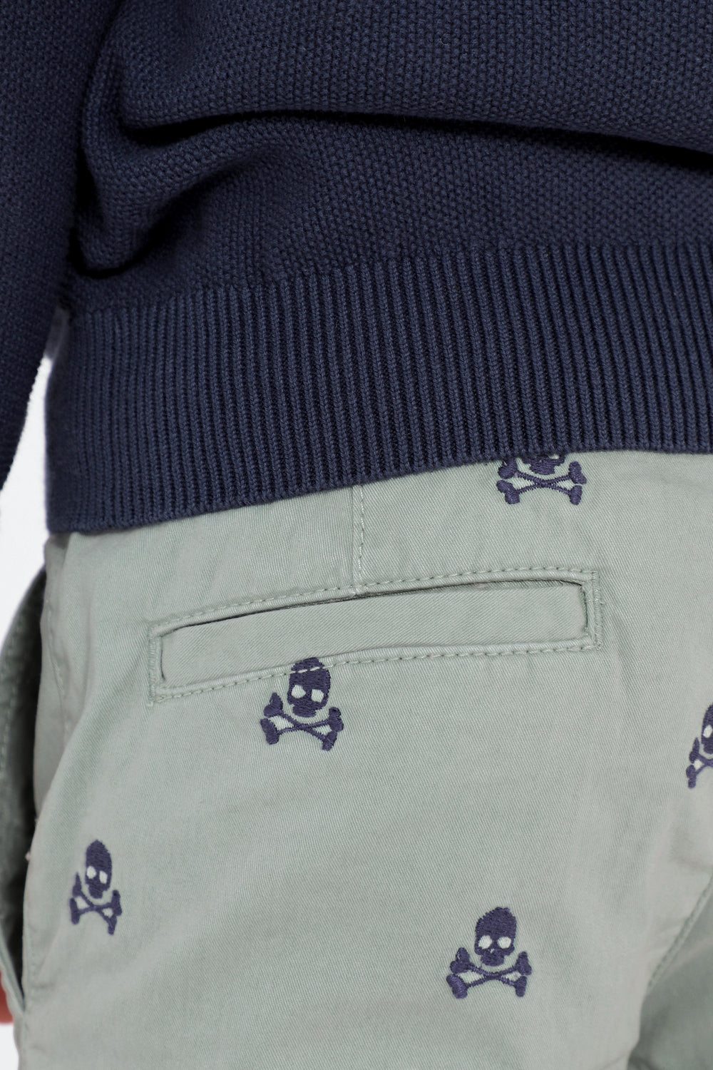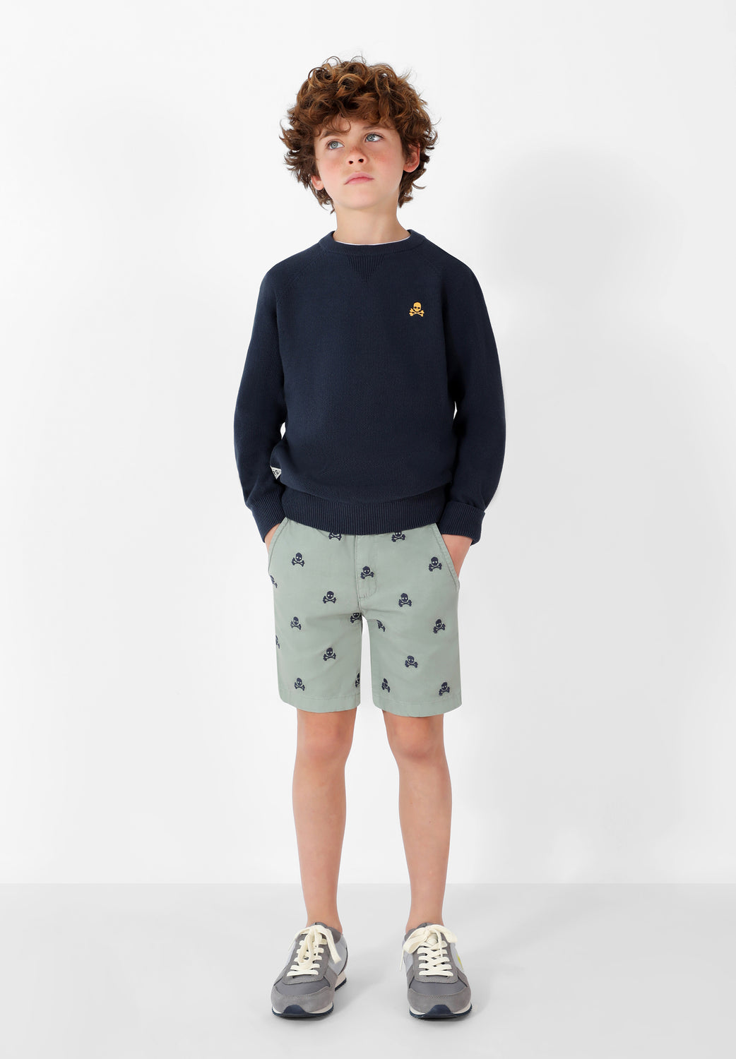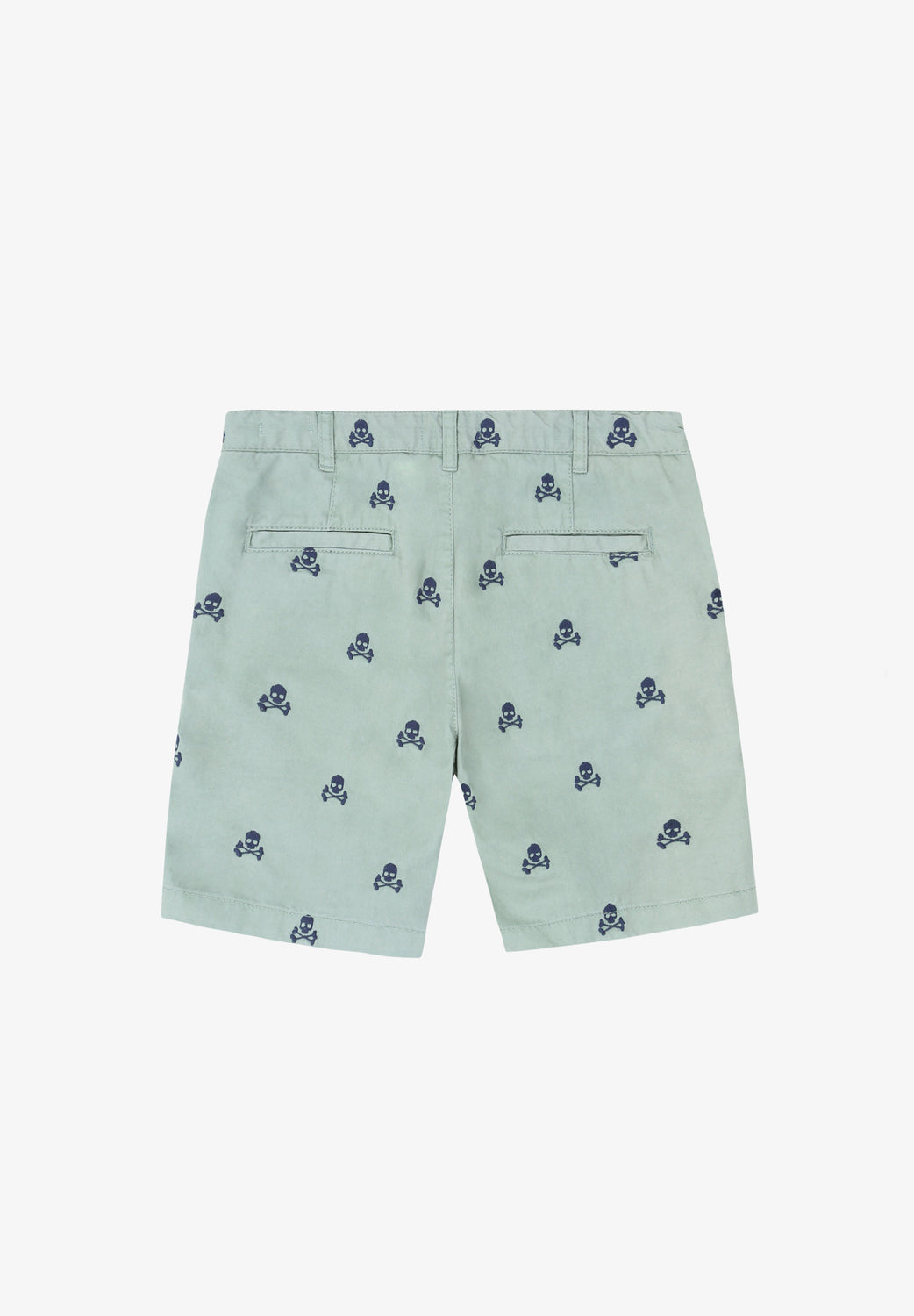 Bermudas con calaveras all over confeccionadas en tejido 100% algodón. Corte Regular Fit, cierre con botón y cremallera y bolsillos laterales. Tiene trabillas.