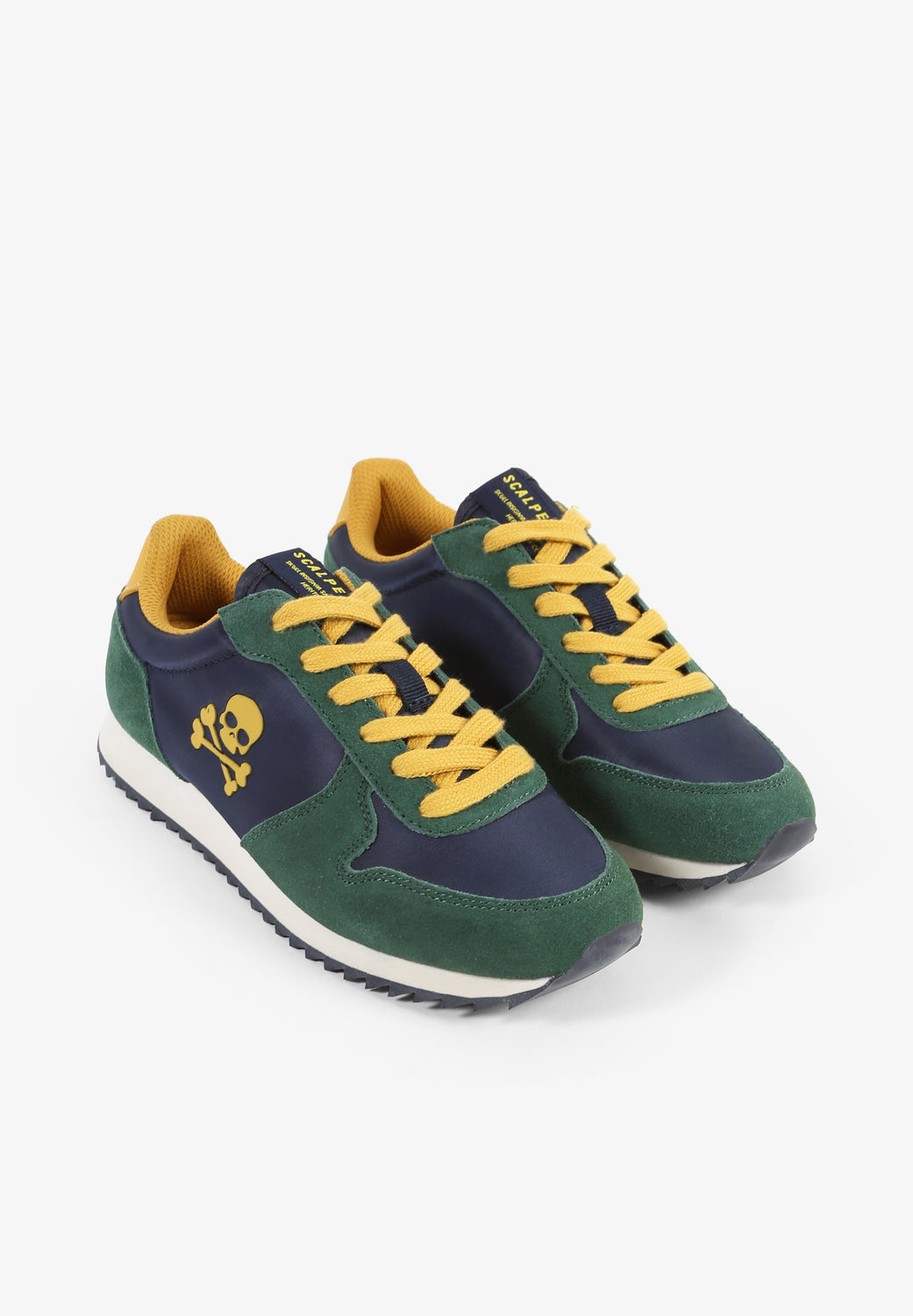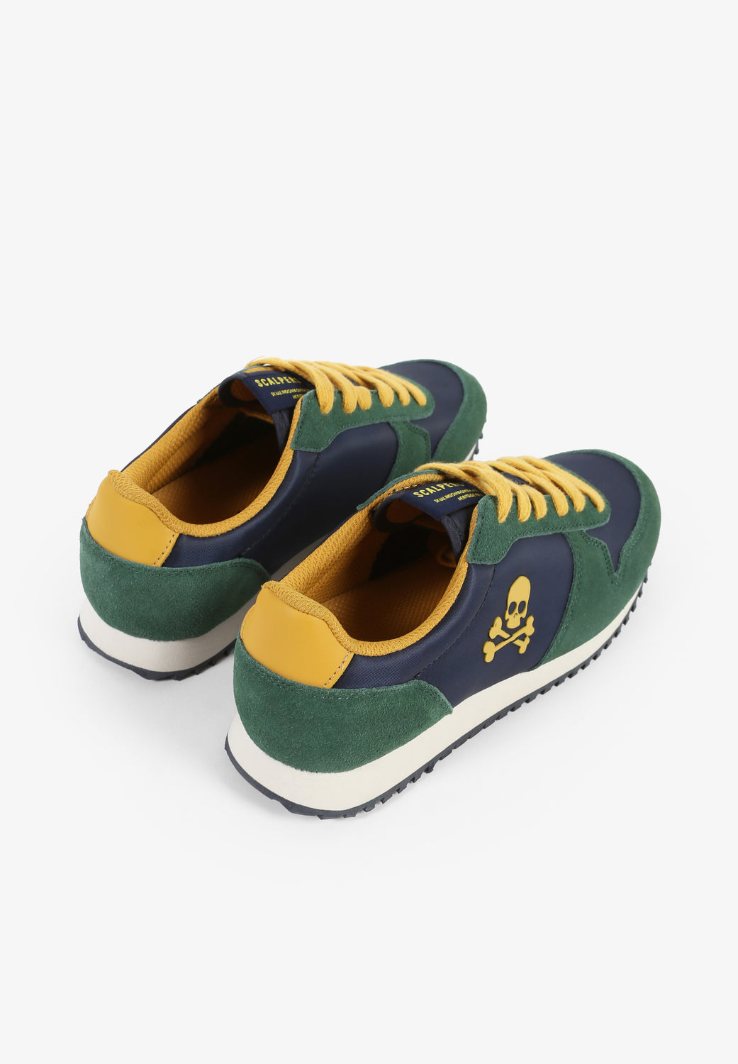 Zapatillas deportivas confeccionadas en tejido de nylon y serraje. Cierre con cordones a contraste y suela dentada con eva. Detalle de calavera con print de alta densidad en el lateral.