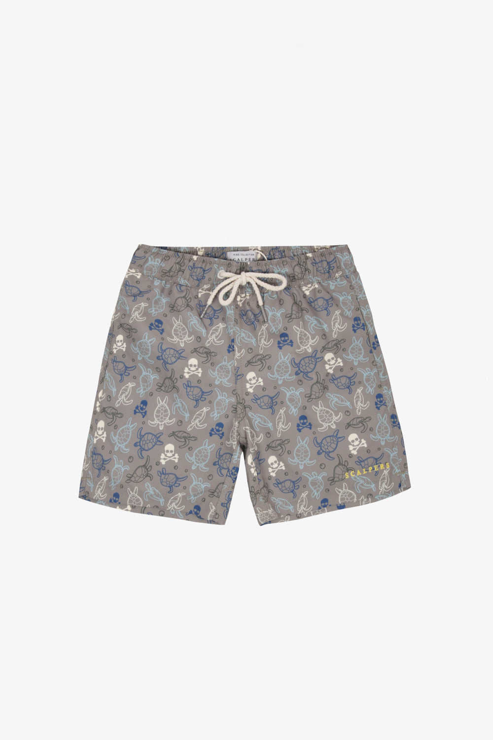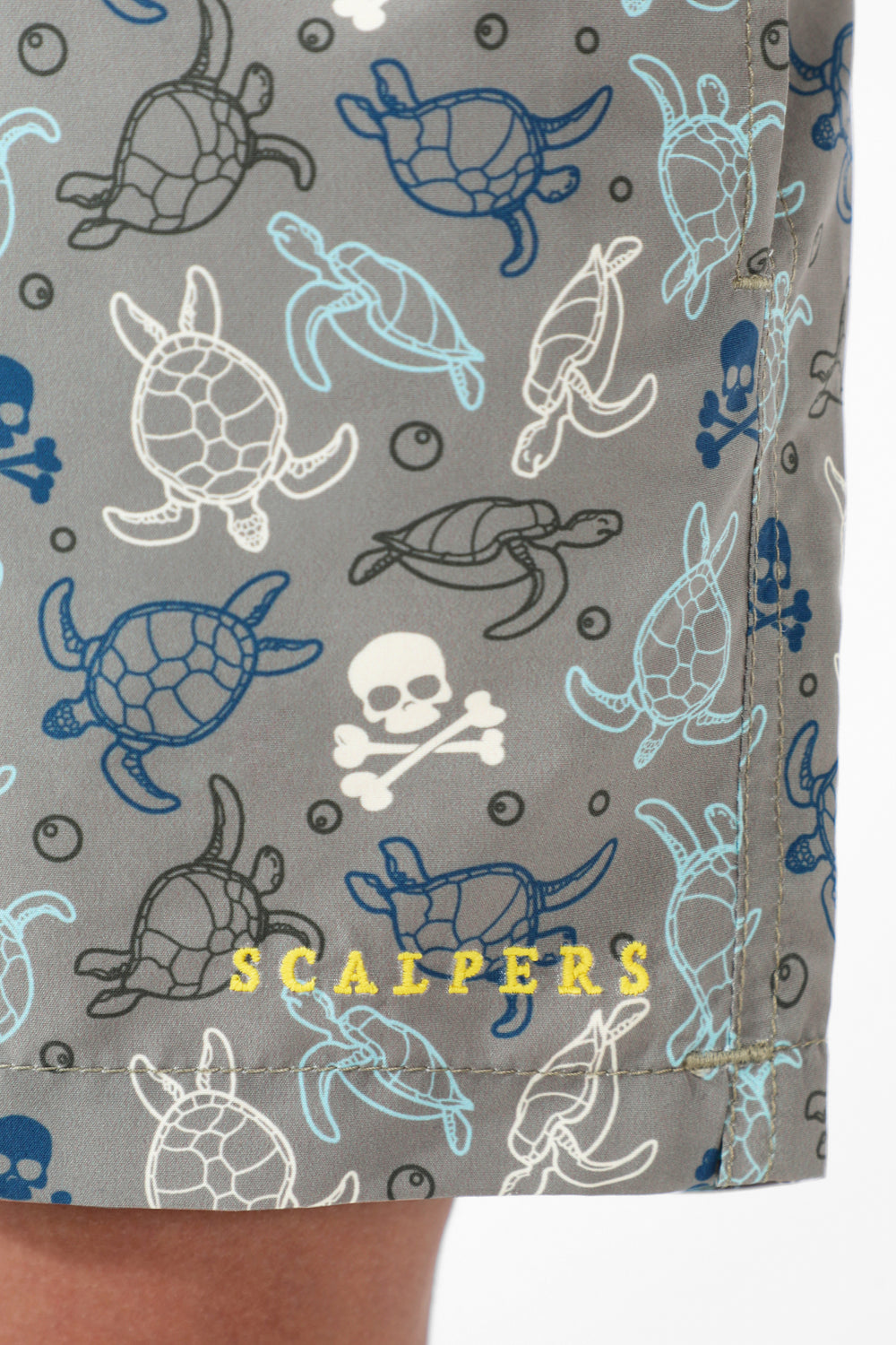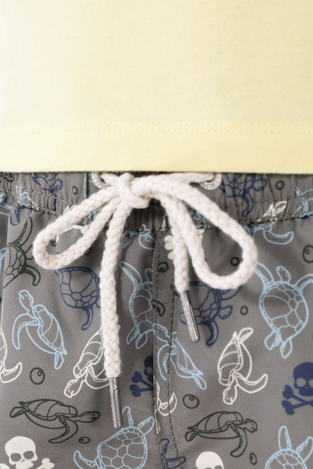 Bañador con estampado de tortugas y calaveras. Corte Regular Fit, cierre con cordón y cinturilla elástica y bolsillos. Logo en el bajo.