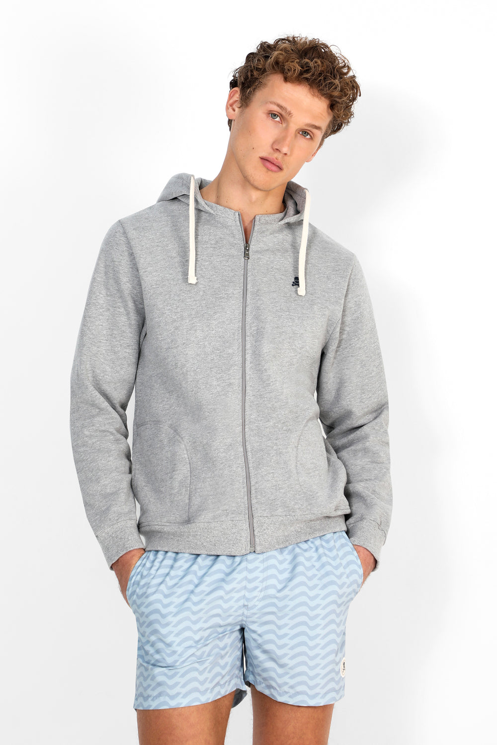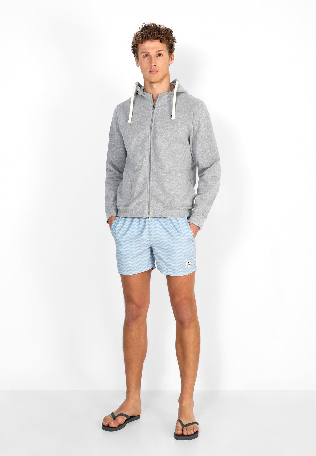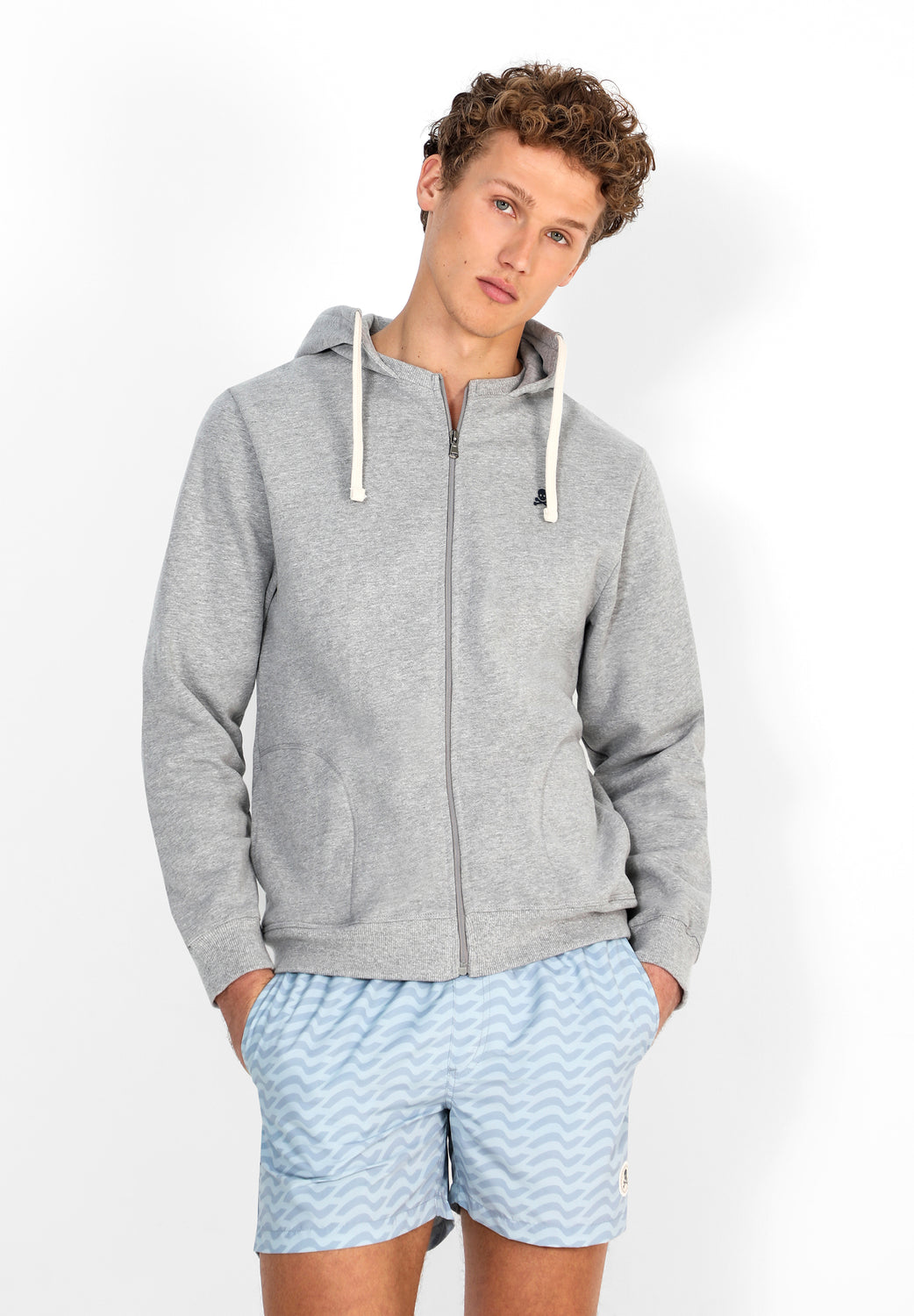 Bañador con estampado de ondas confeccionado en tejido de poliéster. Corte Regular Fit, cierre con cordón y velcro. Detalle de calavera engomada en el bajo y bolsillos laterales y trasero.