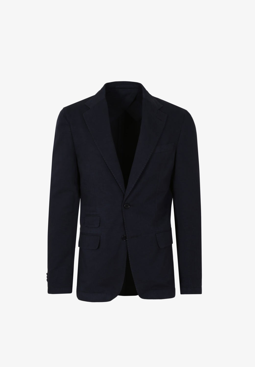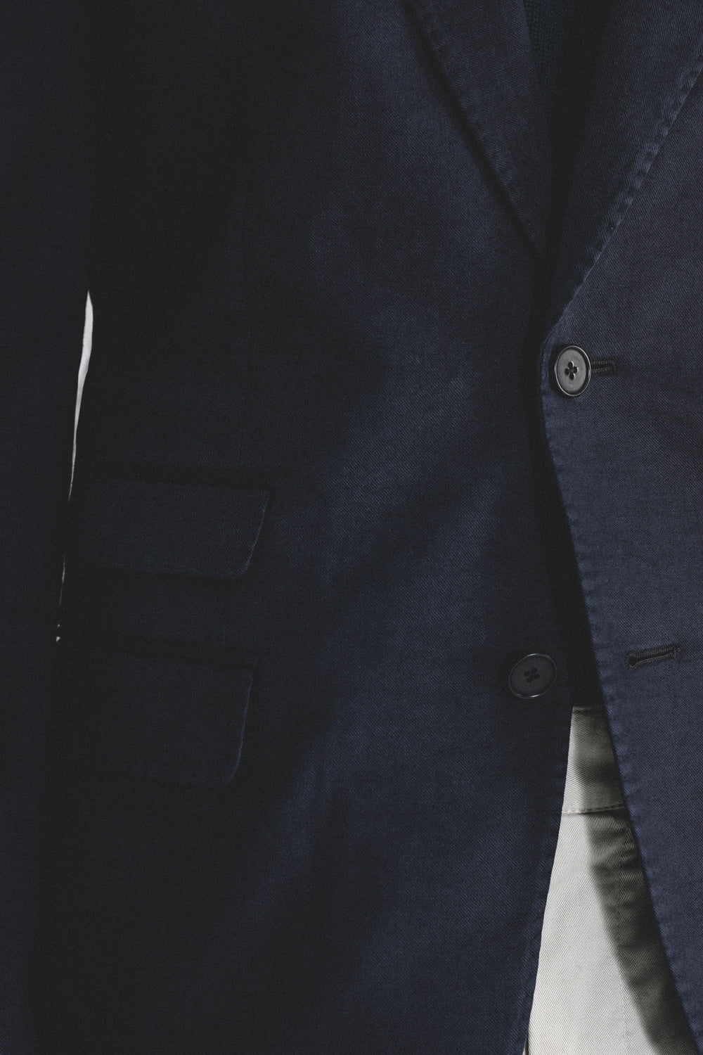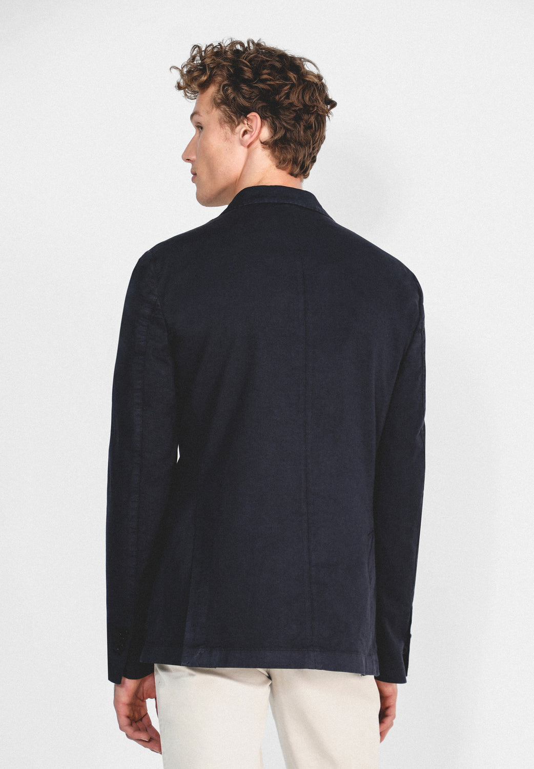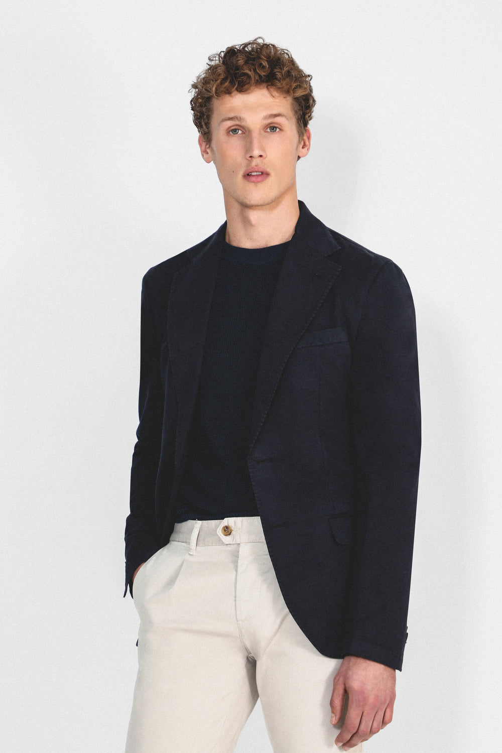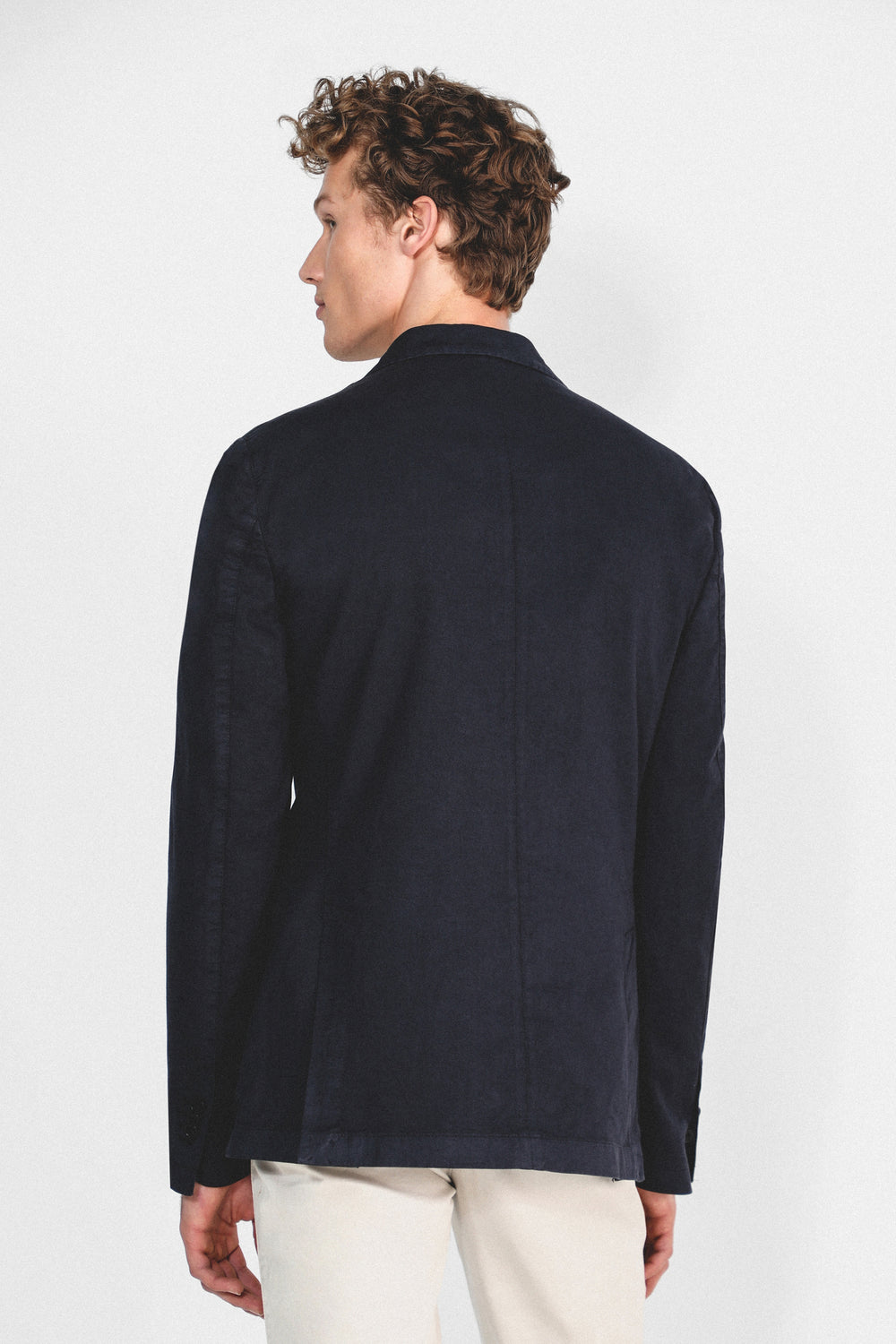 Americana confeccionada en mezcla de algodón y lino. Corte Regular Fit, cuello con solapas de muesca y cierre con botones. Manga larga terminada en puño con botones y bolsillo de plastrón en el pecho e insertados con tapeta.