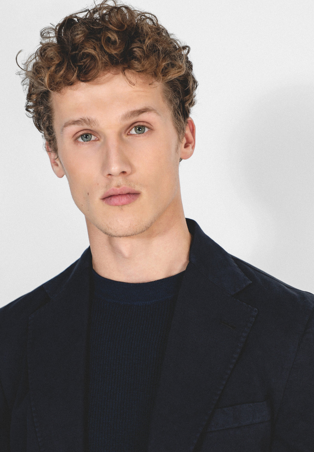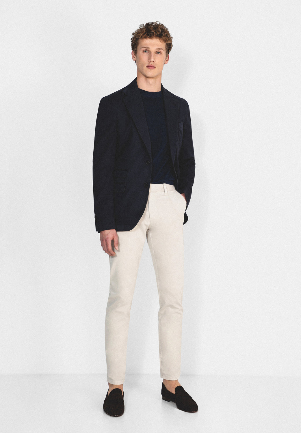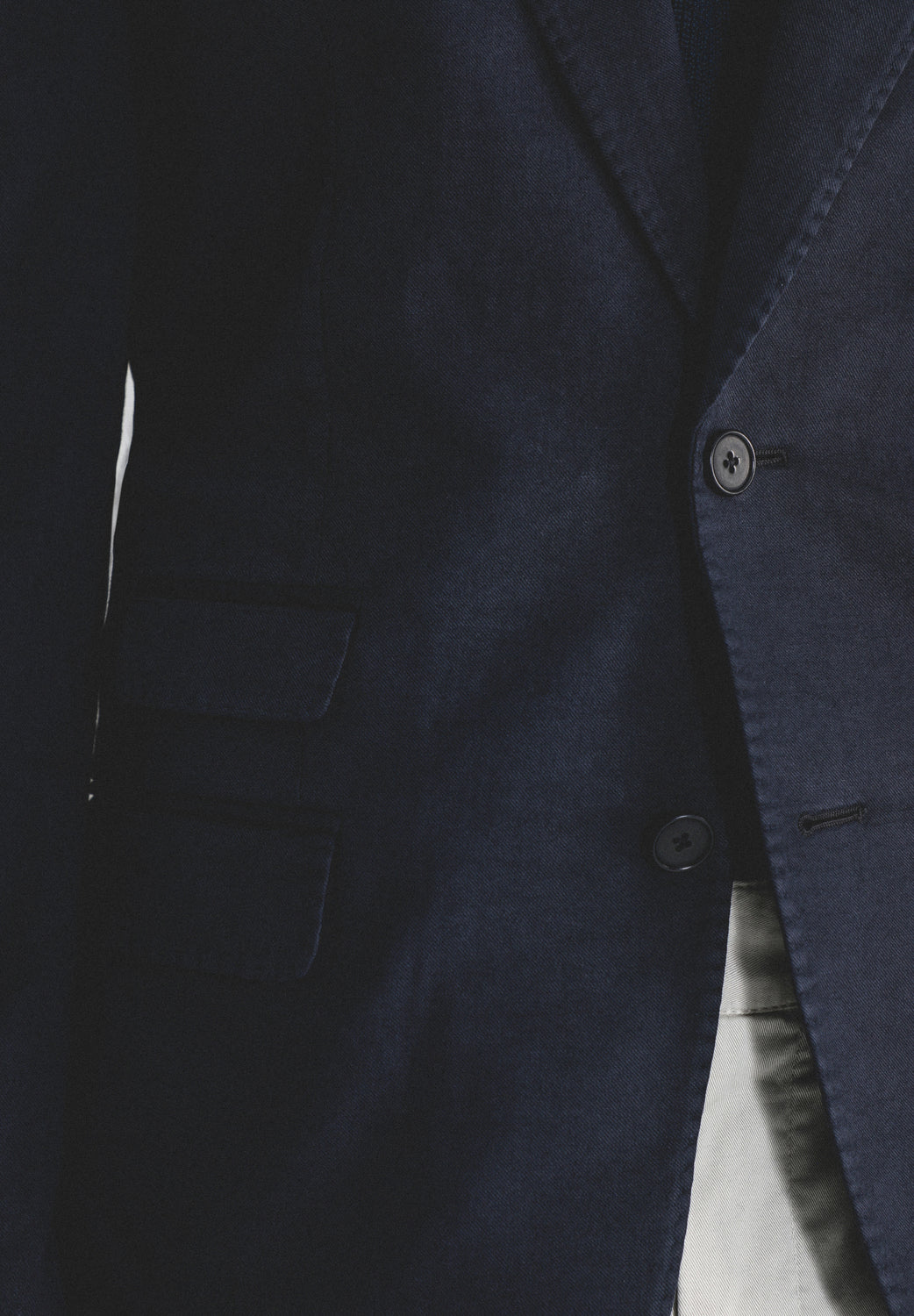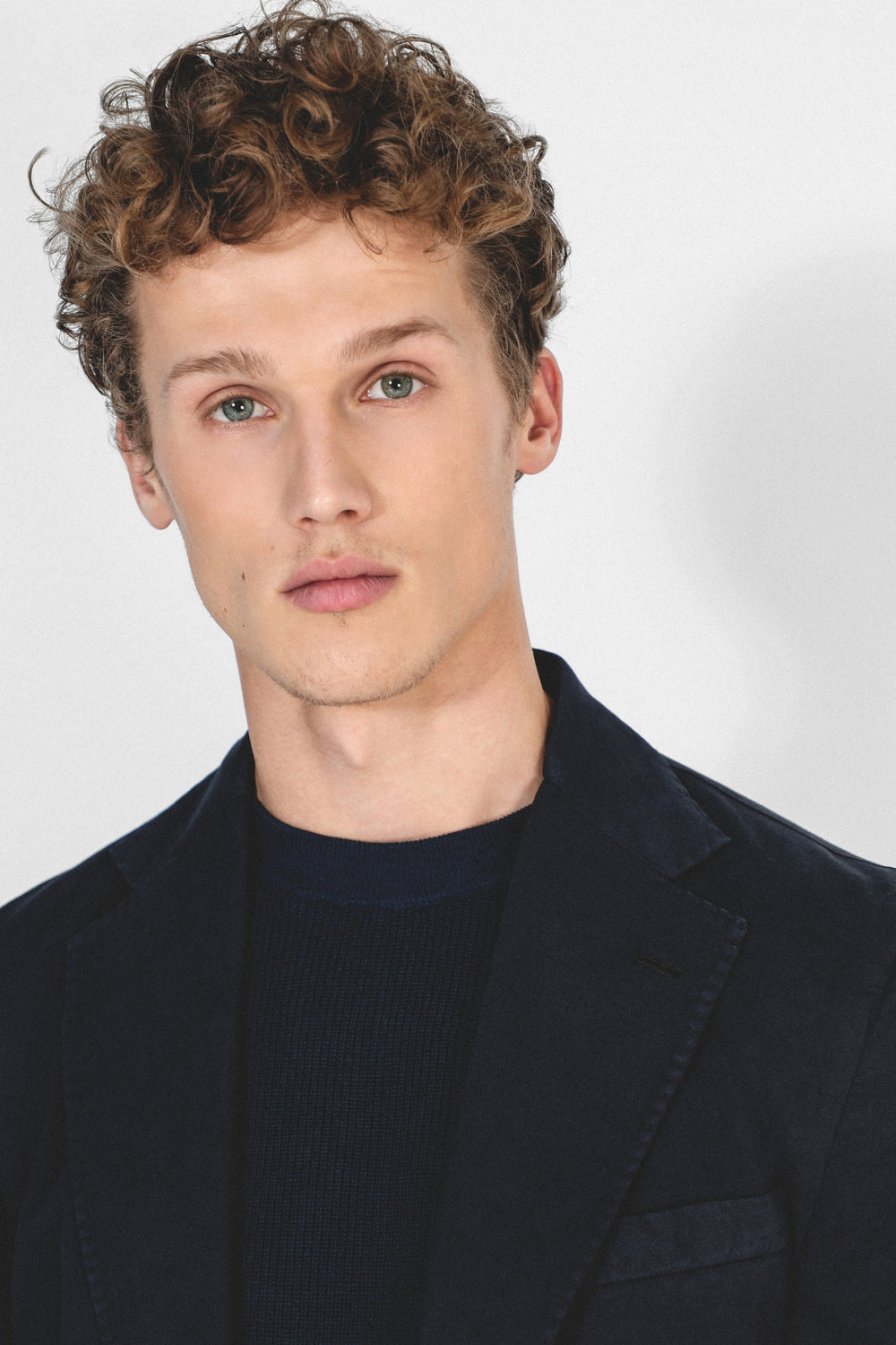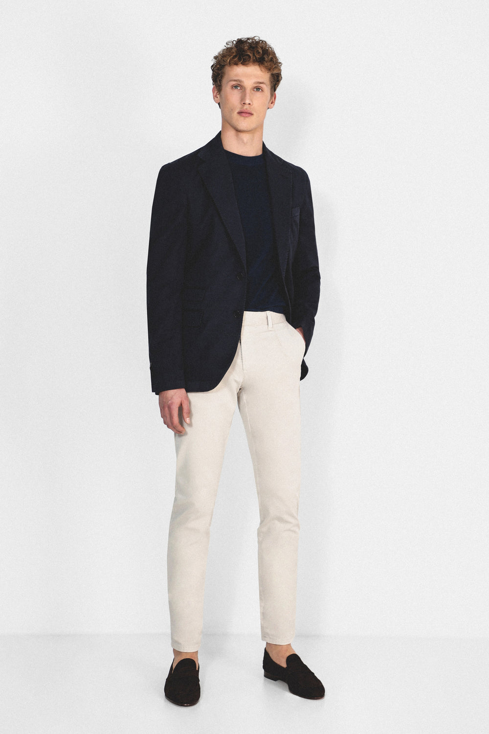 Americana confeccionada en mezcla de algodón y lino. Corte Regular Fit, cuello con solapas de muesca y cierre con botones. Manga larga terminada en puño con botones y bolsillo de plastrón en el pecho e insertados con tapeta.