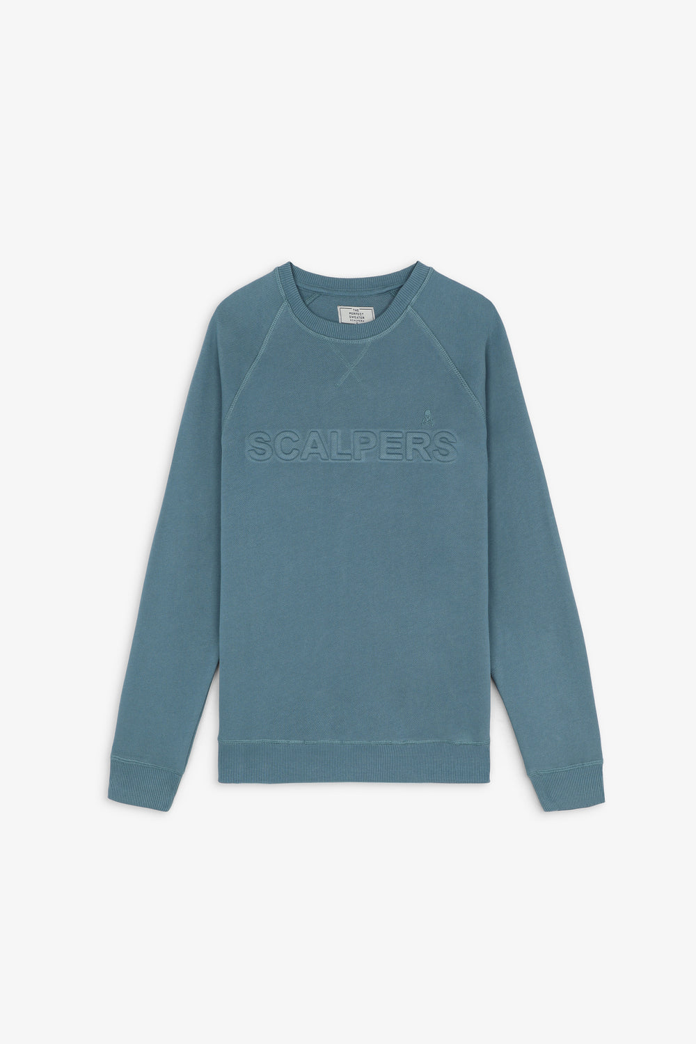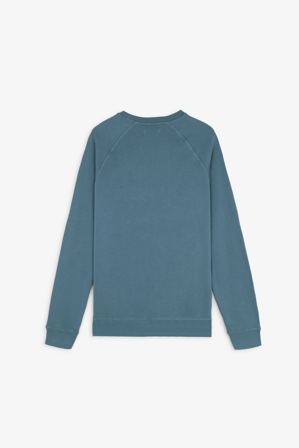 Sudadera confeccionada en tejido 100% algodón orgánico con lavado stone wash. Corte Regular Fit, cuello redondo y manga larga terminada en rib. Detalle de cosido en cruz en el cuello, etiqueta decorativa en puño y calavera bordada a tono en el pecho.