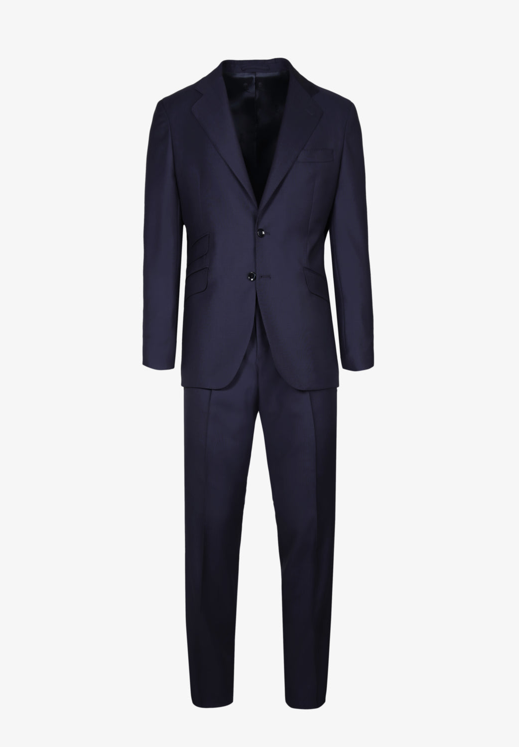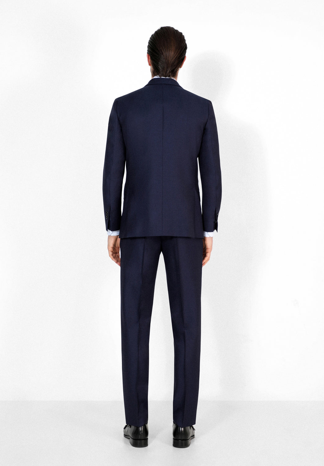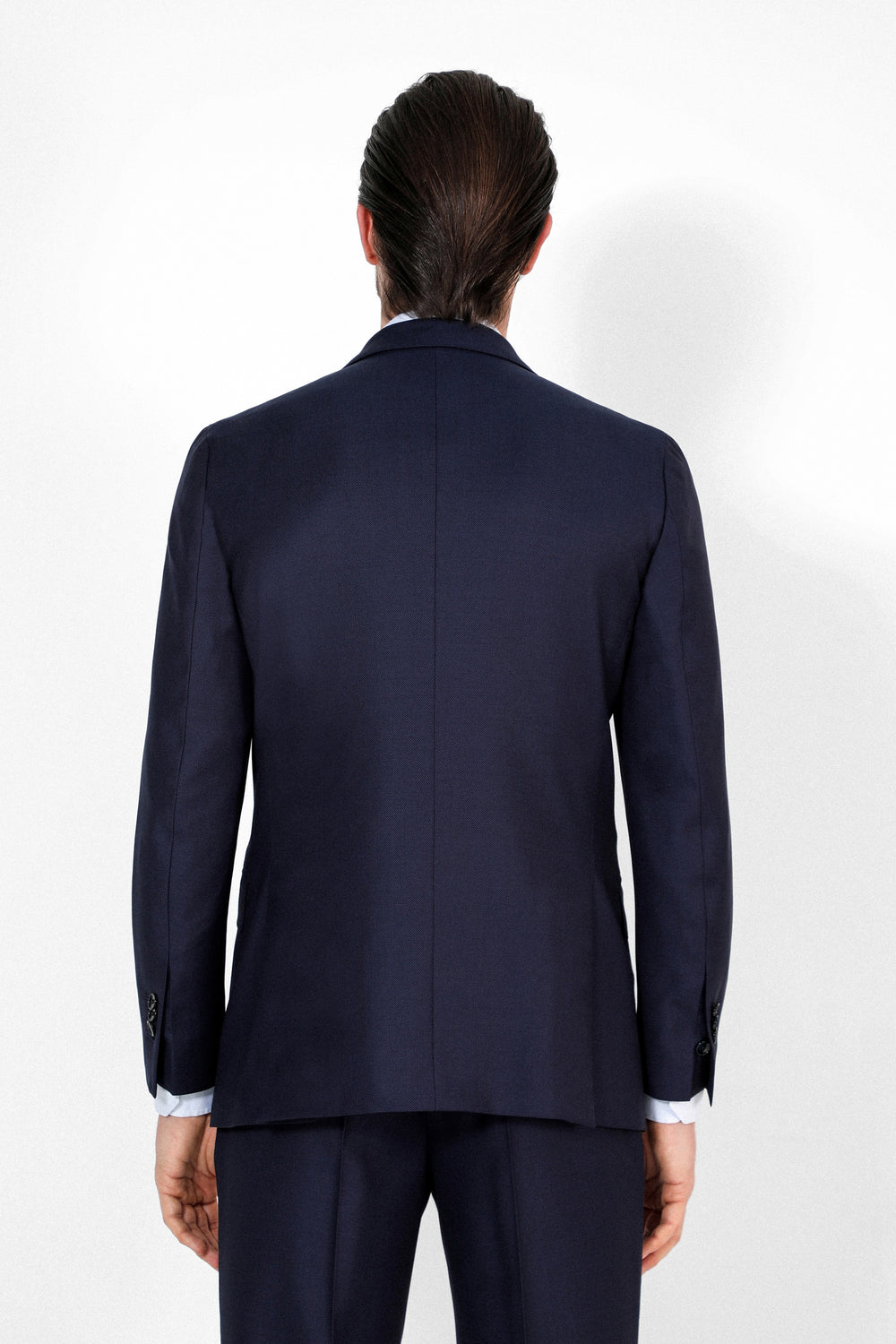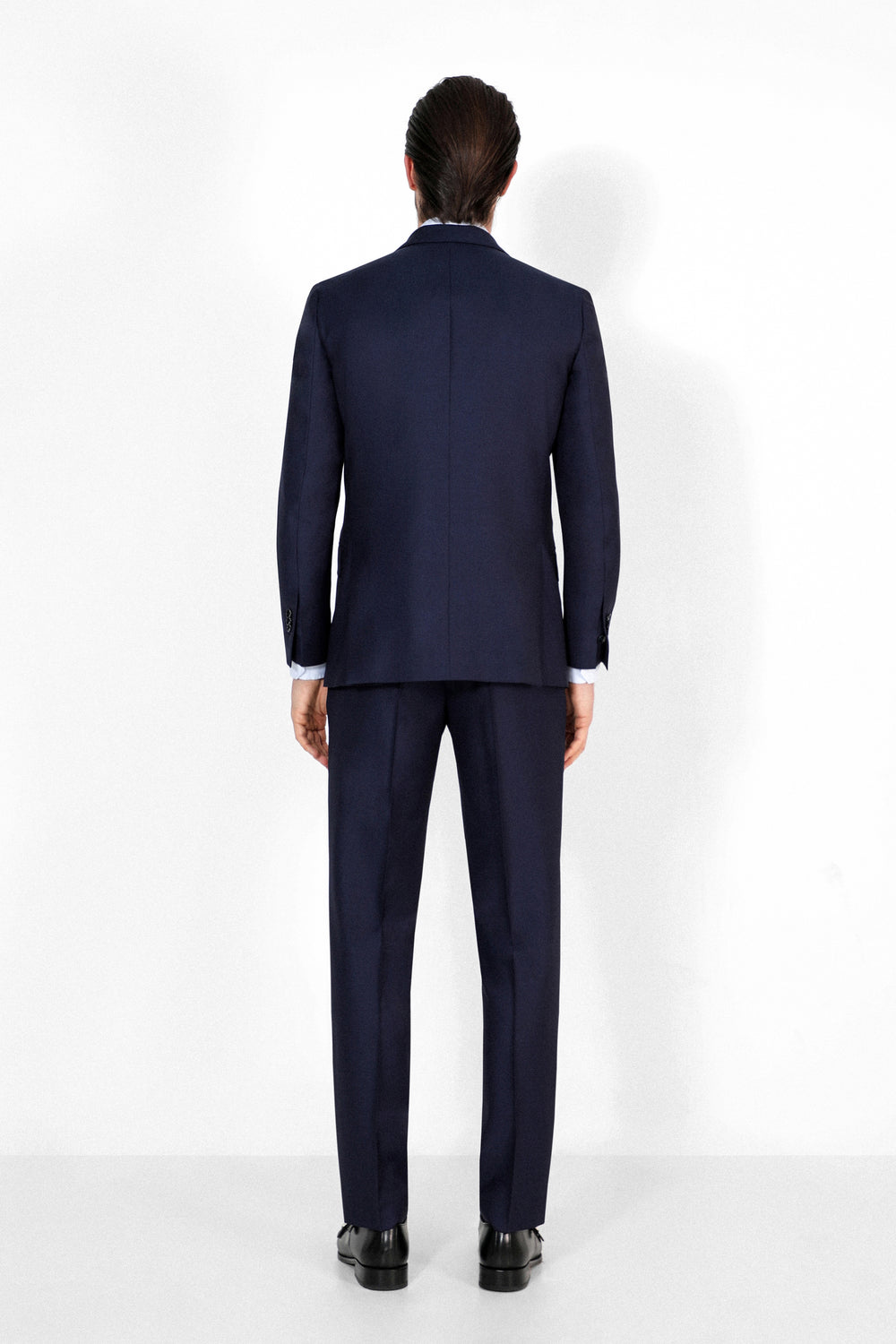 Traje confeccionada en tejido 100% lana. Americana de corte Regular Fit, cuello con solapas de muesca y cierre con botones, manga larga terminada en puño con botones y bolsillo insertado. Pantalón de corte Regular Fit, cierre con botón y cremallera y bolsillos laterales.