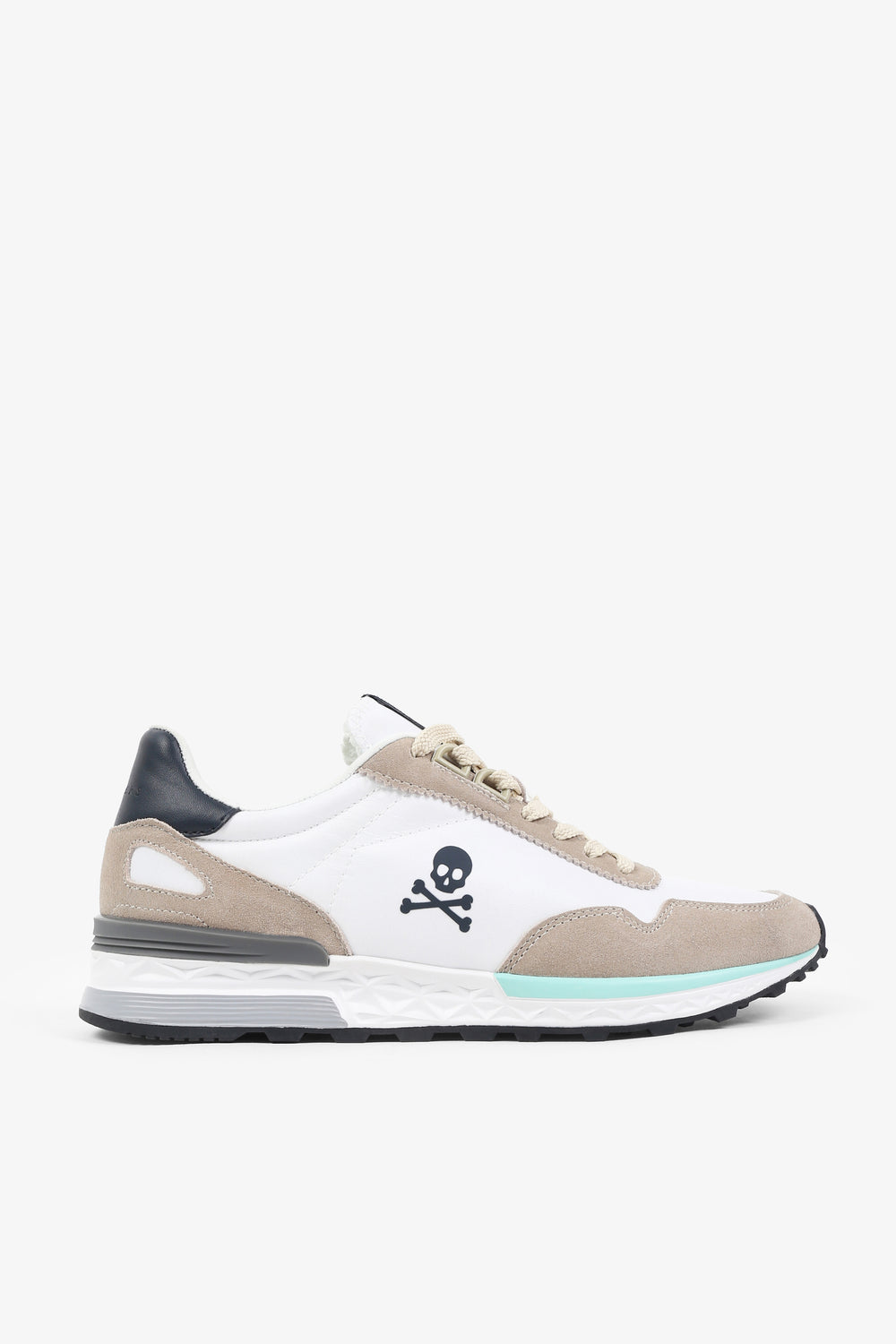 Sneakers confeccionadas en serraje y nailon. Corte bajo y cierre con cordones a tono. Suela phylon y eva. Detalle de aplique de calavera lateral.