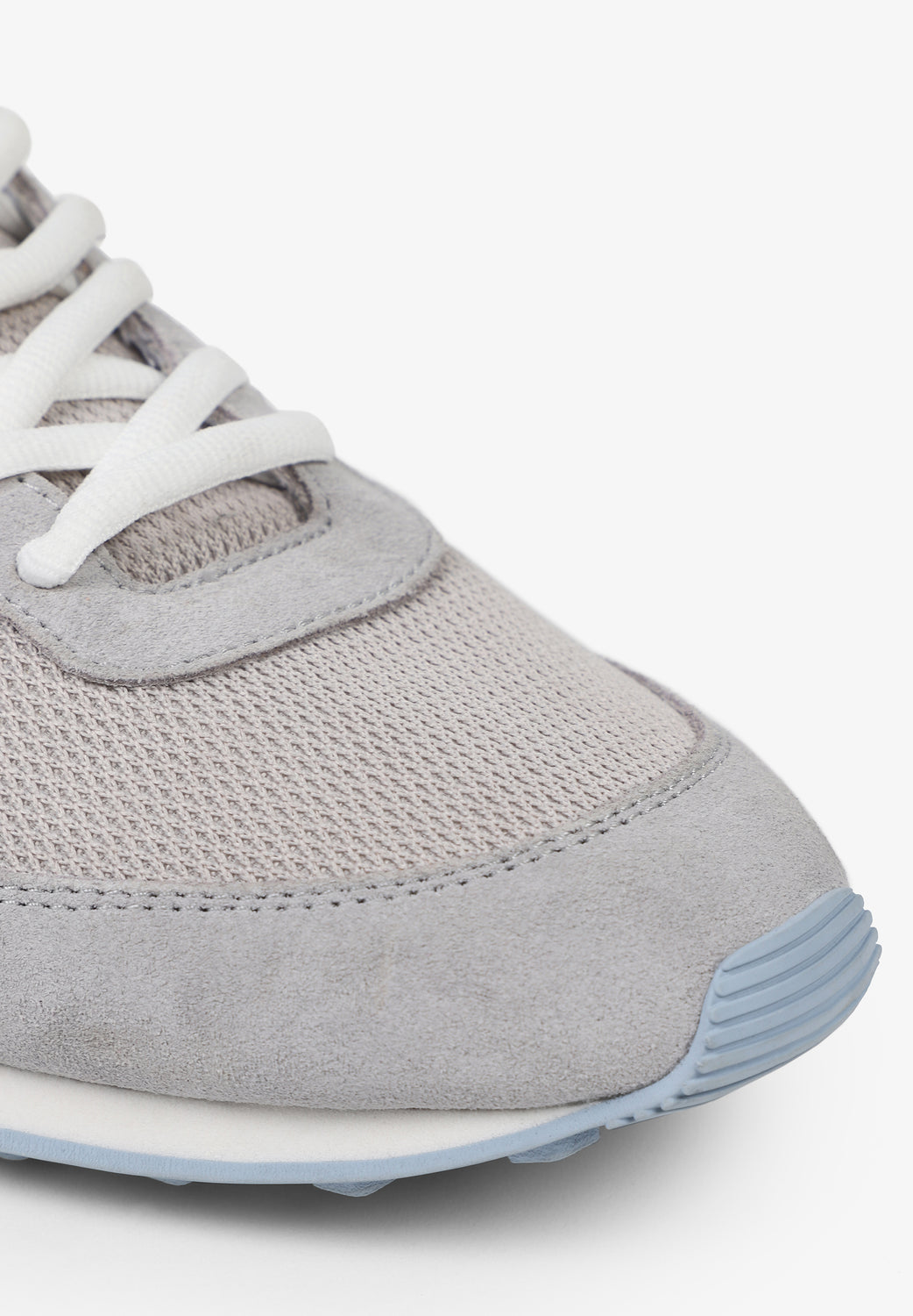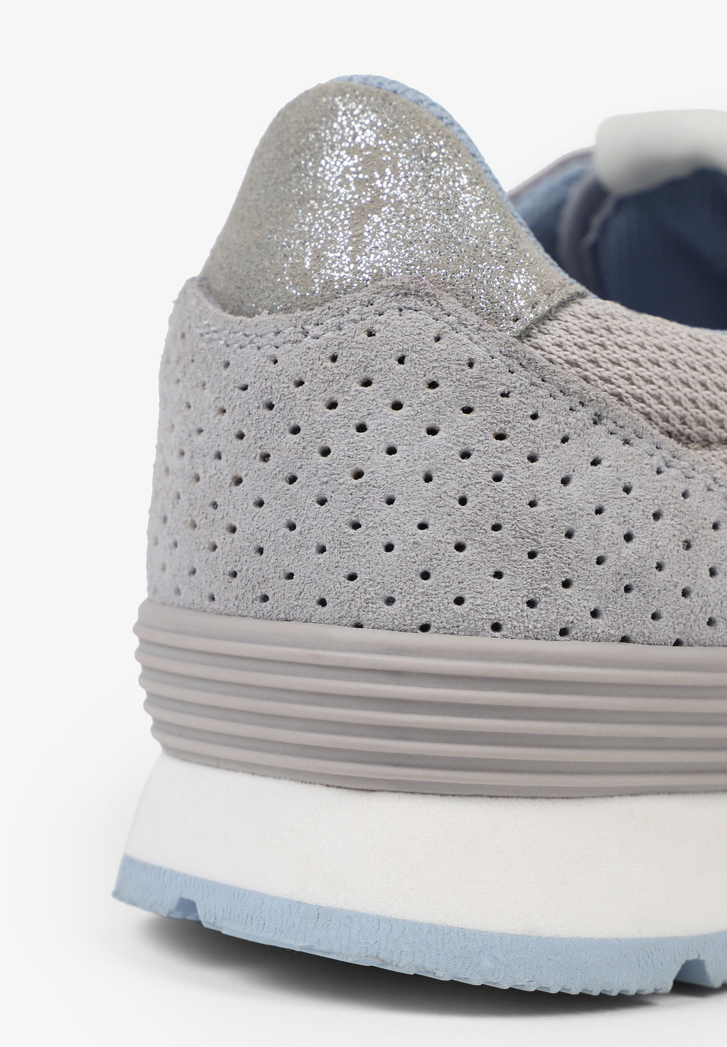 Sneakers confeccionadas en piel acabada en serraje y poliester. Cierre con cordones a tono, parte delantera con rejilla y suela de goma y eva. Detalle de calavera lateral.