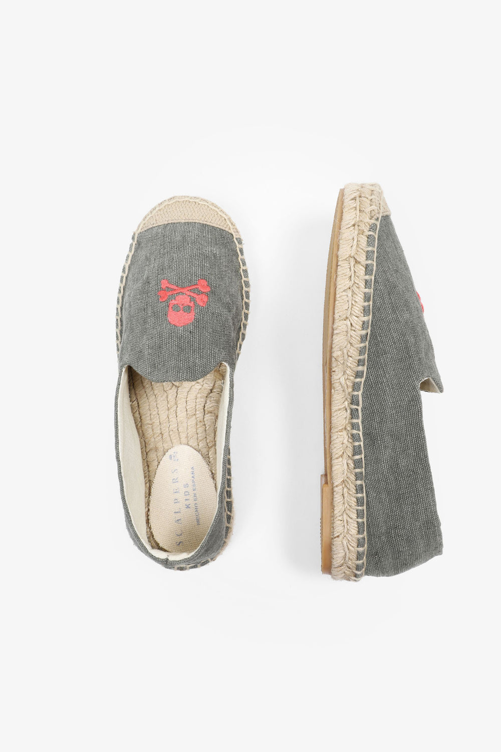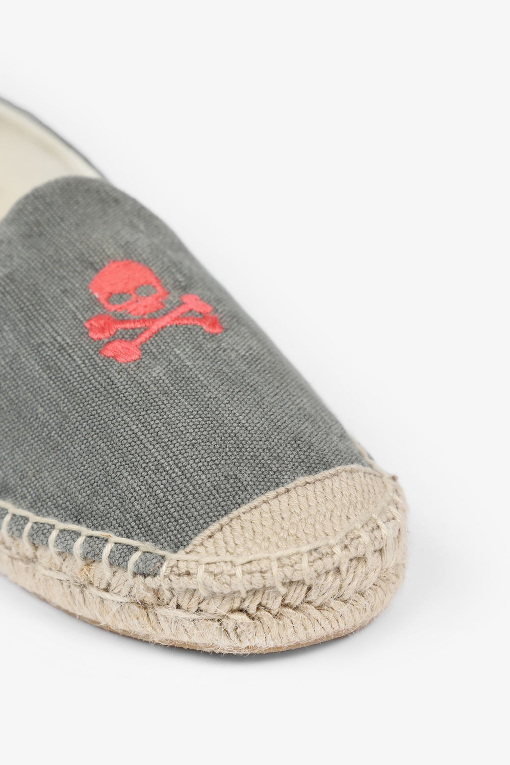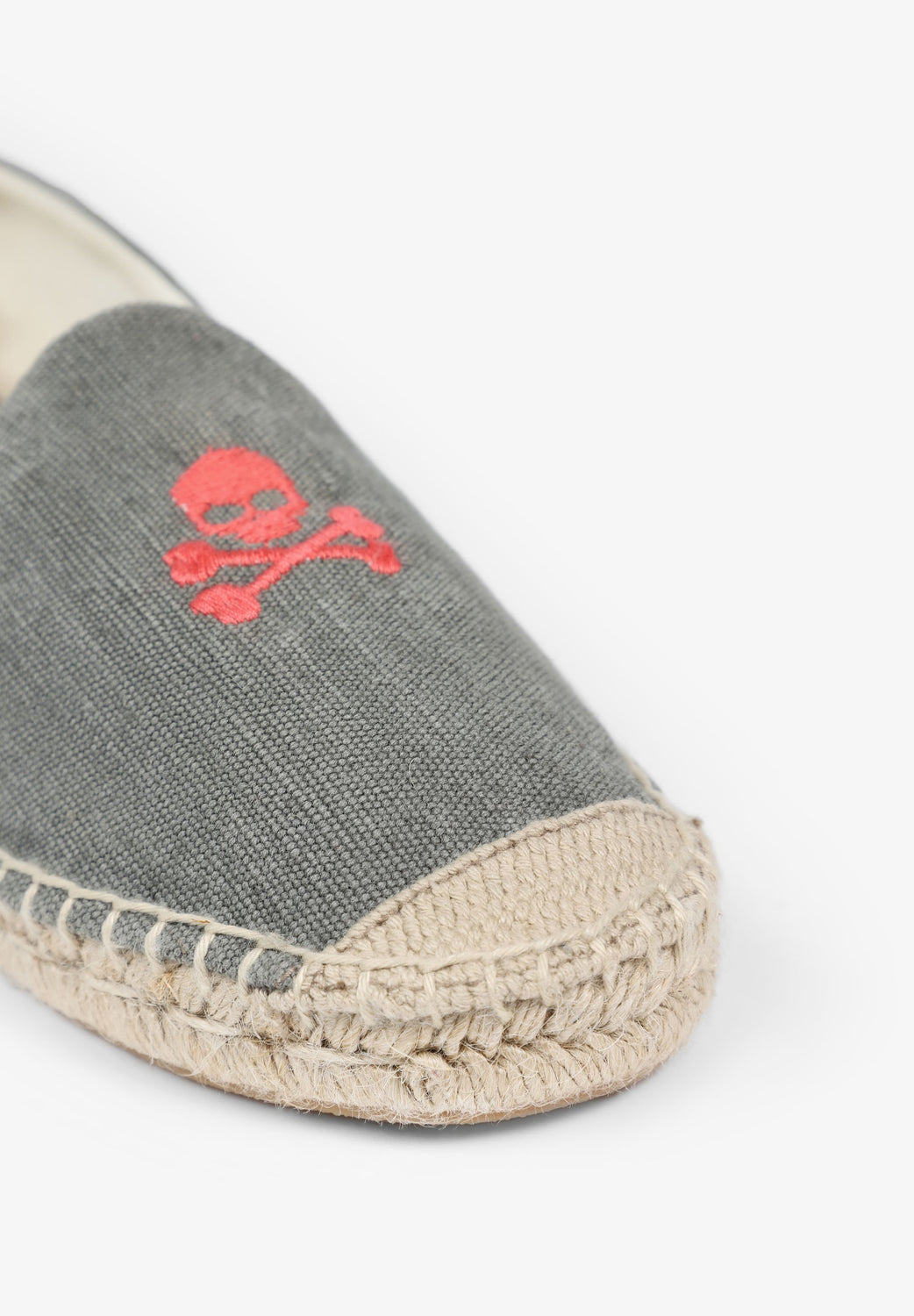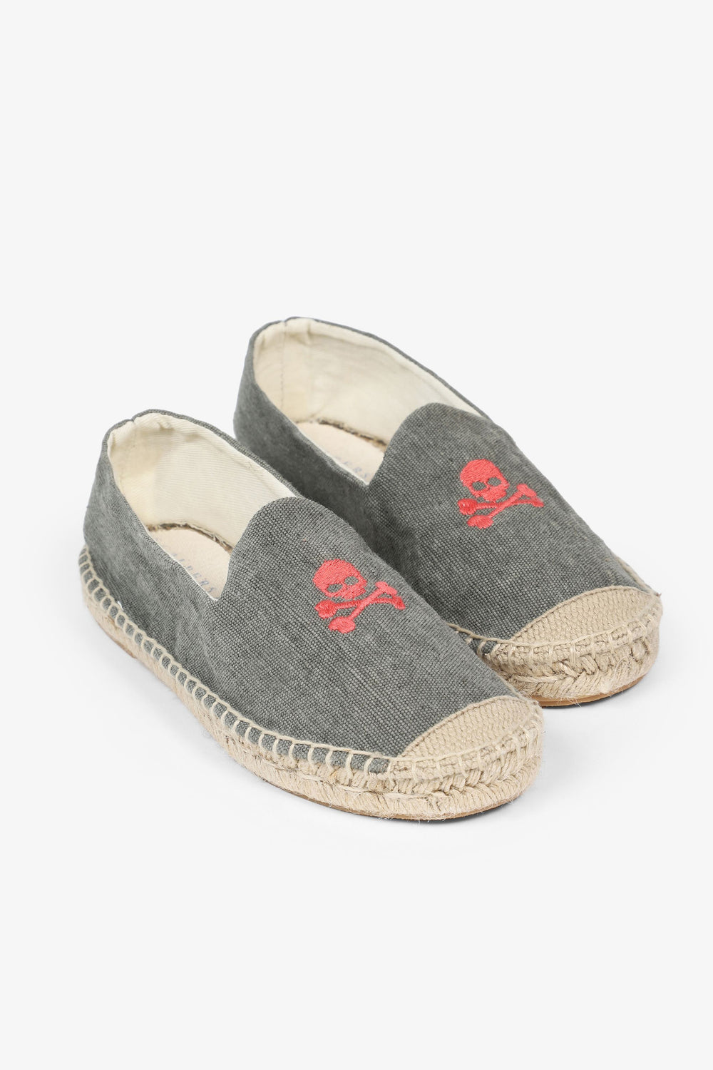 Alpargatas confeccionadas en tejido 100% algodón orgánico. Suela de goma y yute y detalle de calavera bordada en frontal.