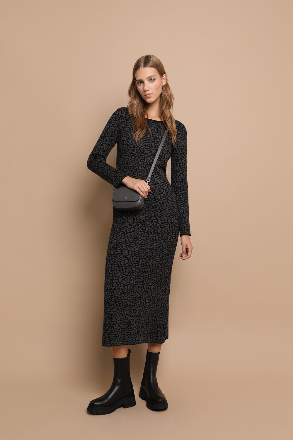 Vestido de punto de animal print.