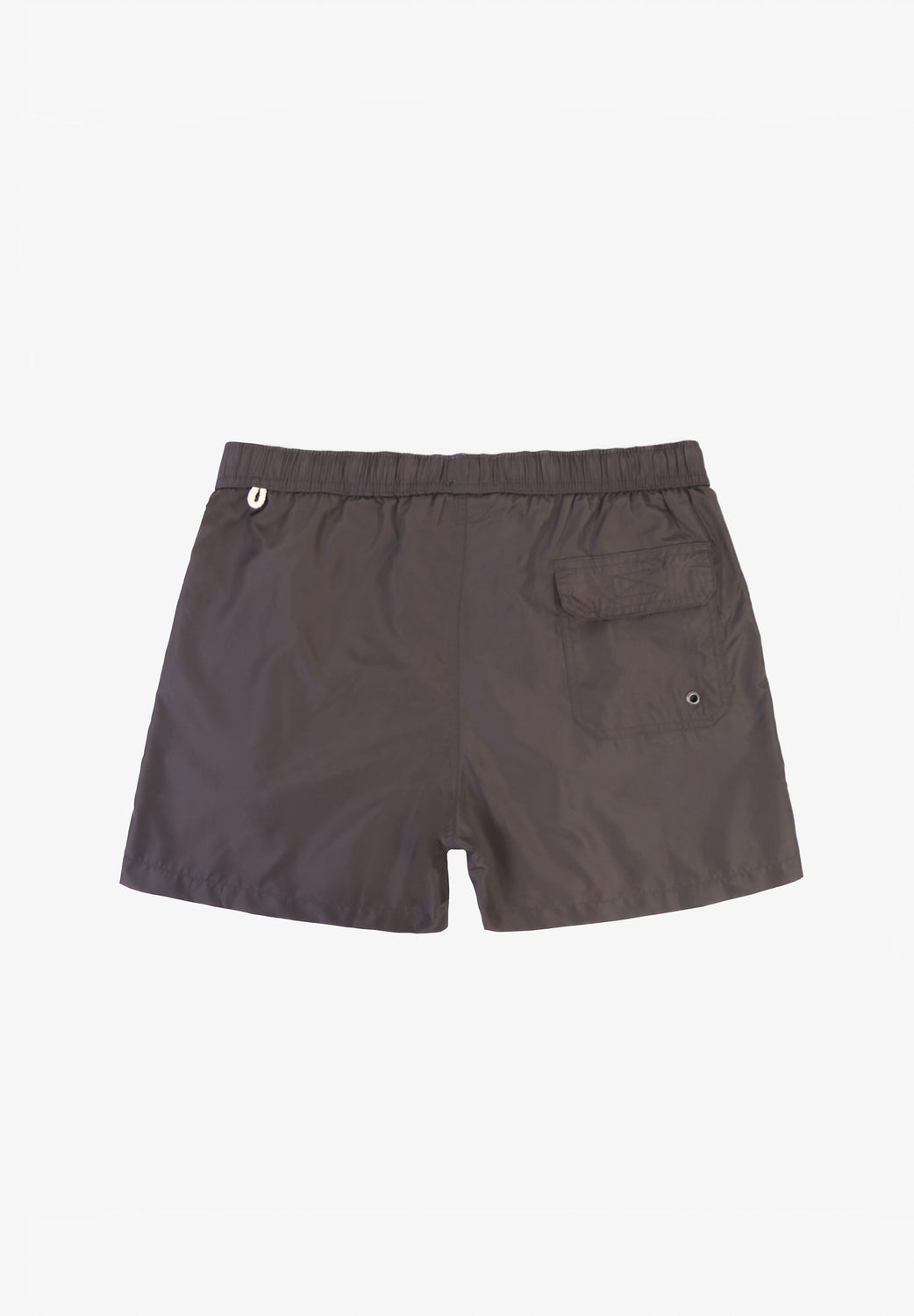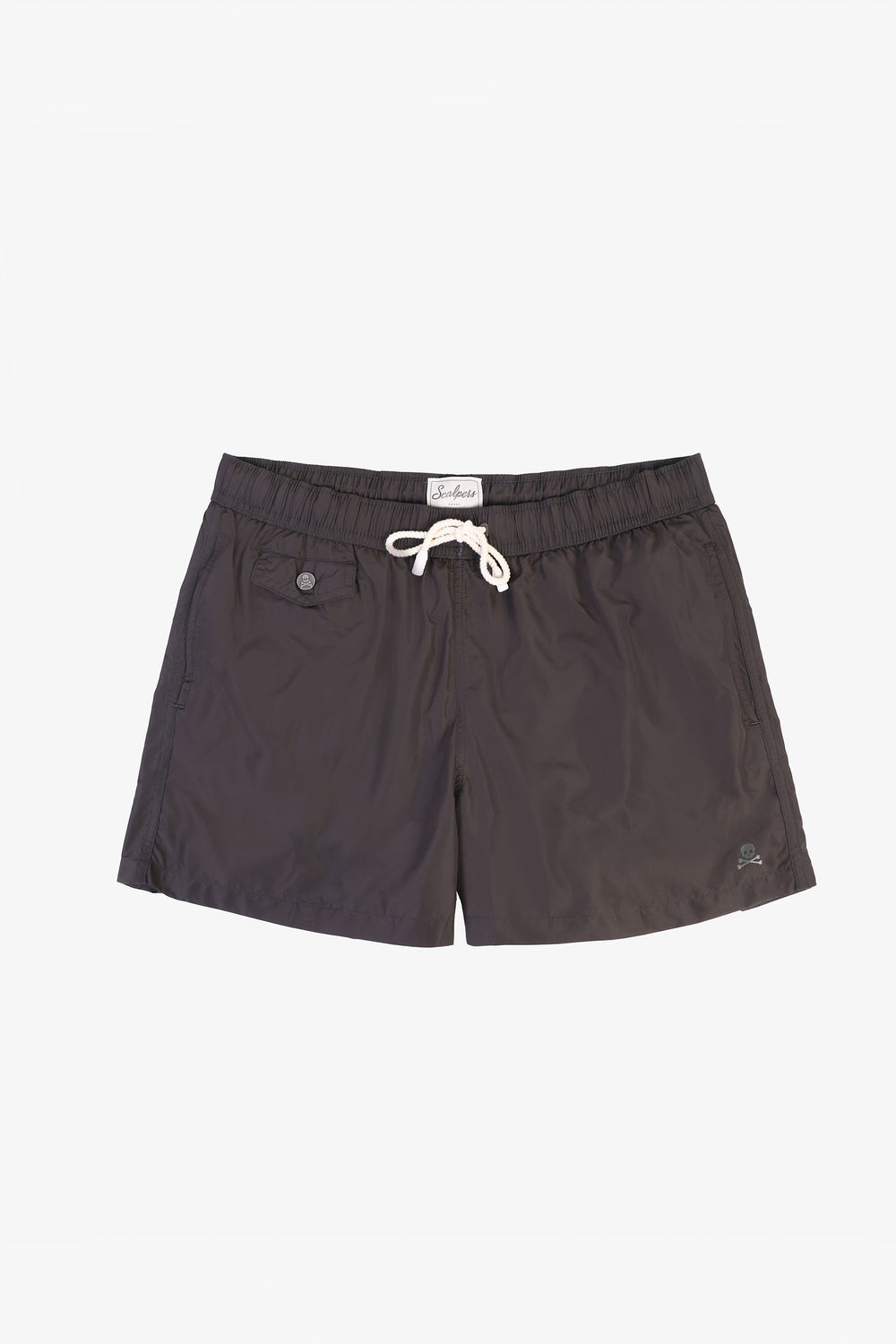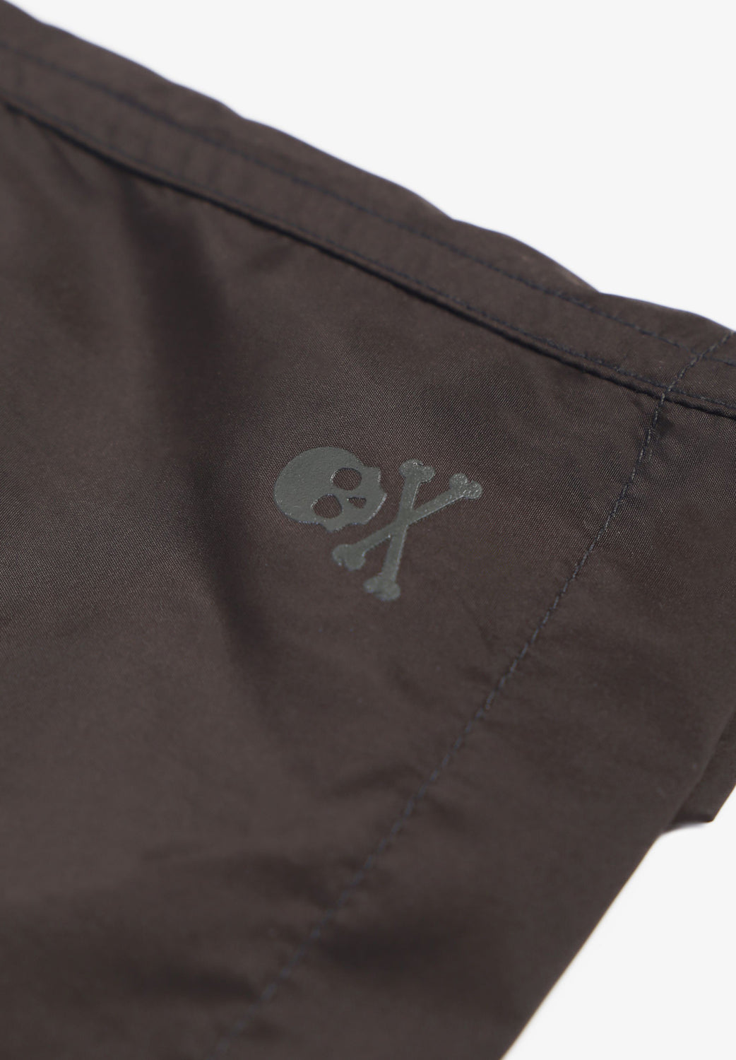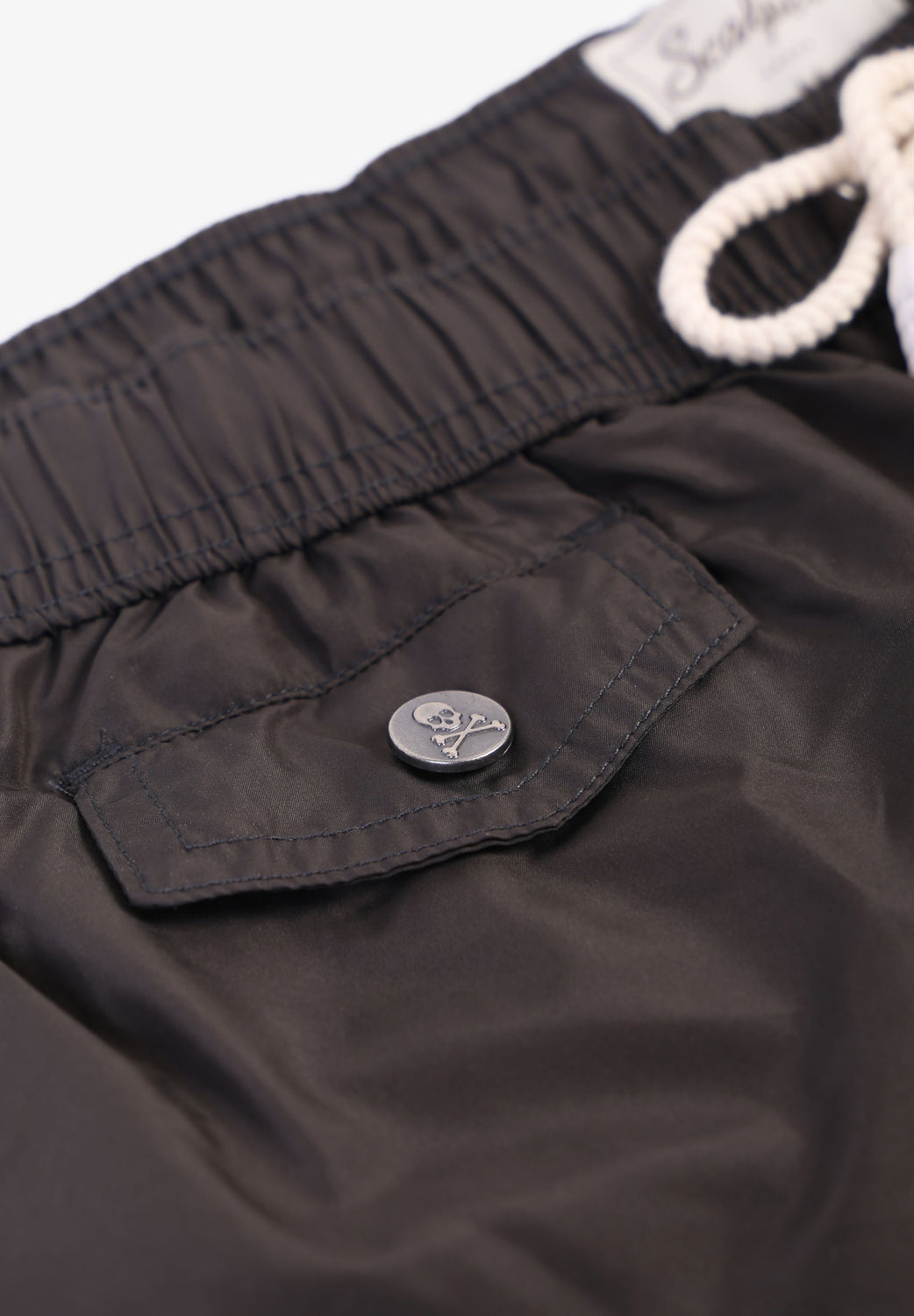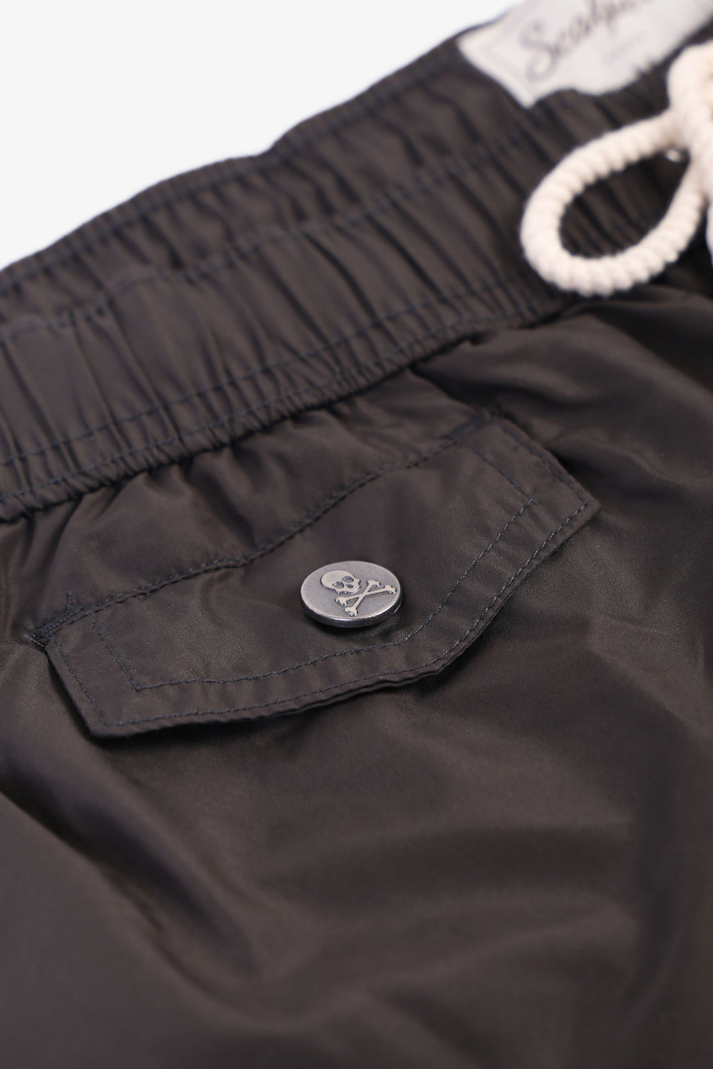 Bañador confeccionado en tejido 100% poliéster reciclado. Corte Regular Fit con cinturilla elástica, cierre con cordón y bolsillo delantero con botón y trasero con tapeta y snap. Detalle de calavera en el bajo.