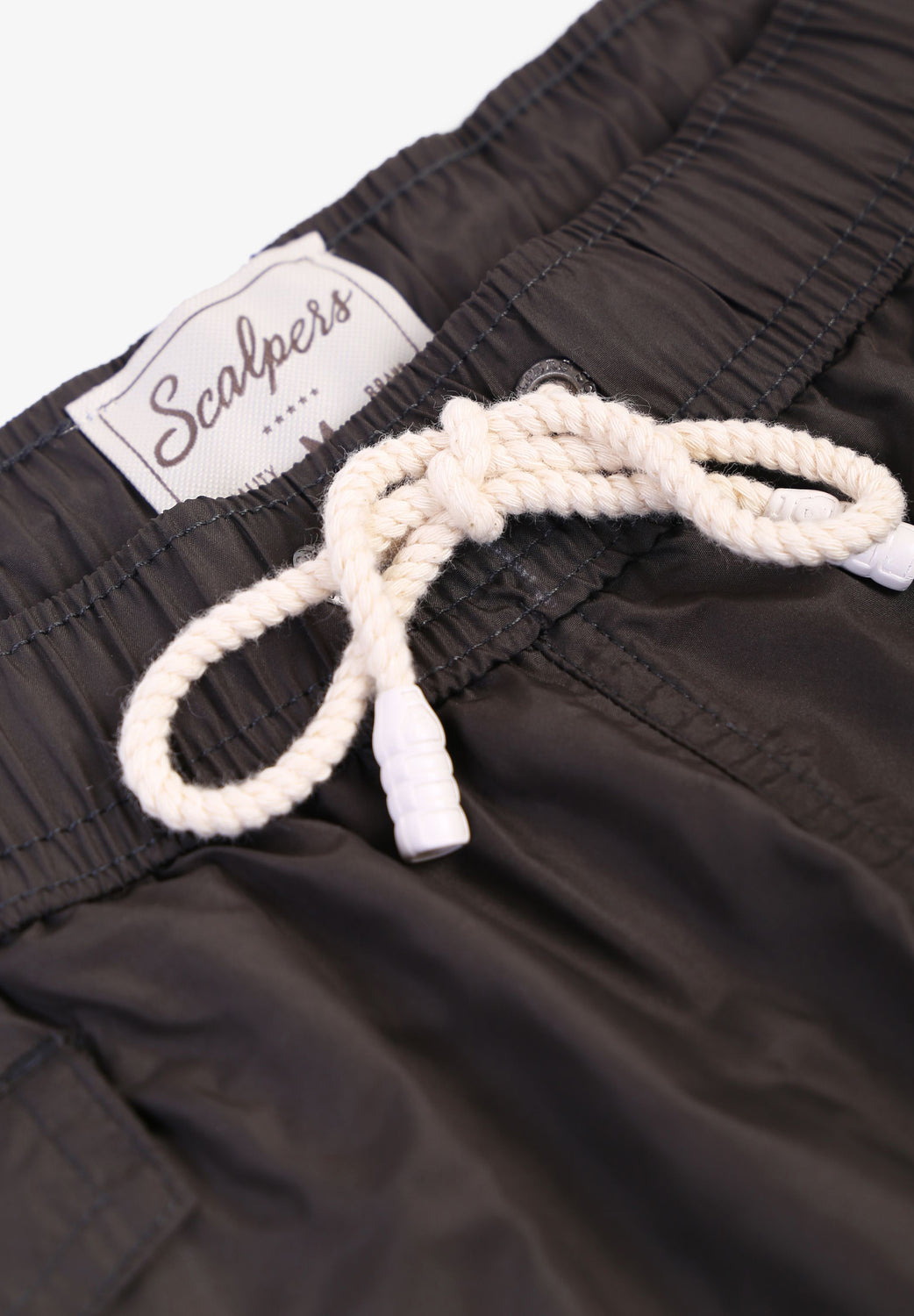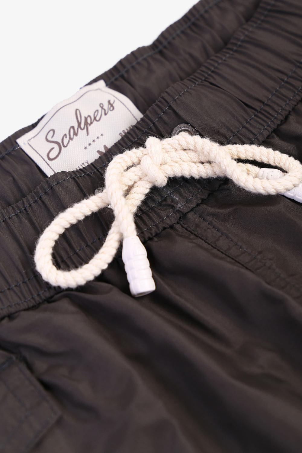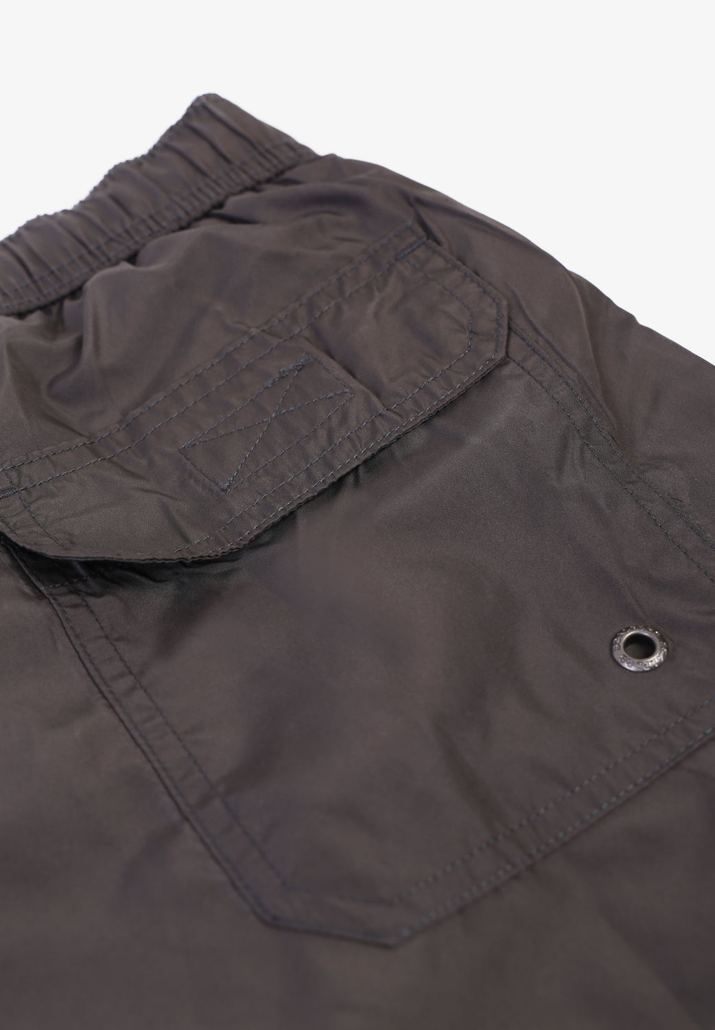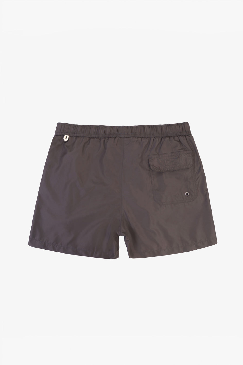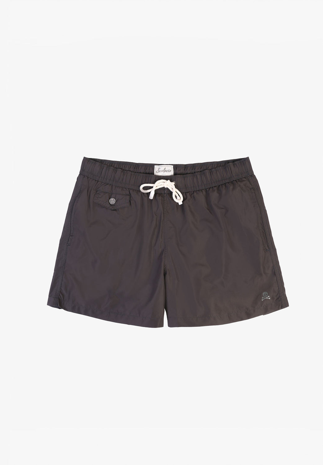 Bañador confeccionado en tejido 100% poliéster reciclado. Corte Regular Fit con cinturilla elástica, cierre con cordón y bolsillo delantero con botón y trasero con tapeta y snap. Detalle de calavera en el bajo.