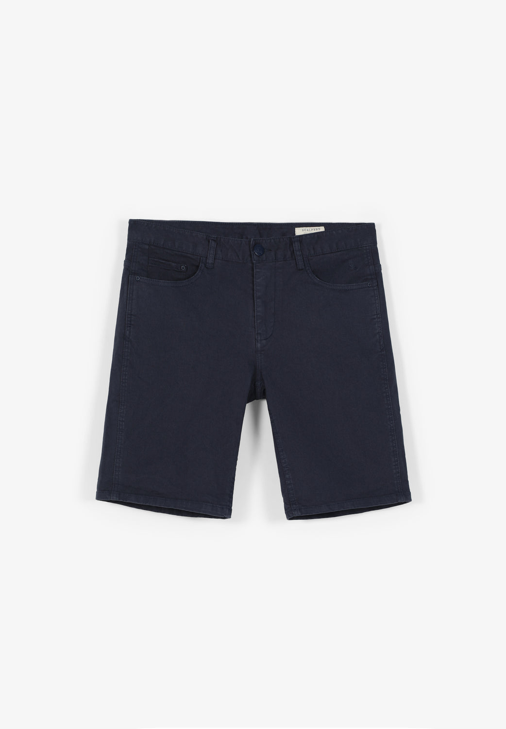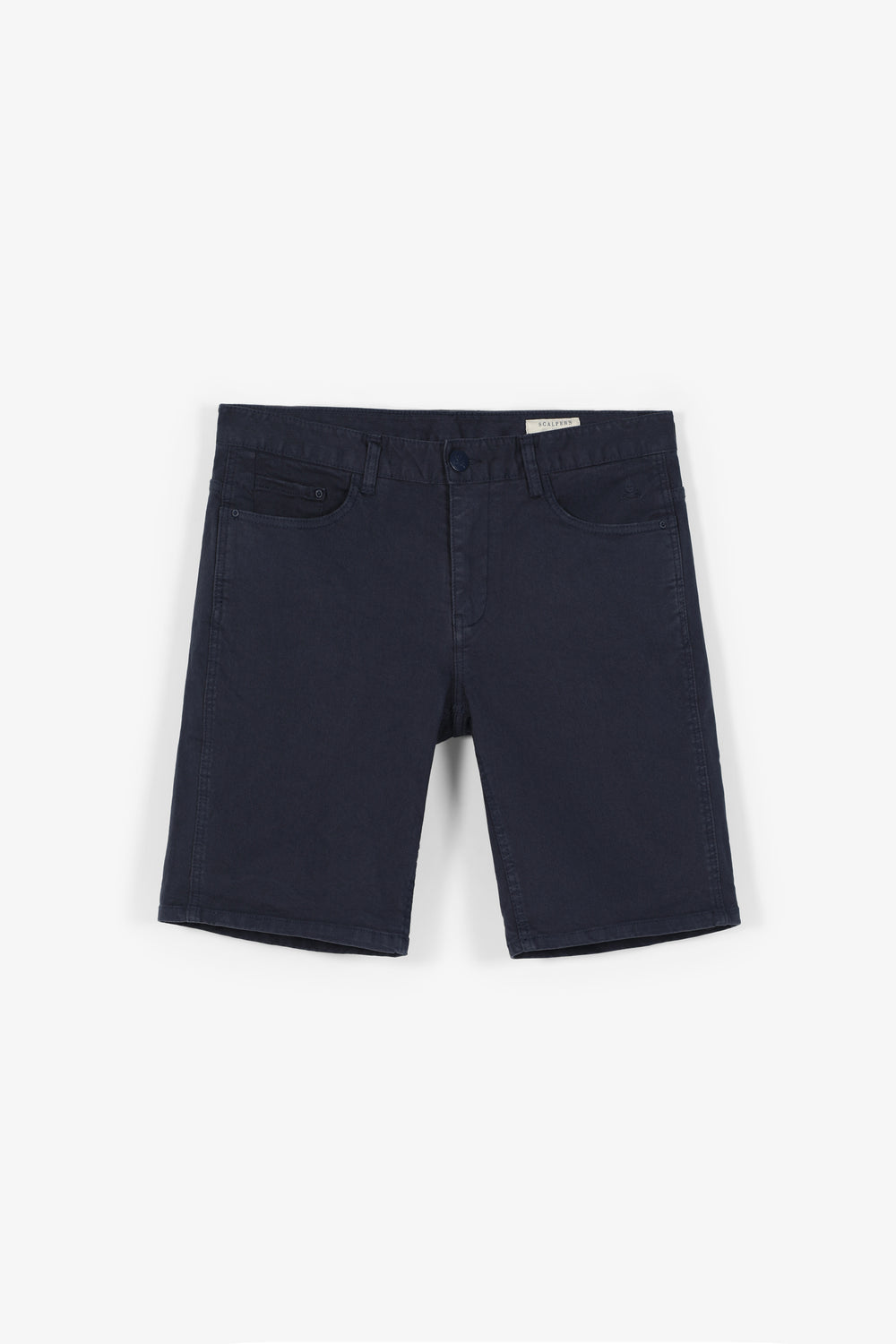 Bermudas confeccionadas en tejido de algodón ligeramente elástico. Corte Regular Fit, cierre con botón y cremallera. Bolsillos laterales y traseros. Tiene trabillas.