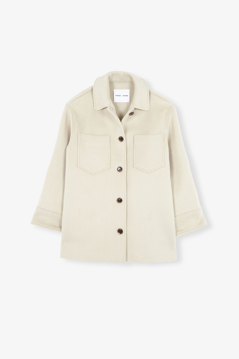 Sobrecamisa Samsoe confeccionada en un tejido mezcla de lana y poliéster con una suave superficie cepillada.
