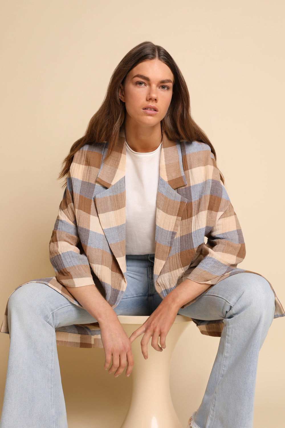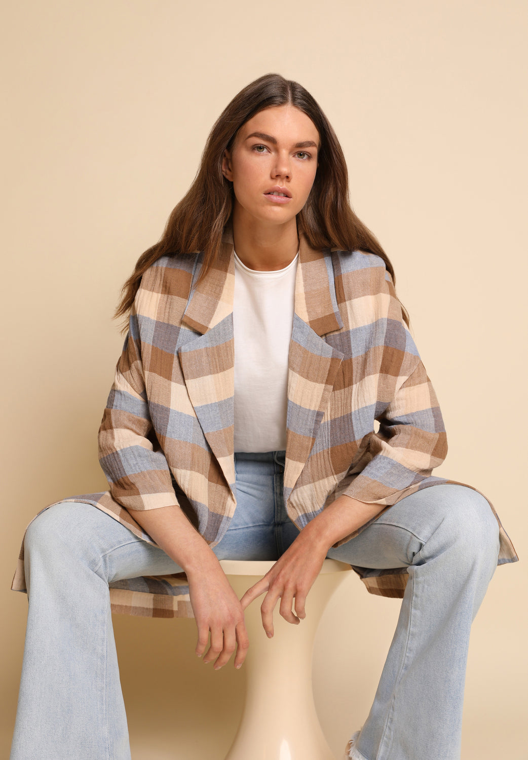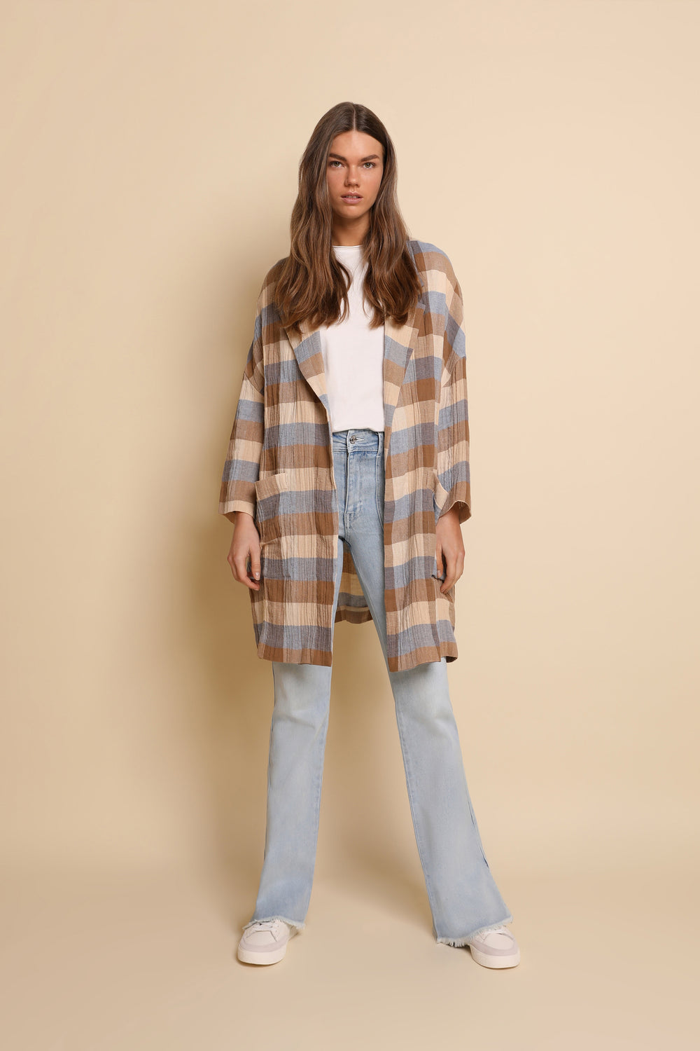 Abrigo ligero de cuadros.