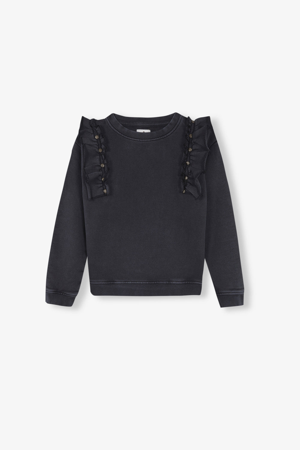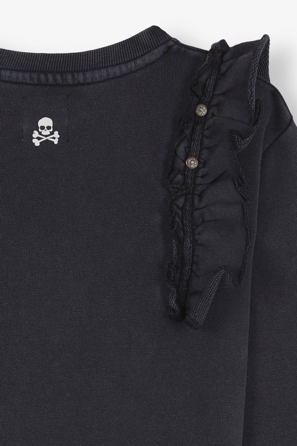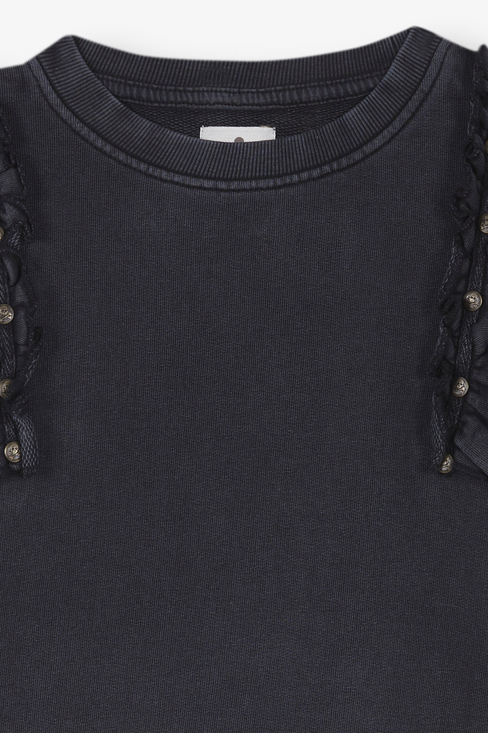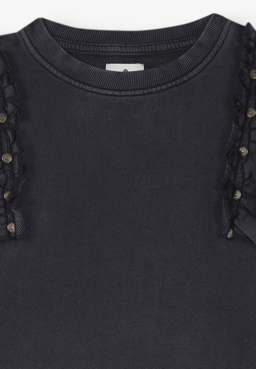 Sudadera lavada con detalle de volantes y tachuelas.