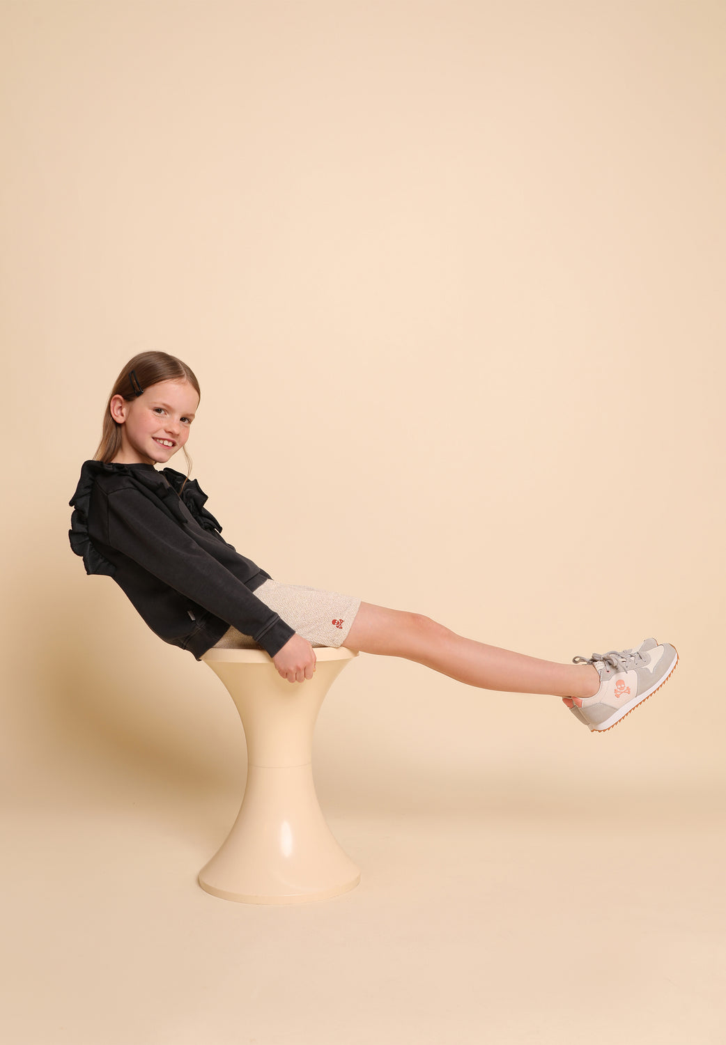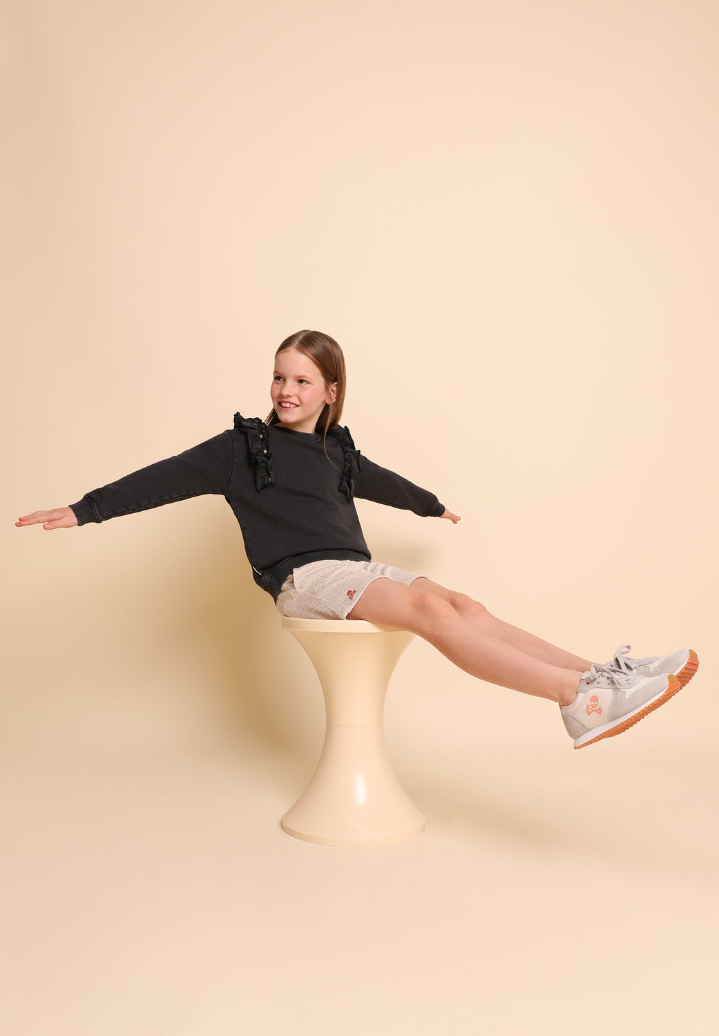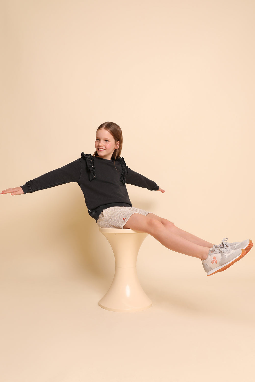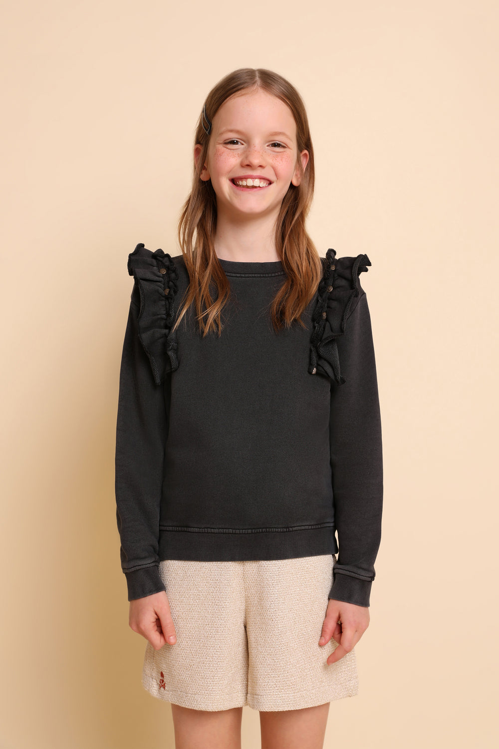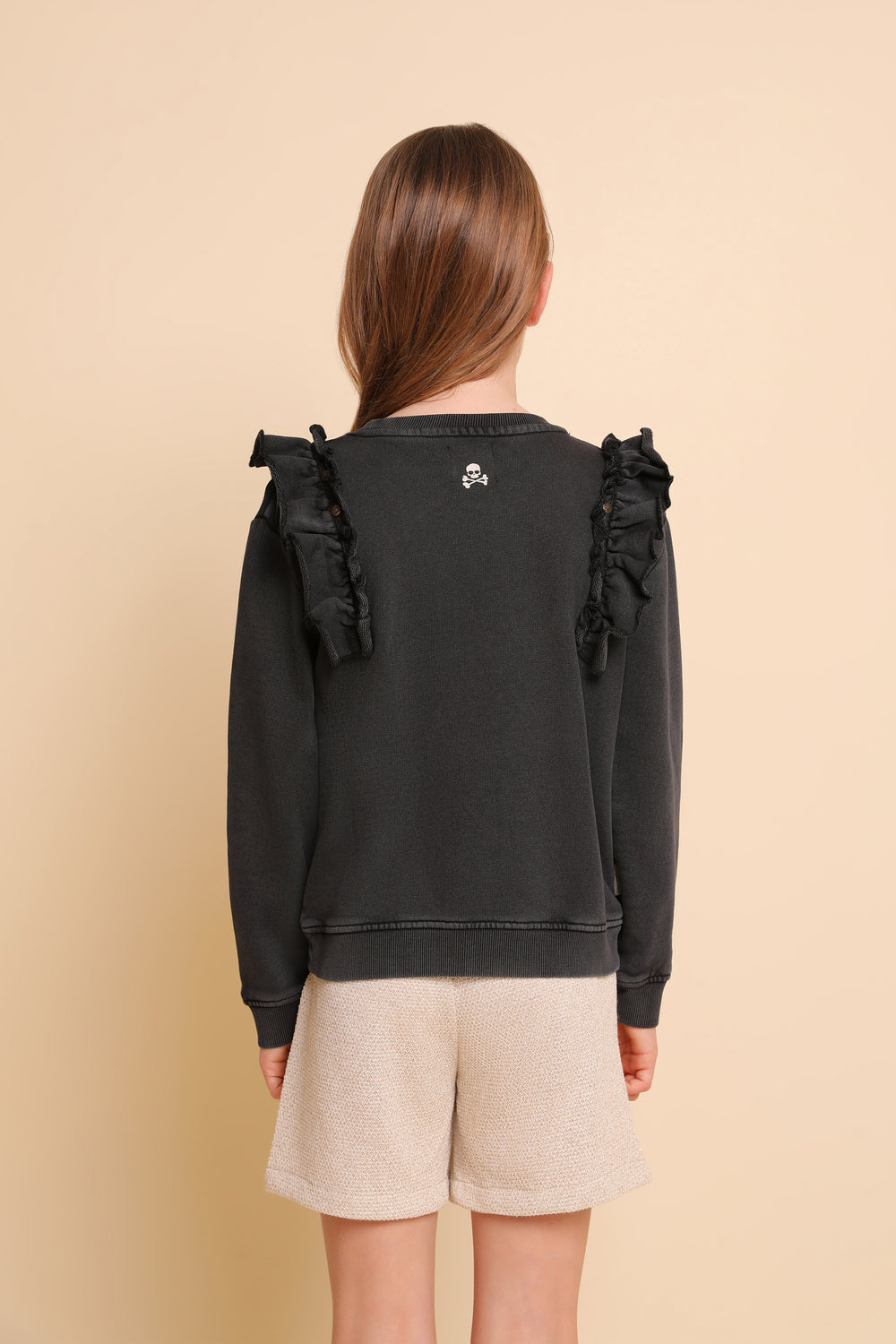 Sudadera lavada con detalle de volantes y tachuelas.
