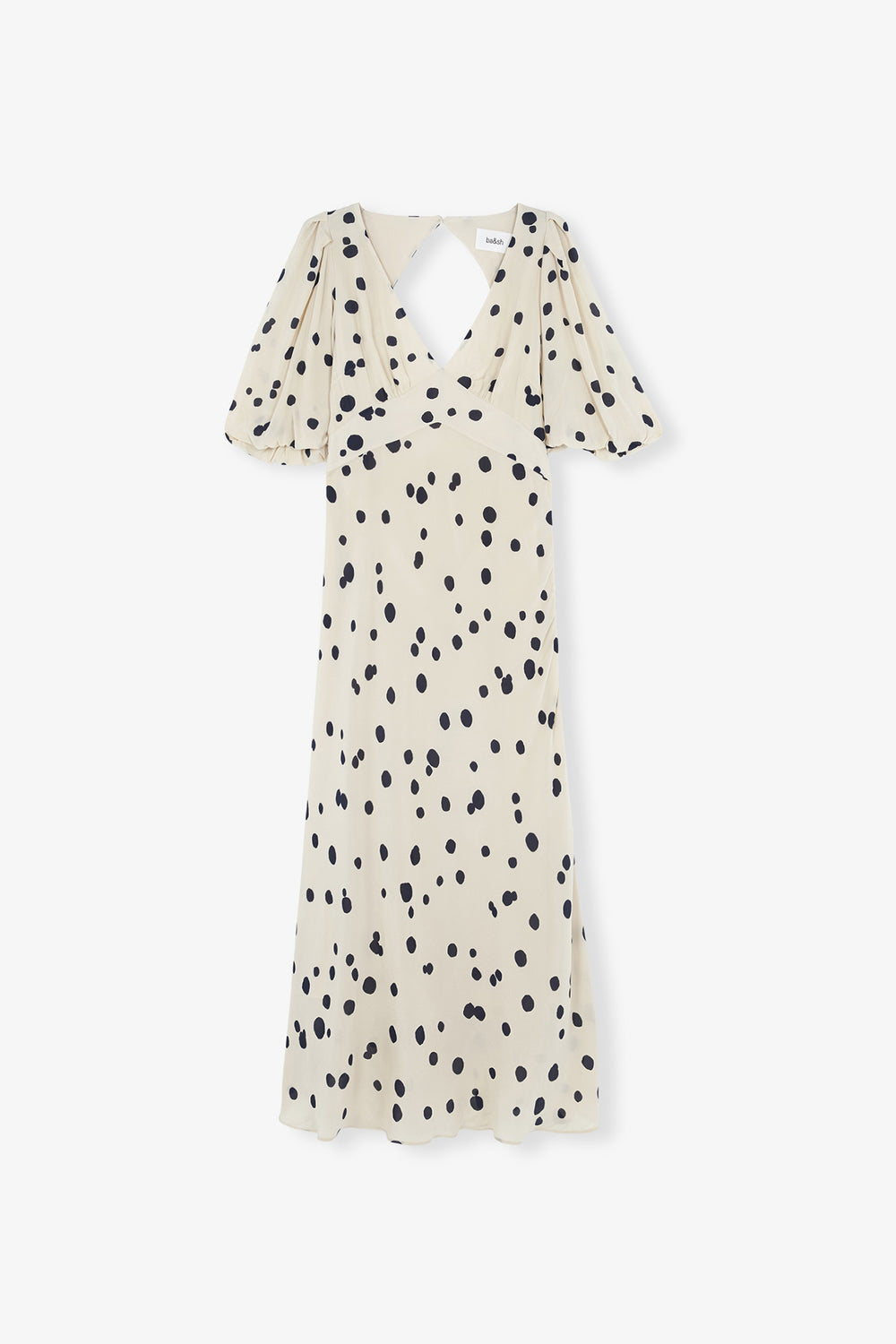 No solo con básicos se completa un buen armario. Apuesta por prendas más arriesgadas, como este vestido de lunares y estética parisina que caracteriza a Ba&sh.
