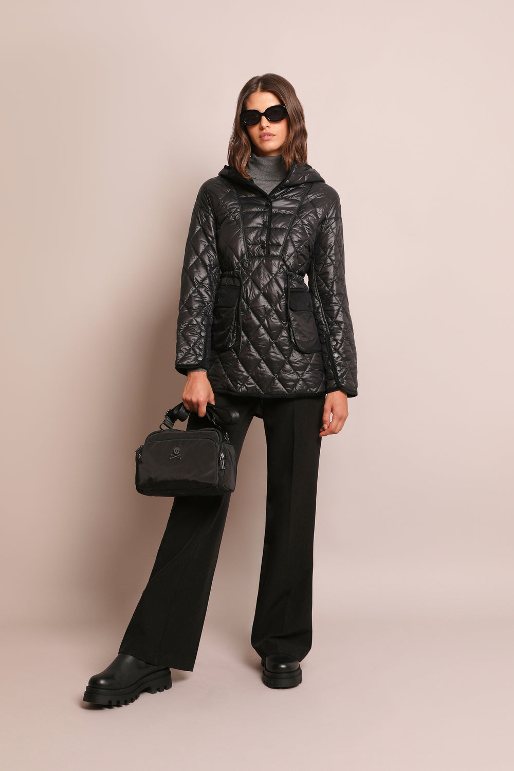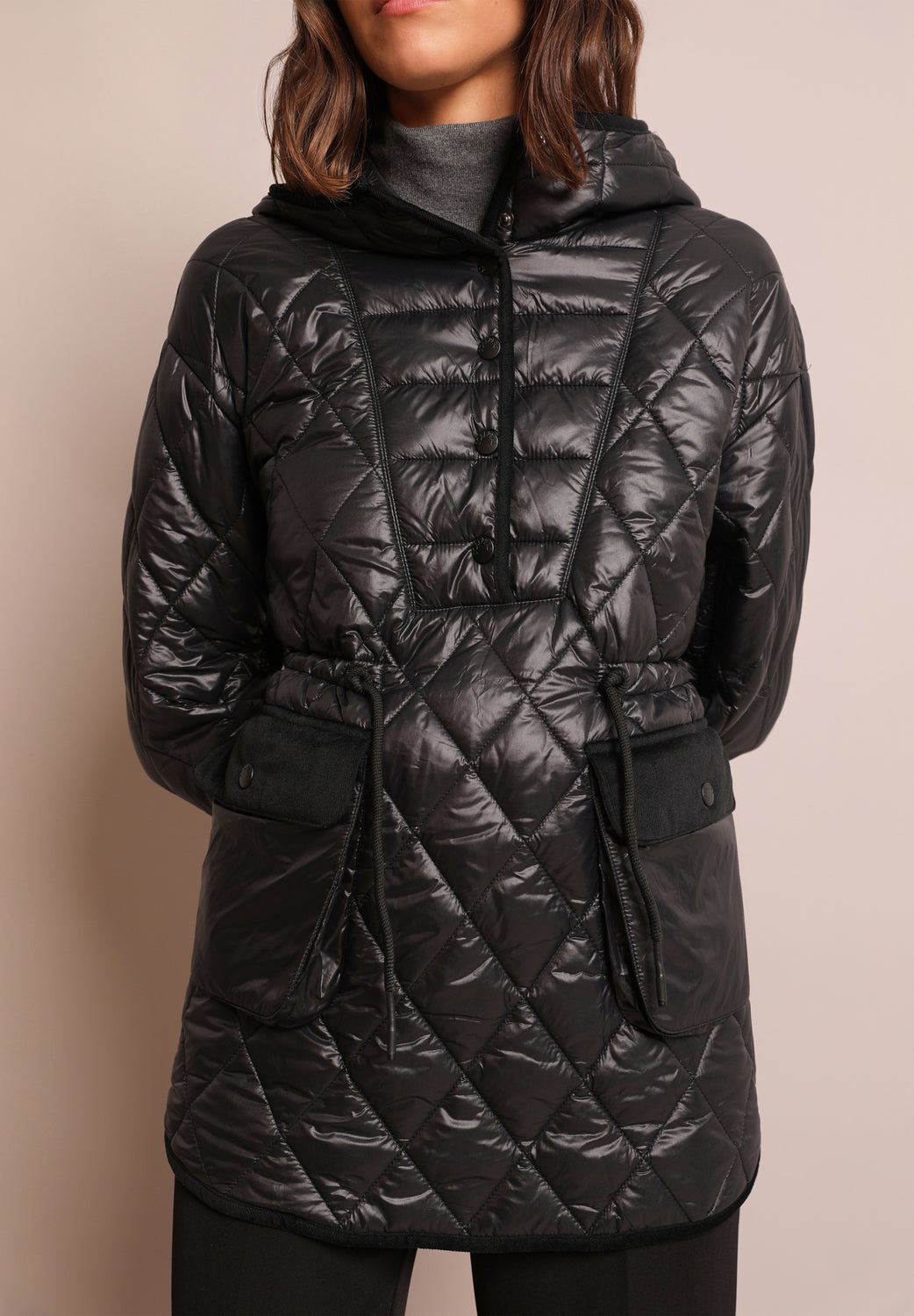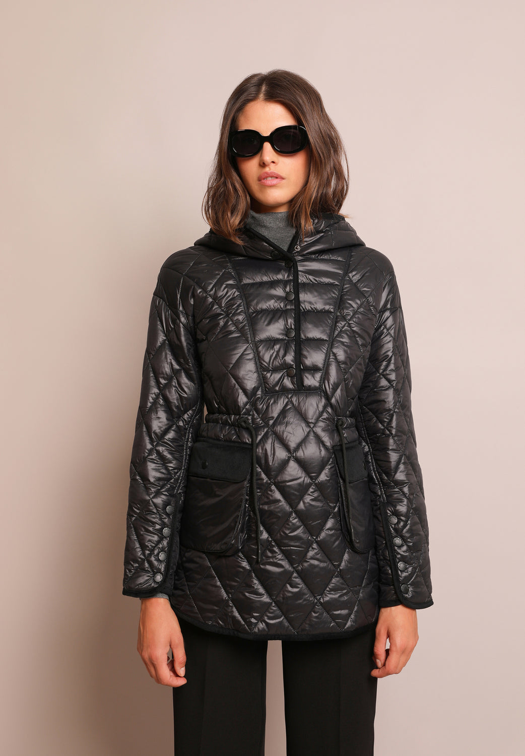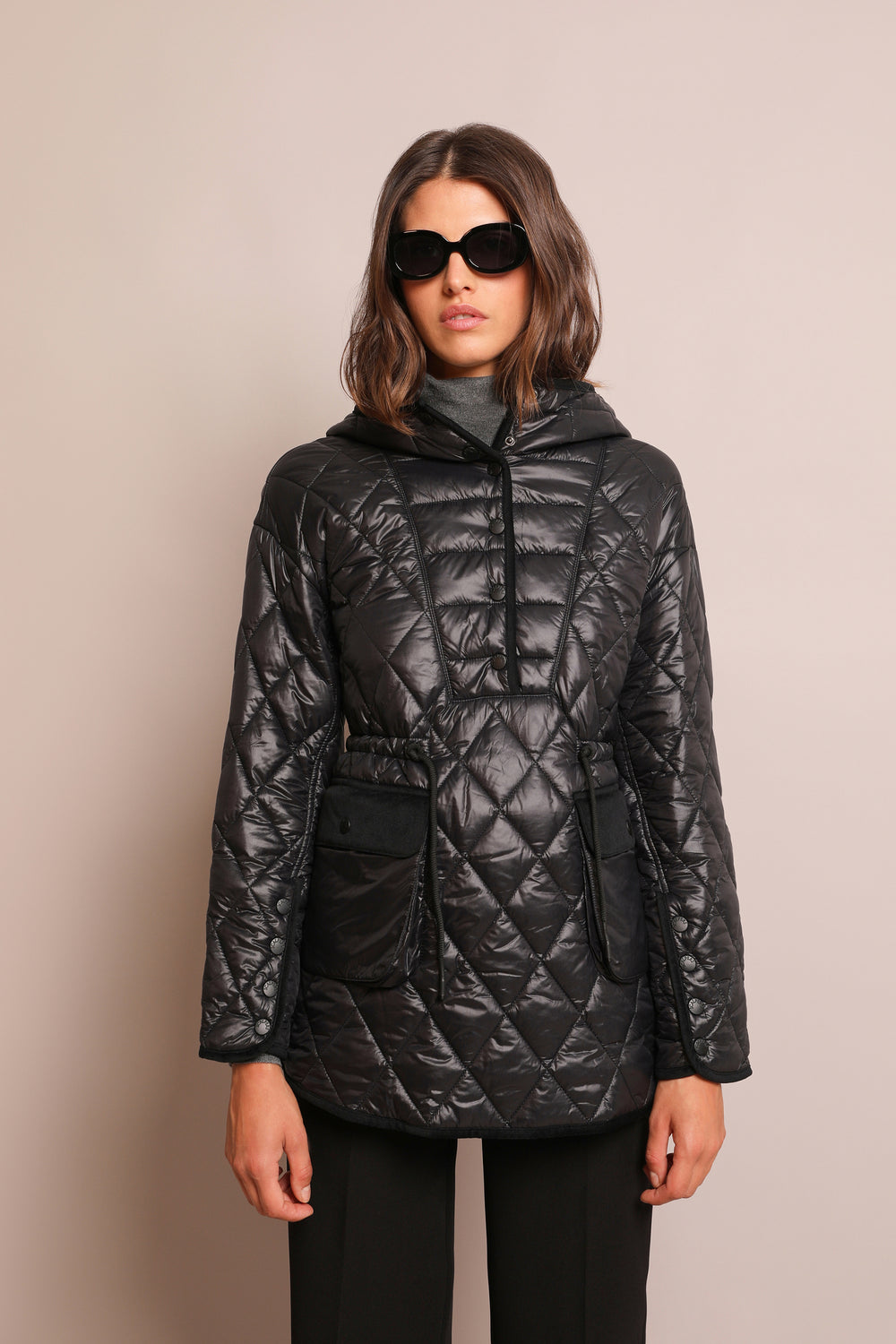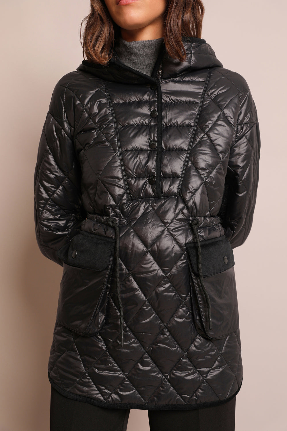 Abrigo acolchado con corte canguro.