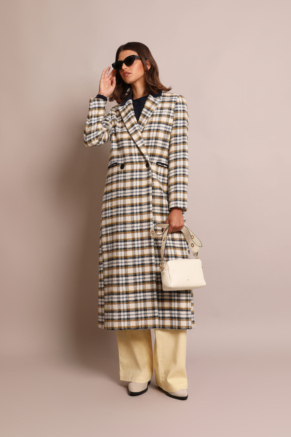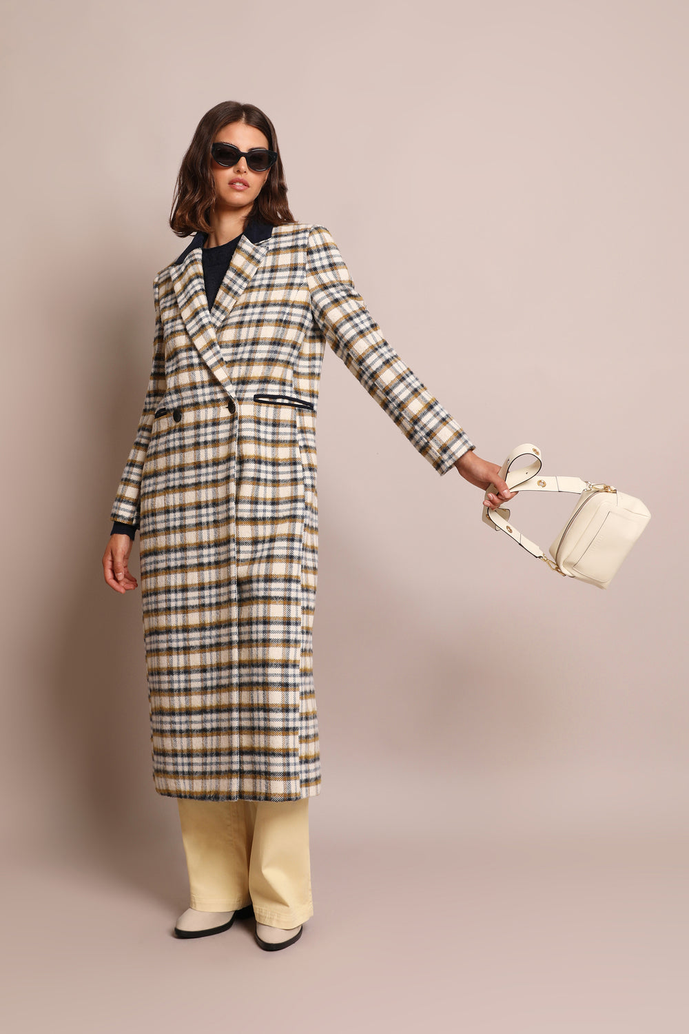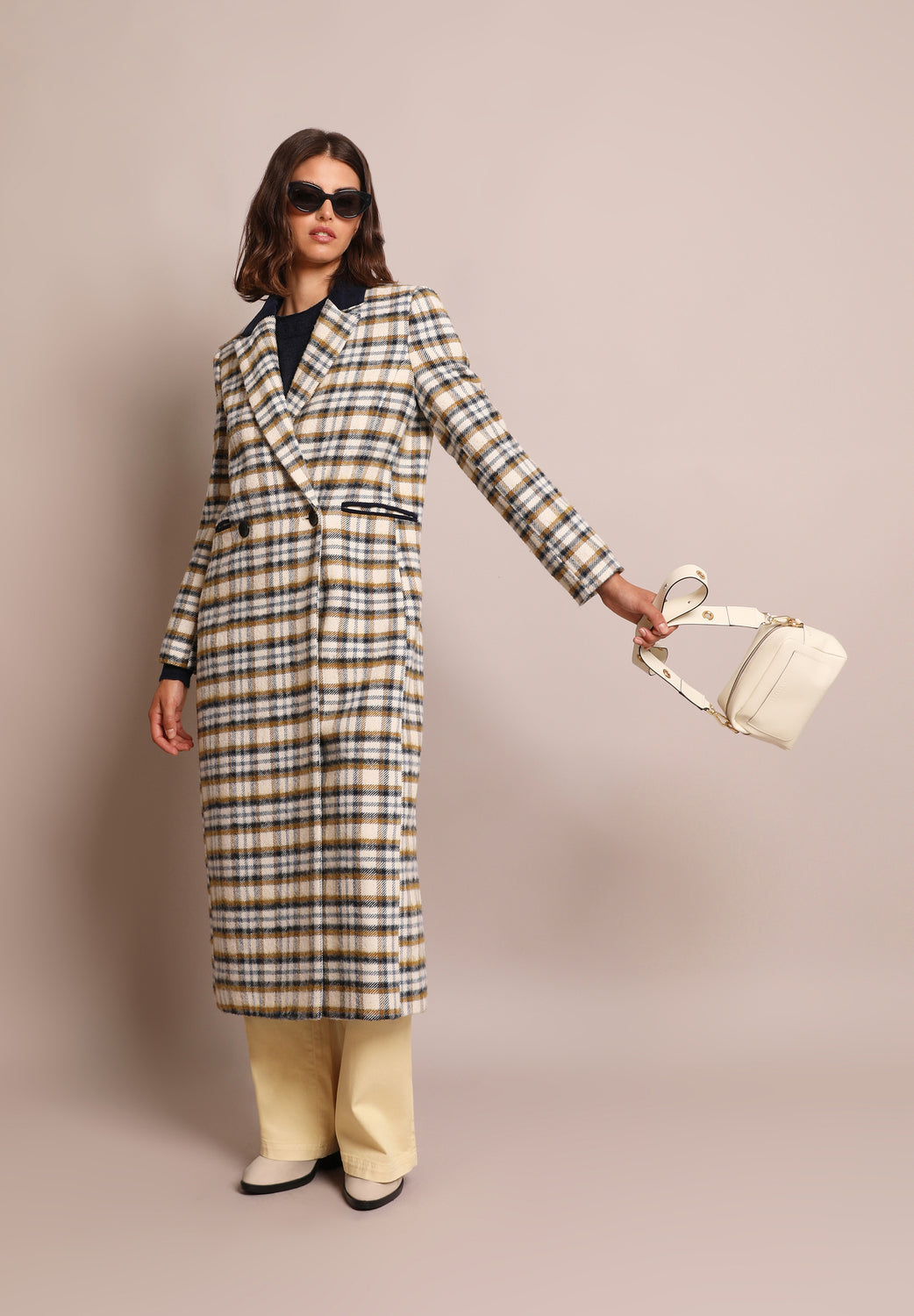 Abrigo largo de cuadros.