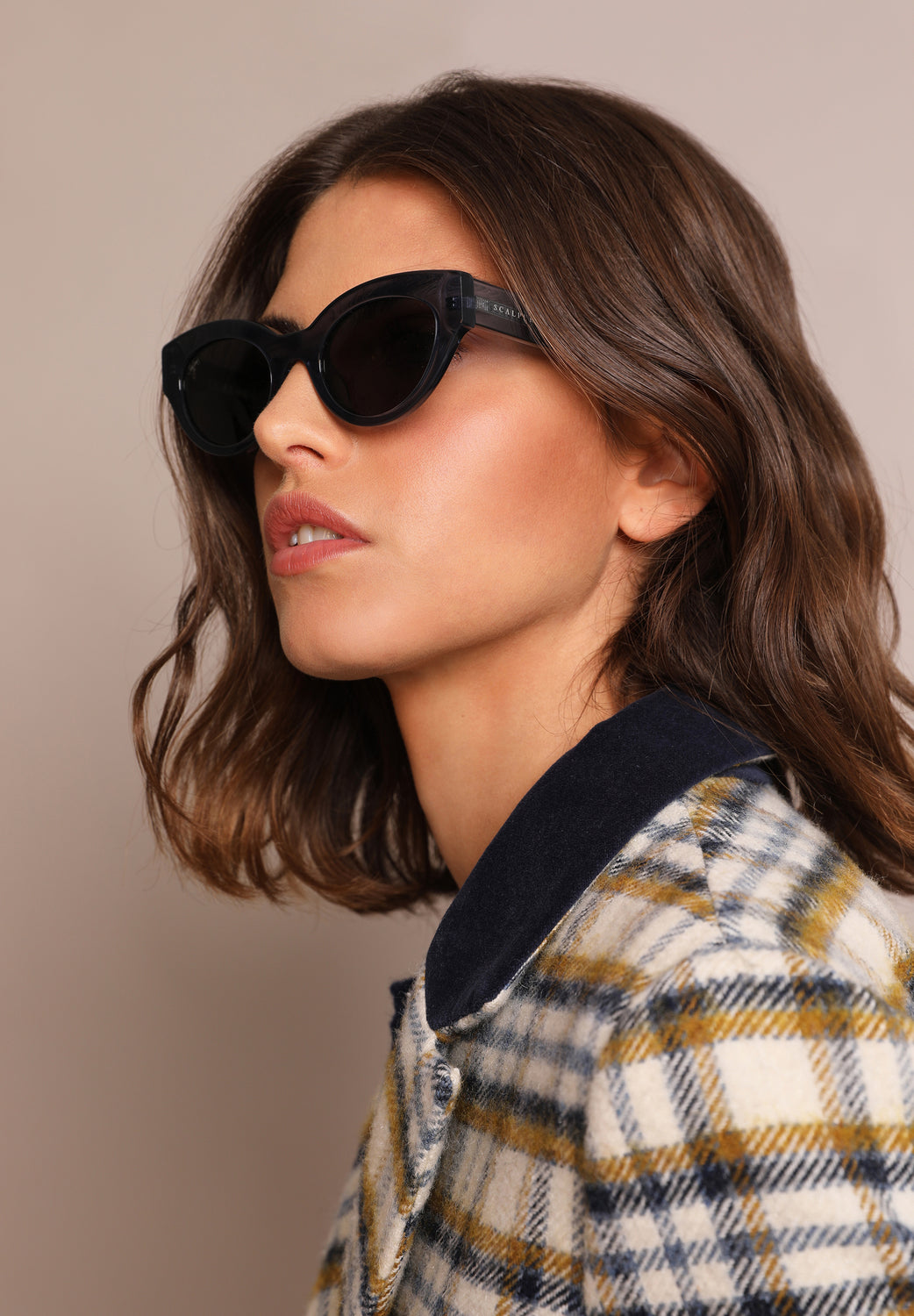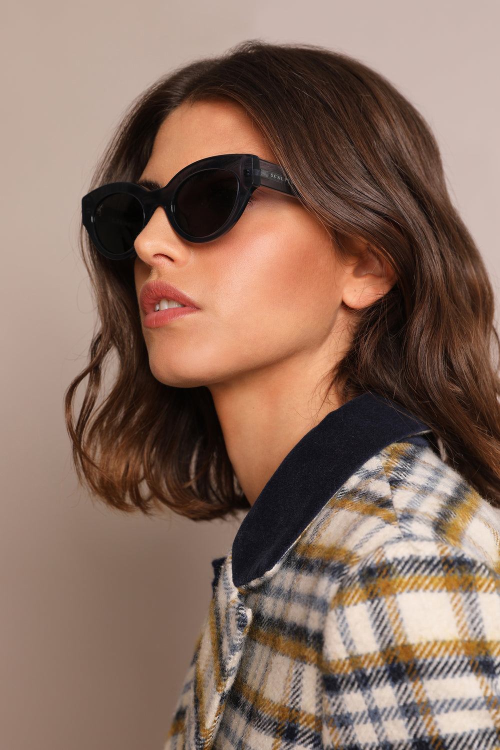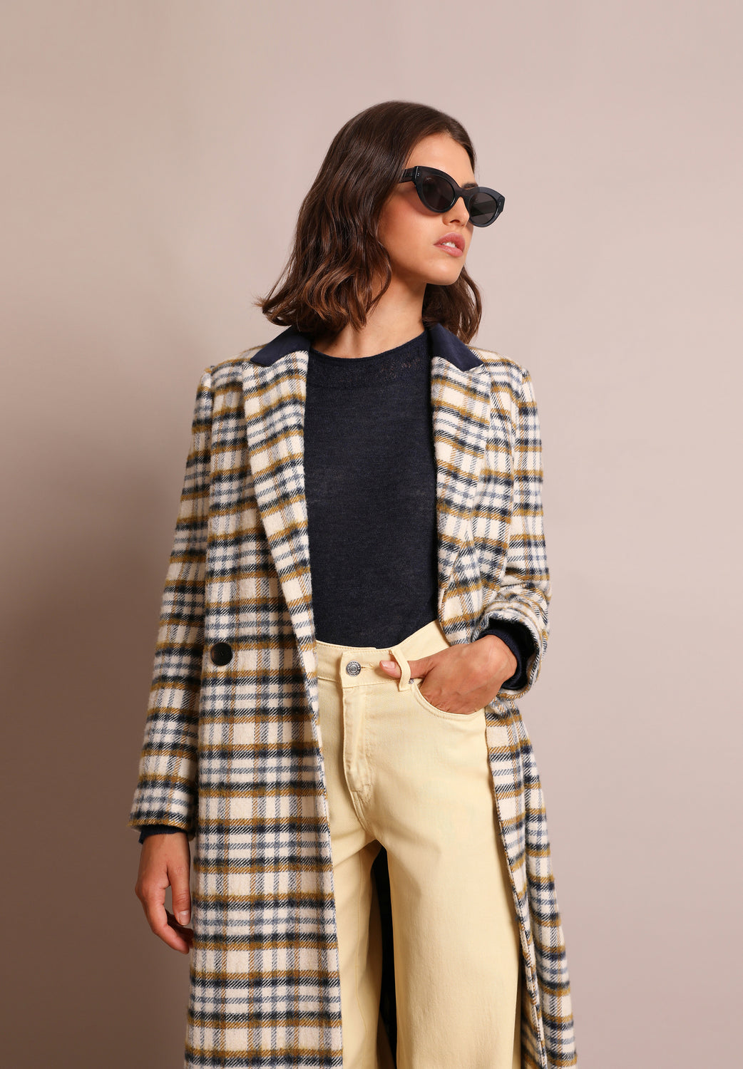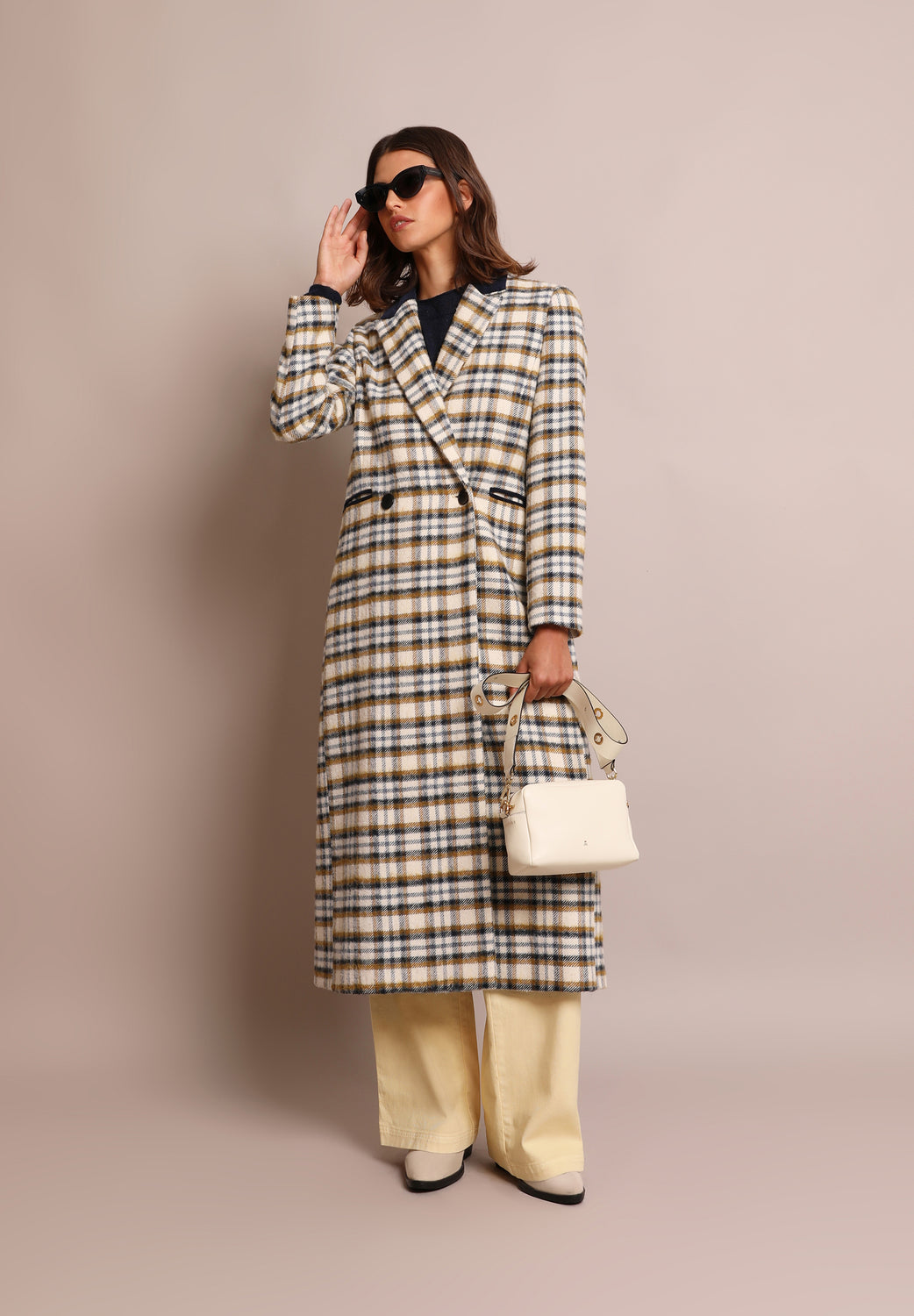 Abrigo largo de cuadros.