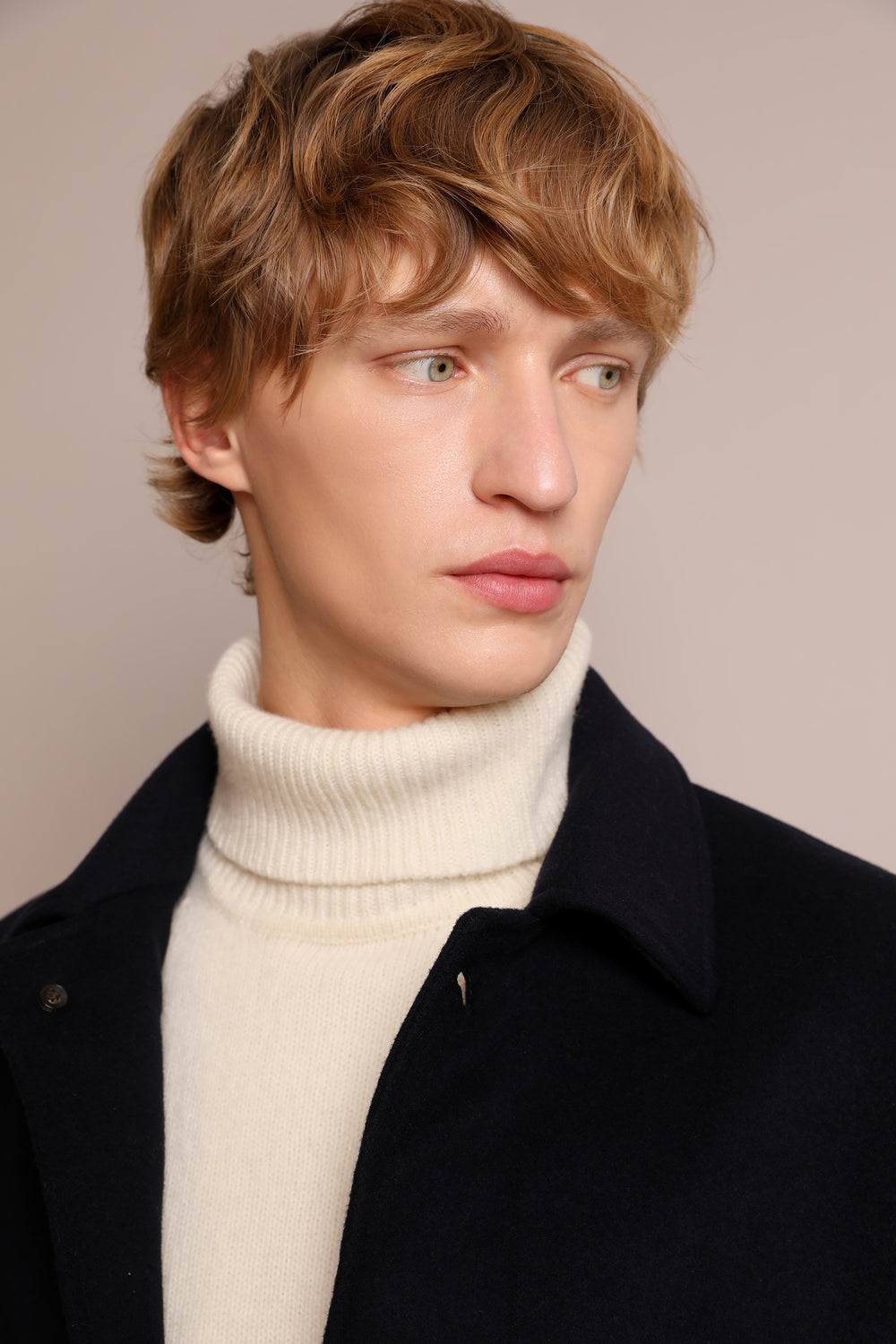 Abrigo largo confeccionado en tejido de mezcla de lana y cashmere.