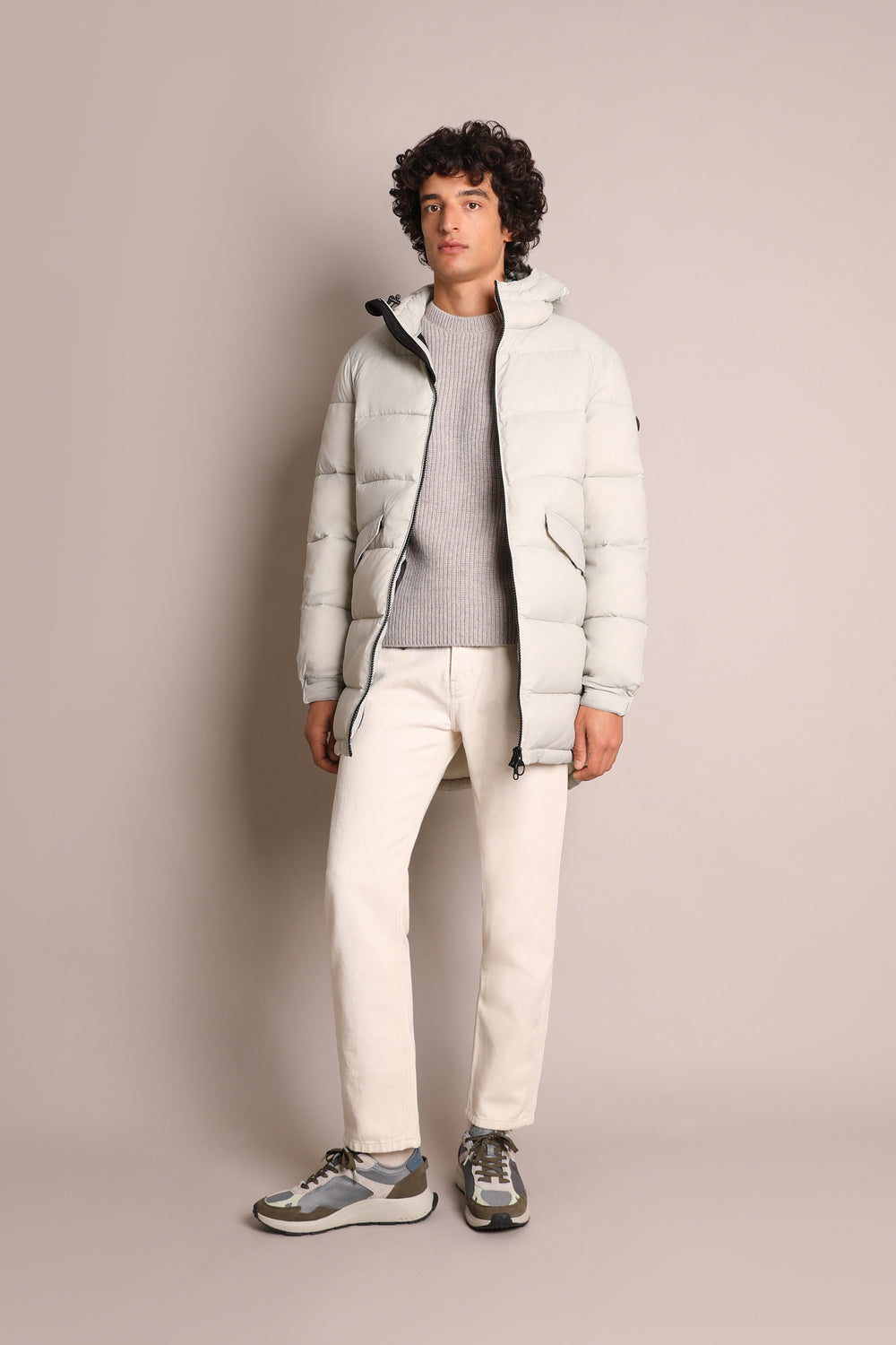 Abrigo midi acolchado.