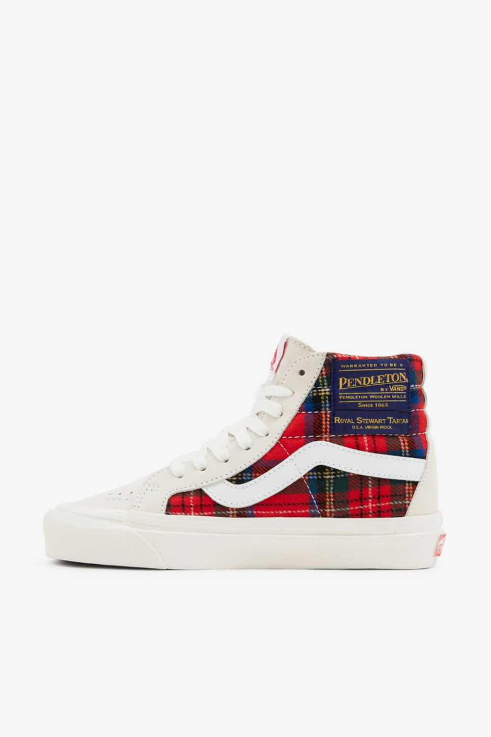 Sneakers Vans Anaheim Factory Sk8-Hi 38 DX, que rinden tributo su primera fábrica en Anaheim (California), incorporan detalles de las originales Sk8-Hi, modernizadas y mejoradas con plantillas Ortholite®. Legendarias zapatillas de caña alta también incluyen detalles retro, como el número de modelo original, banda protectora con más brillo y cordones de algodón. La pala de ante resistente y clásica de cuadros de Pendleton completa el emblemático look.